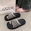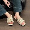 Yuanlitong Sandalias Planas de Verano Nuevas para Mujer, Pantuflas Elegantes de Punta Cuadrada para Uso en Exteriores