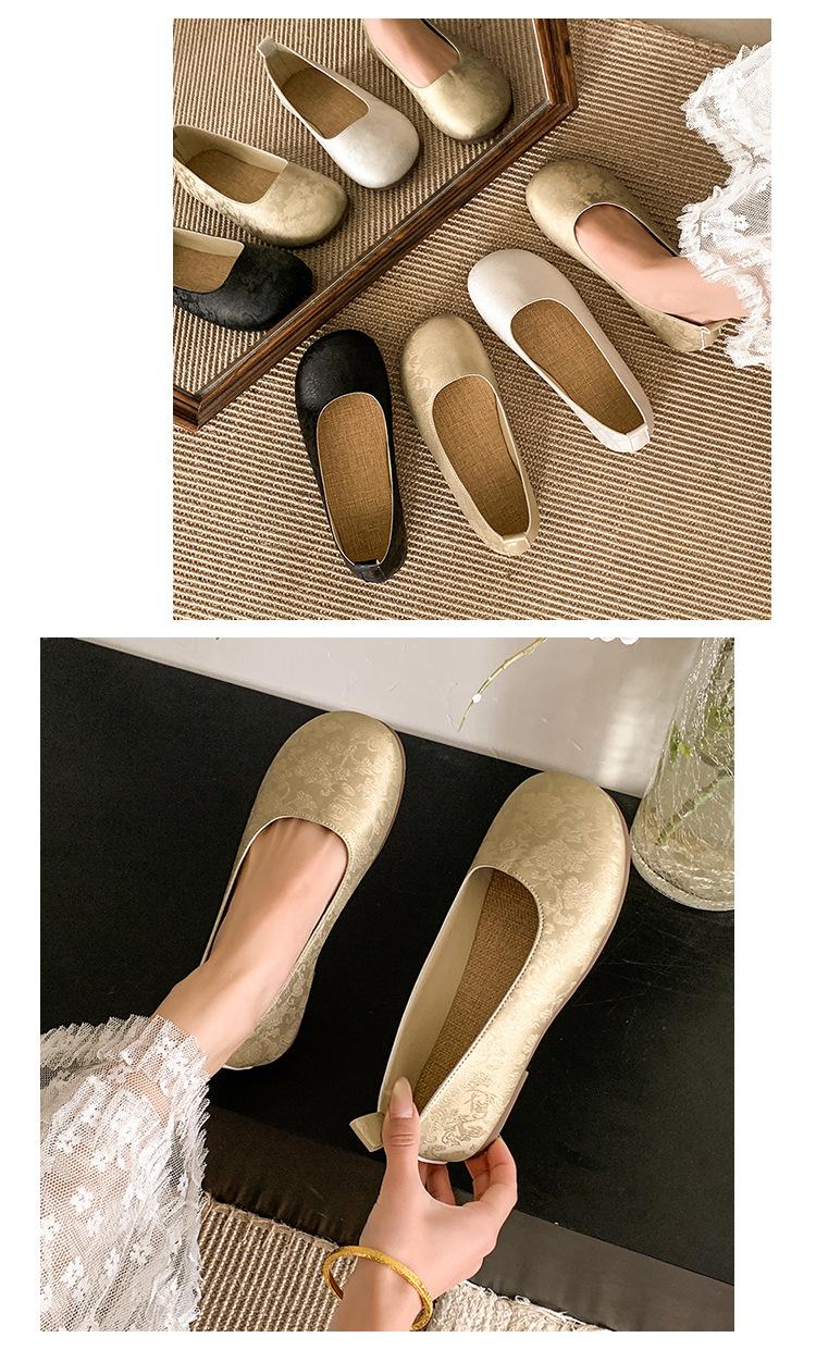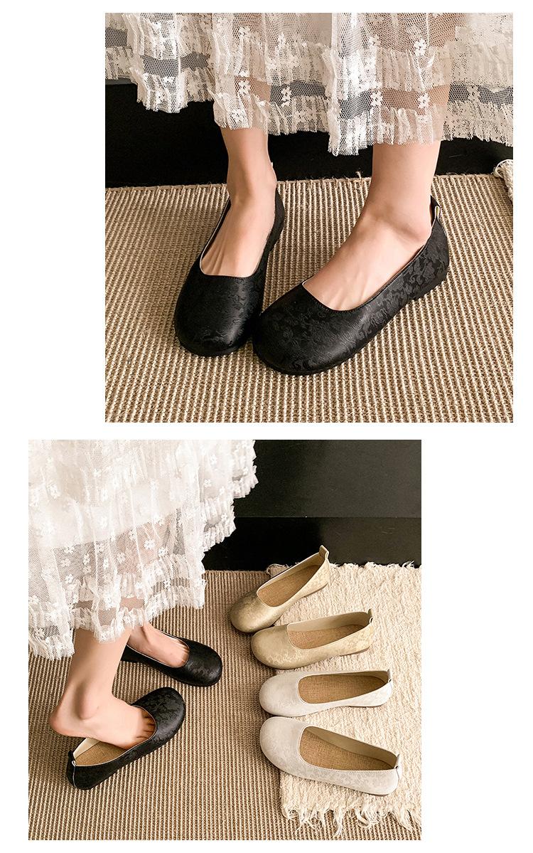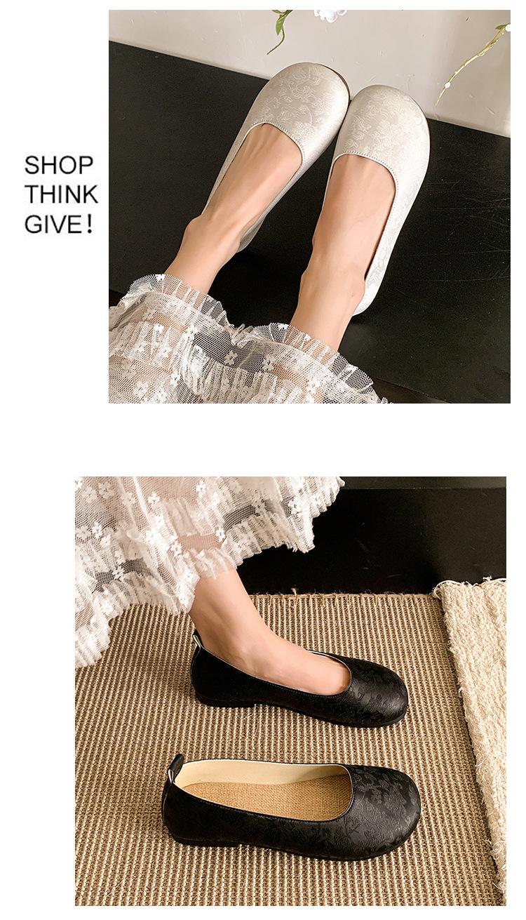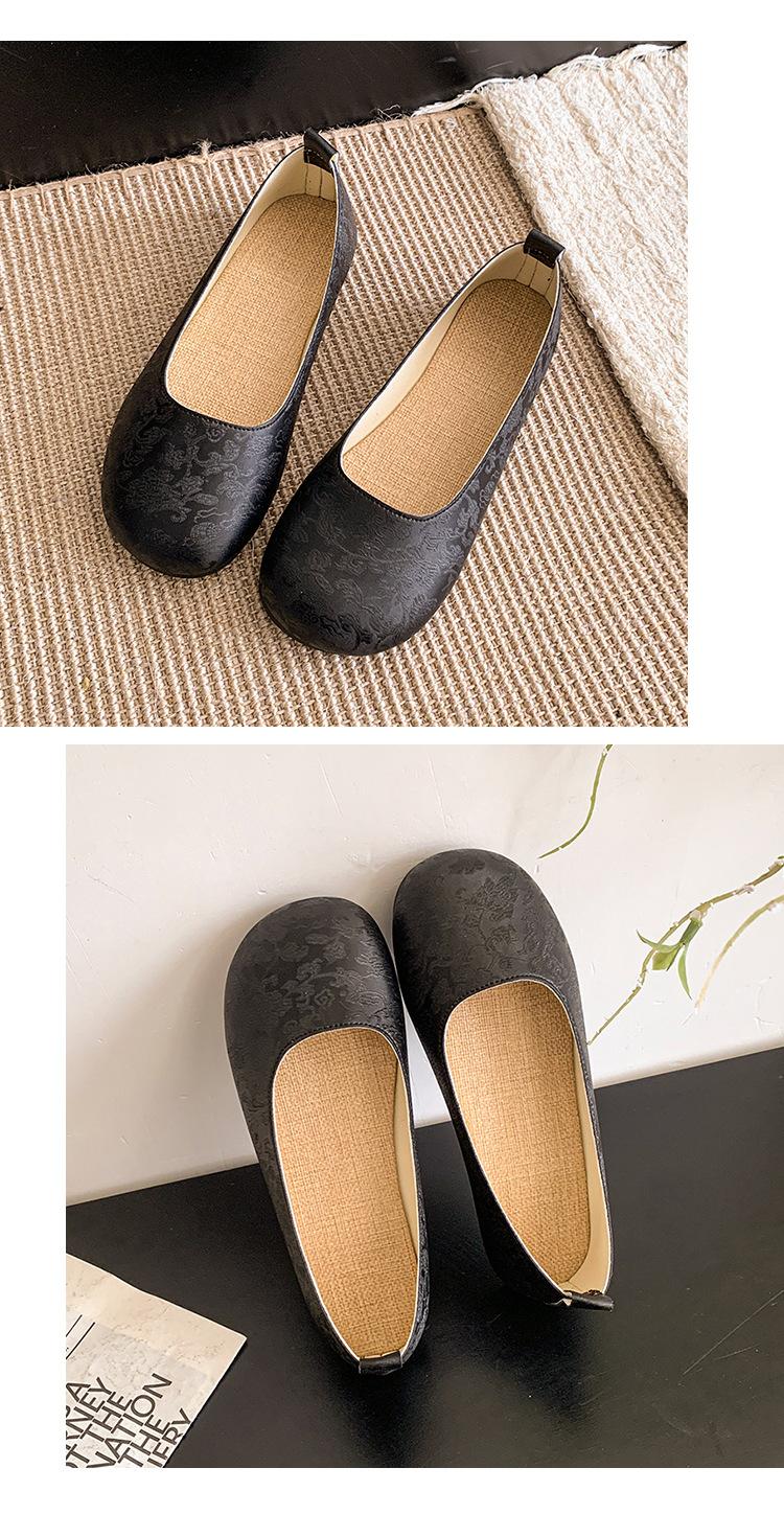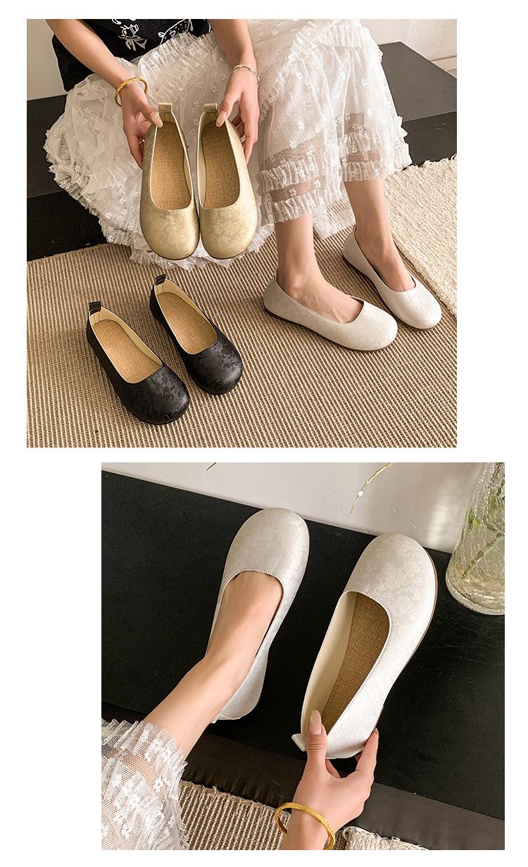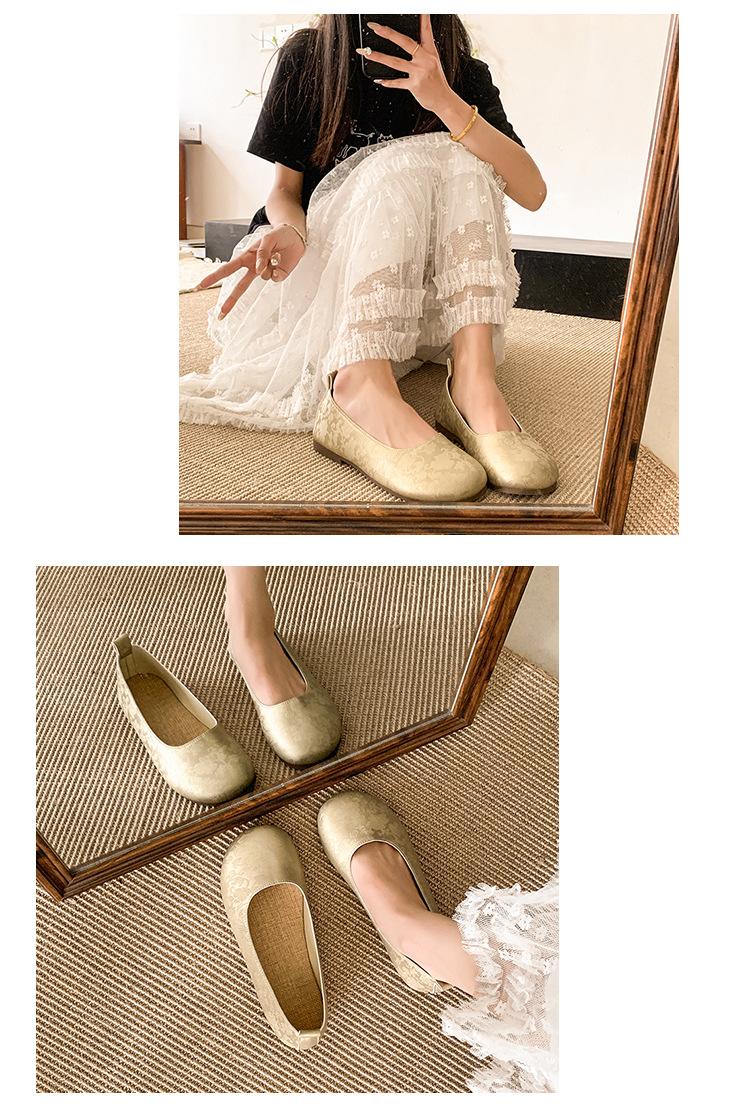 Zapatos planos de otoño para mujer Cuero suave 2025 Nuevo Punta redonda Bajos Sin cordones Franceses Suela blanda Zapatos de abuelita Mocasines para mujer