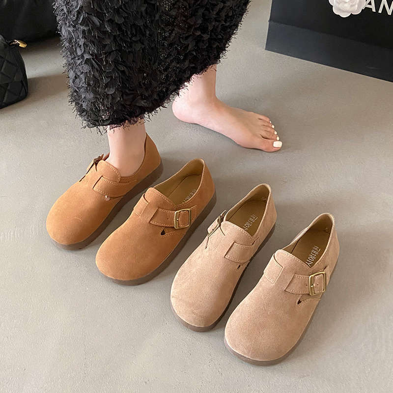 Zapatos Birkenstock Retro de Cuero Nubuck para Mujer Primavera 2025 Nuevos Mocasines Antideslizantes de Suela Blanda Zapatos Holgazanes Slip-On