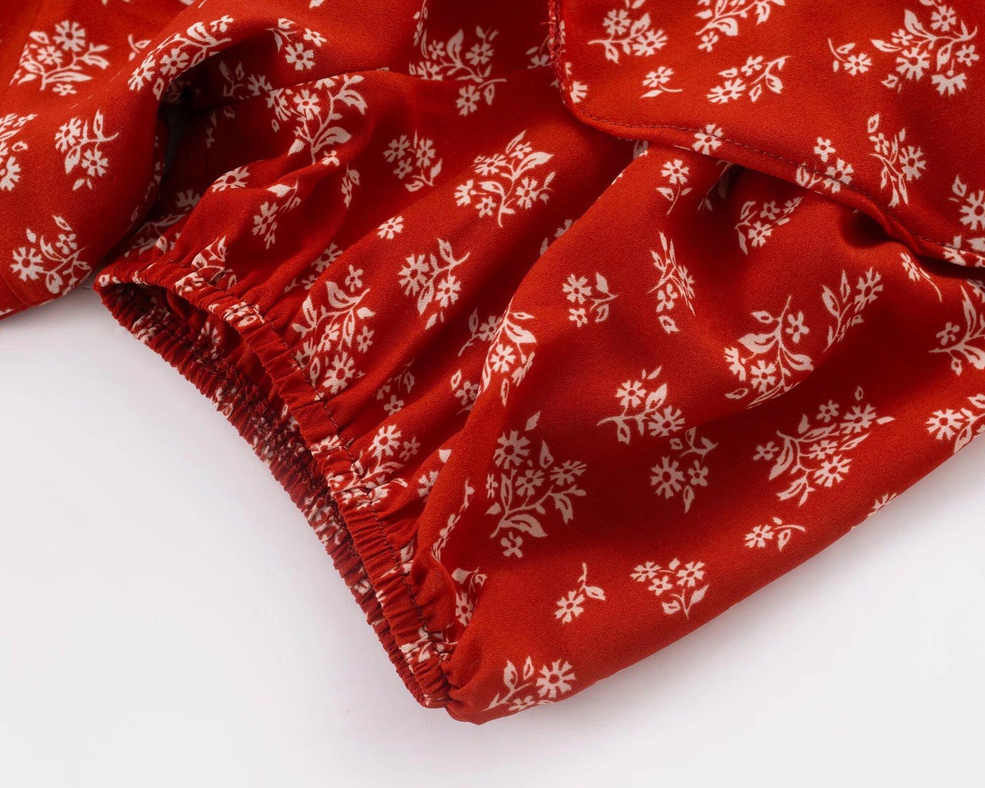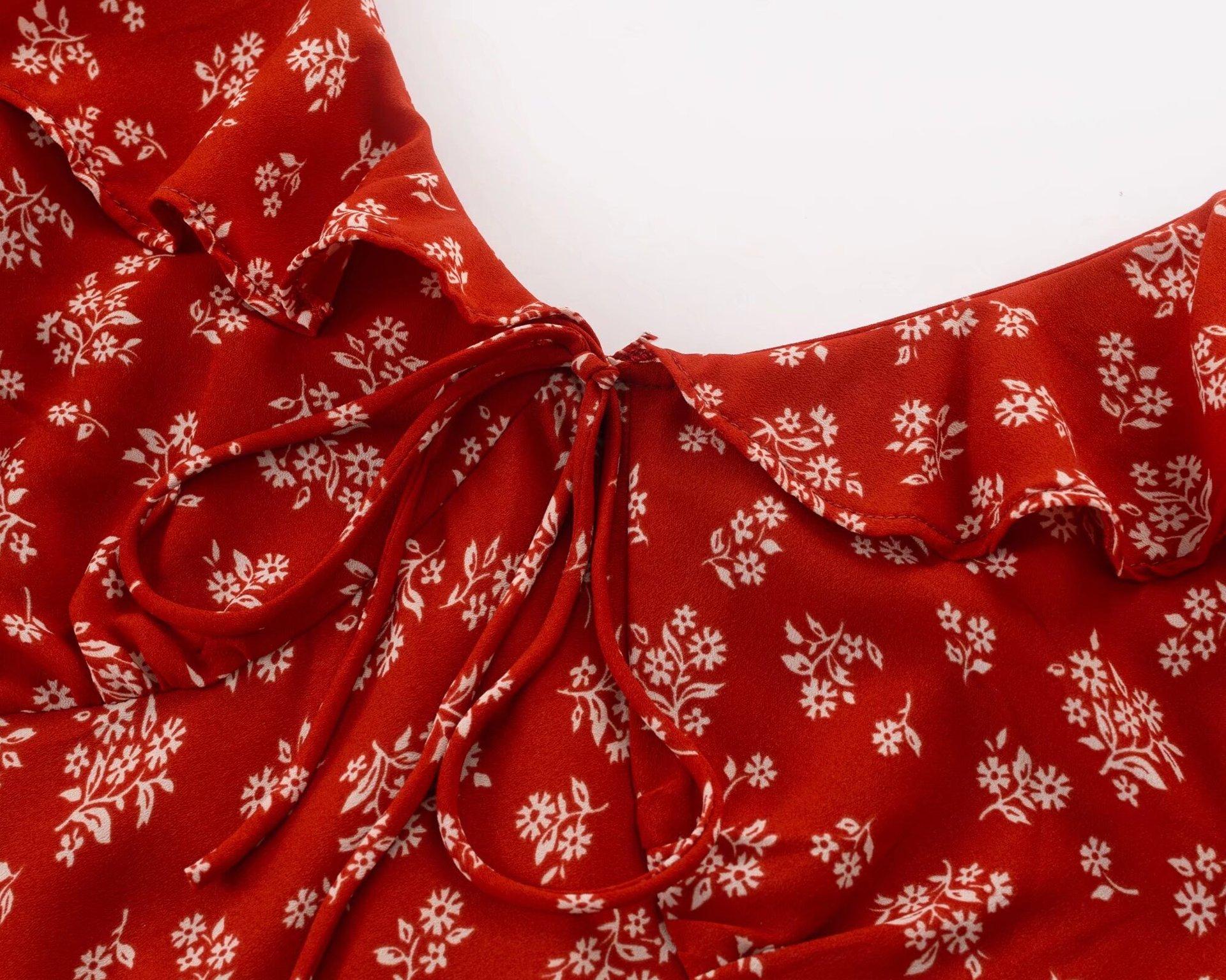 Compra 71 Primavera con Volantes S2225 17 Falda Vacacional Vestido con Cordones para Mujer Floral Cuello en V Moda Figura Color Poliéster al por mayor en Joom.pro