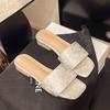 Sandalias planas y pantuflas de estilo chino nuevo para mujer verano para exterior 2025 nuevo estilo hada de vacaciones hermosas pantuflas con falda