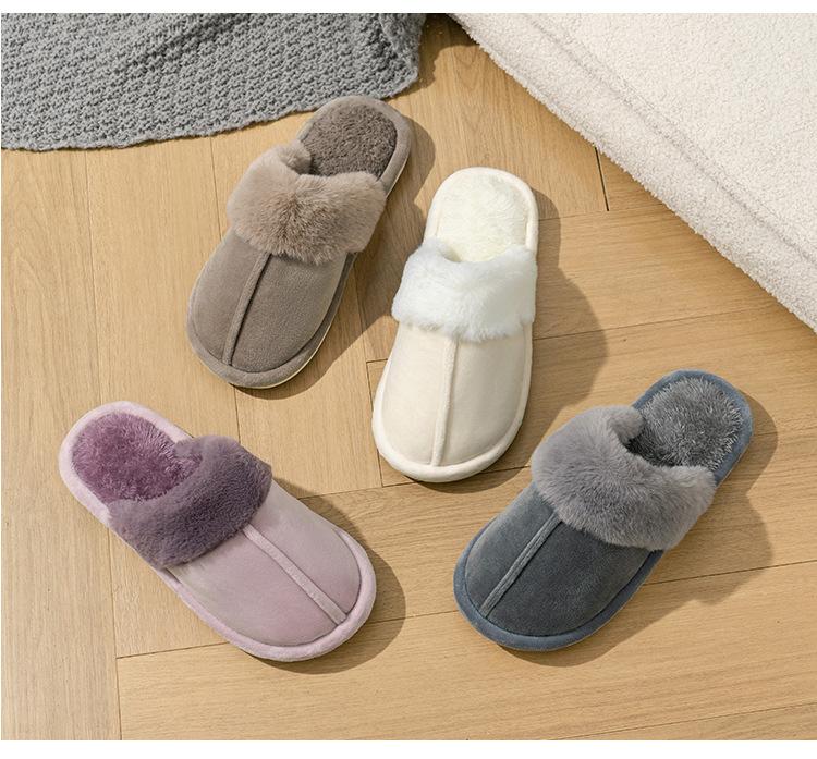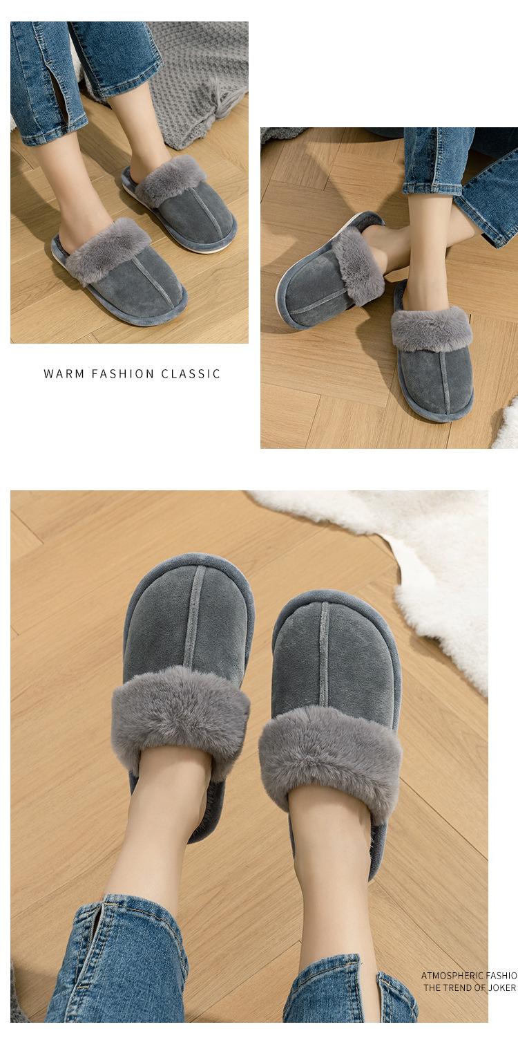Ventas Calientes Transfronterizas Invierno Forro Polar Engrosado Cálido Hogar Antideslizante Pantuflas de Casa Suela Gruesa Baotou Interior Parejas Pantuflas de Algodón