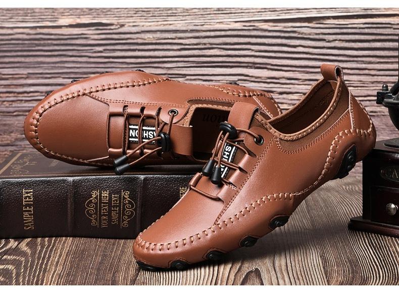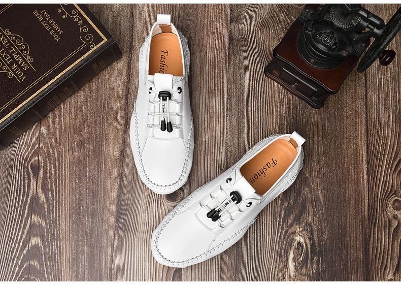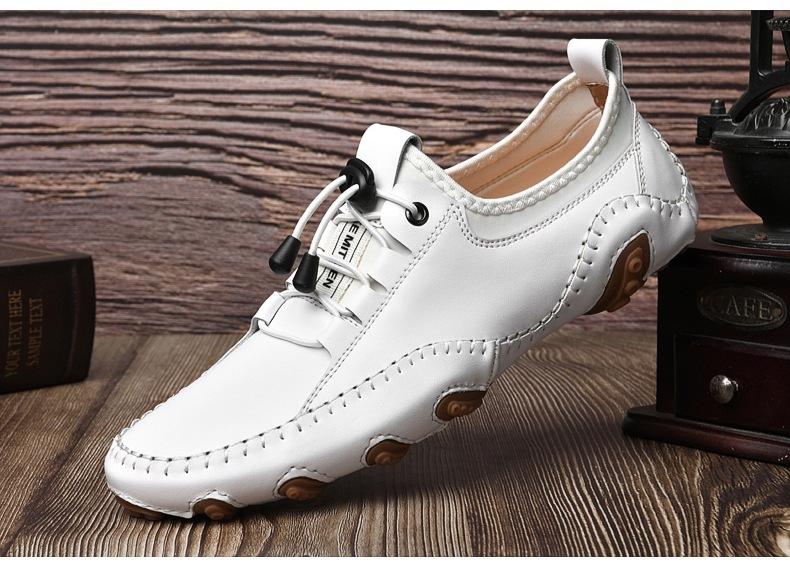 2025 Zapatos Nuevos de Talla Grande Transfronterizos para Hombre Zapatos Blancos tipo Beanie Zapatos Casuales Transpirables Británicos para Hombre Suela Blanda Zapatos para Conducir Zapatos Perezosos