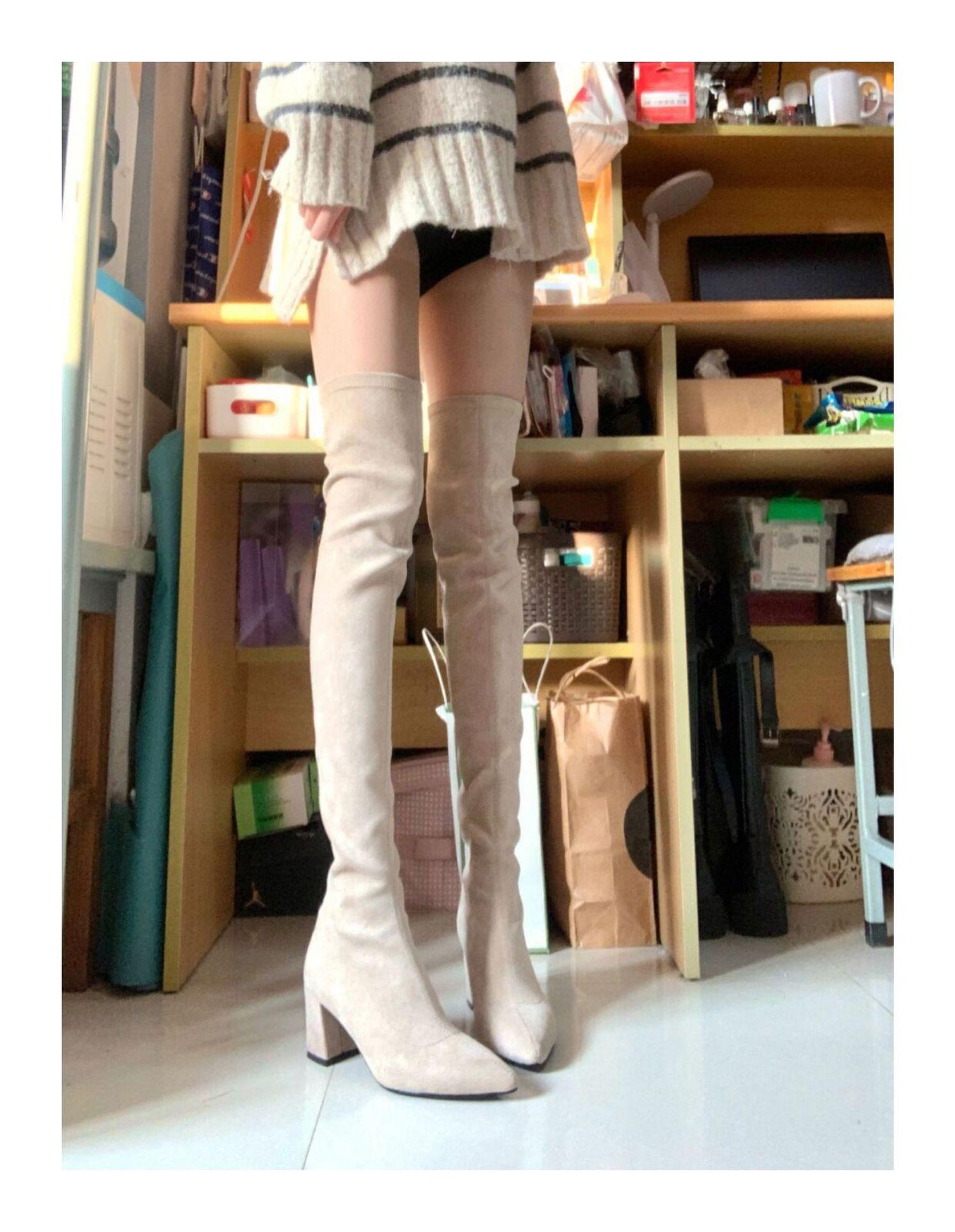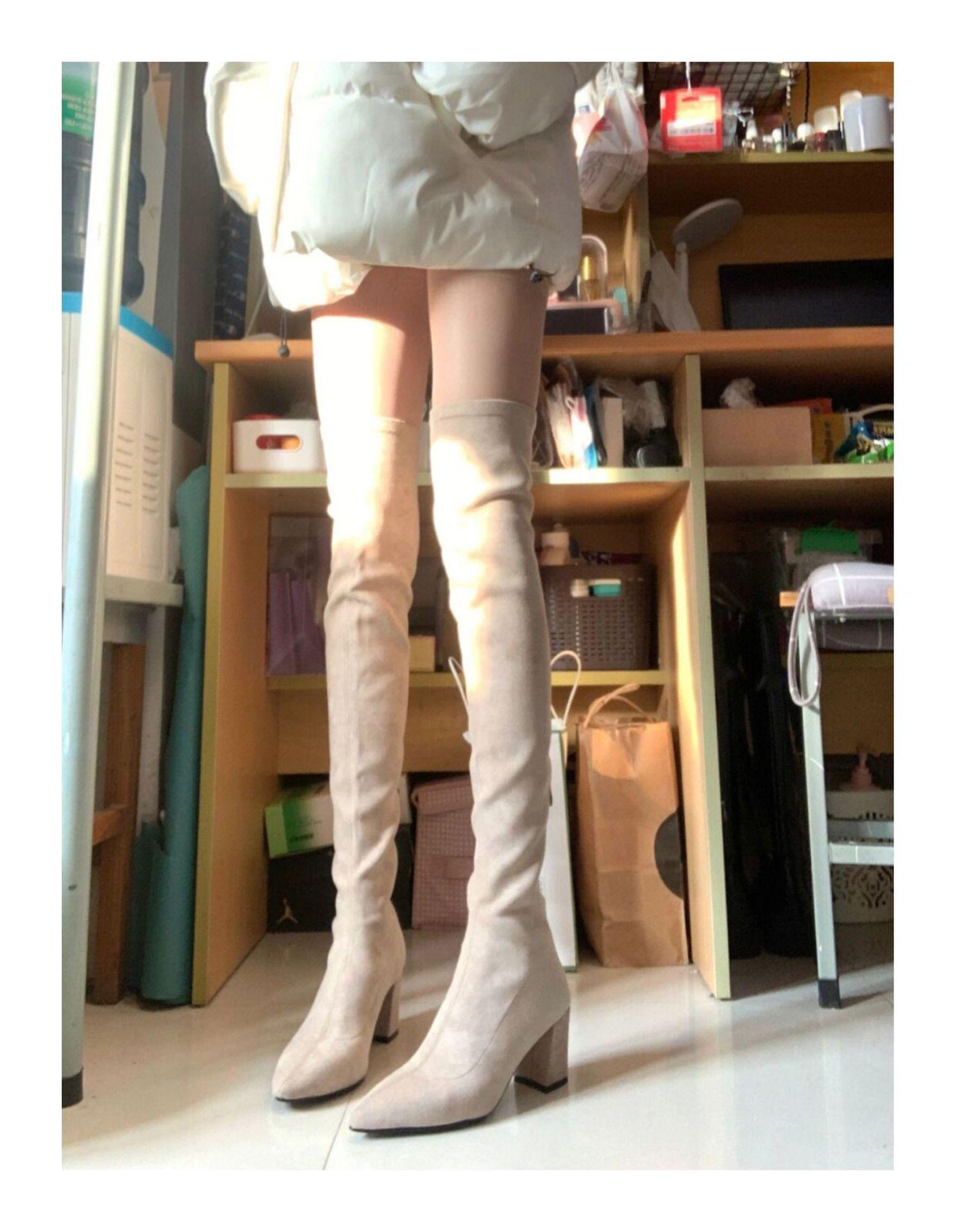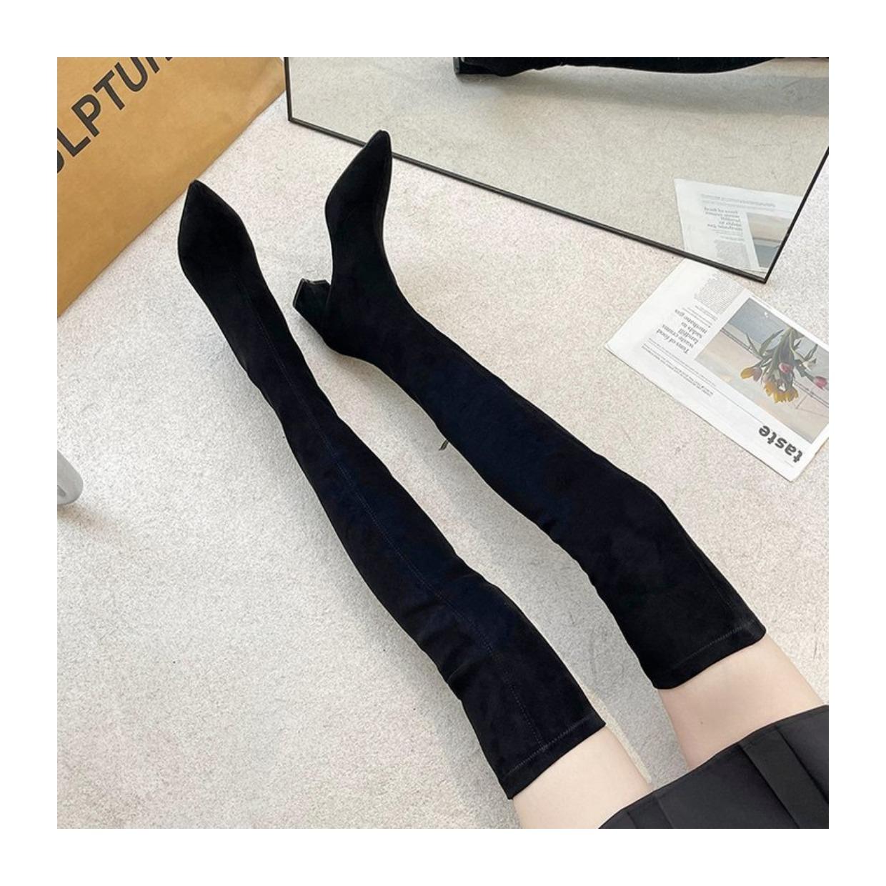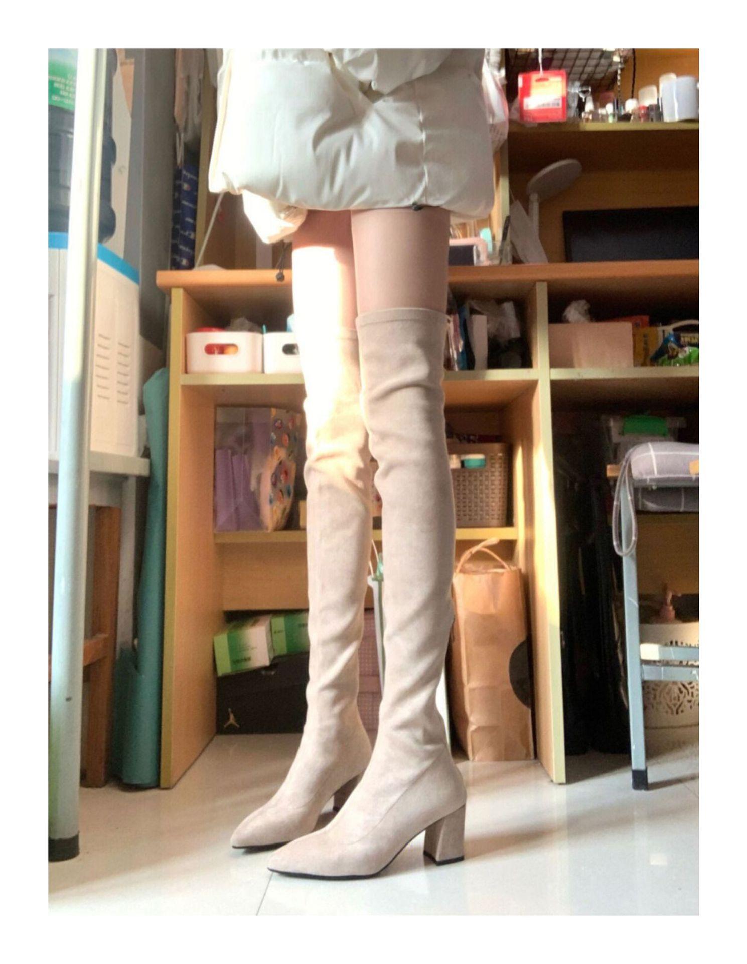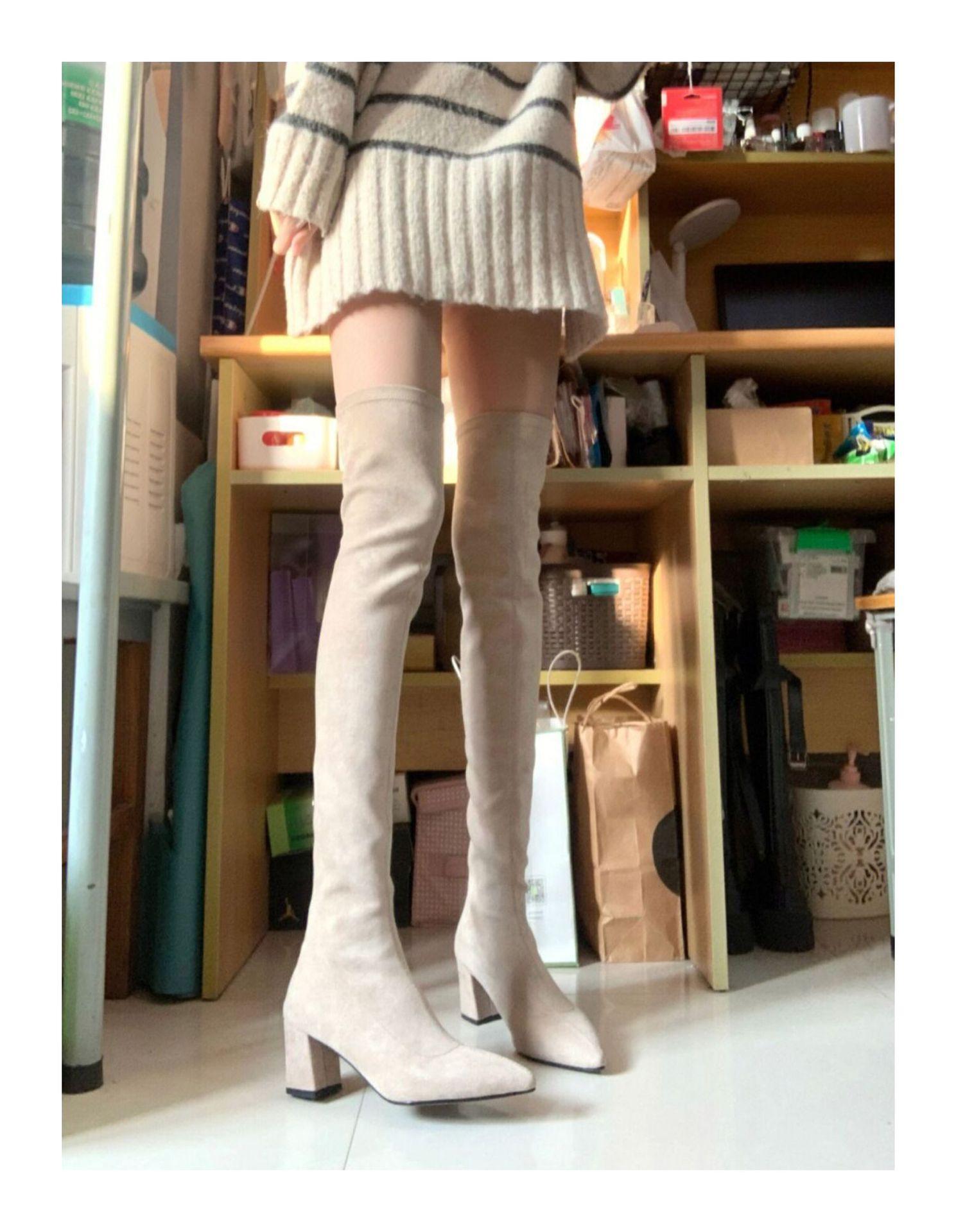 Compra Botas por encima de la rodilla 2025 Otoño e Invierno Nueva Moda Versátiles Punta Tacón Grueso Botas Delgadas de Alta Elasticidad Botines al por mayor en Joom.pro