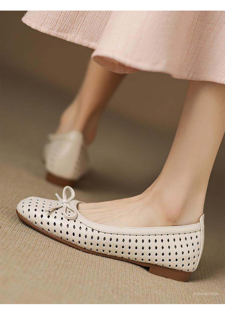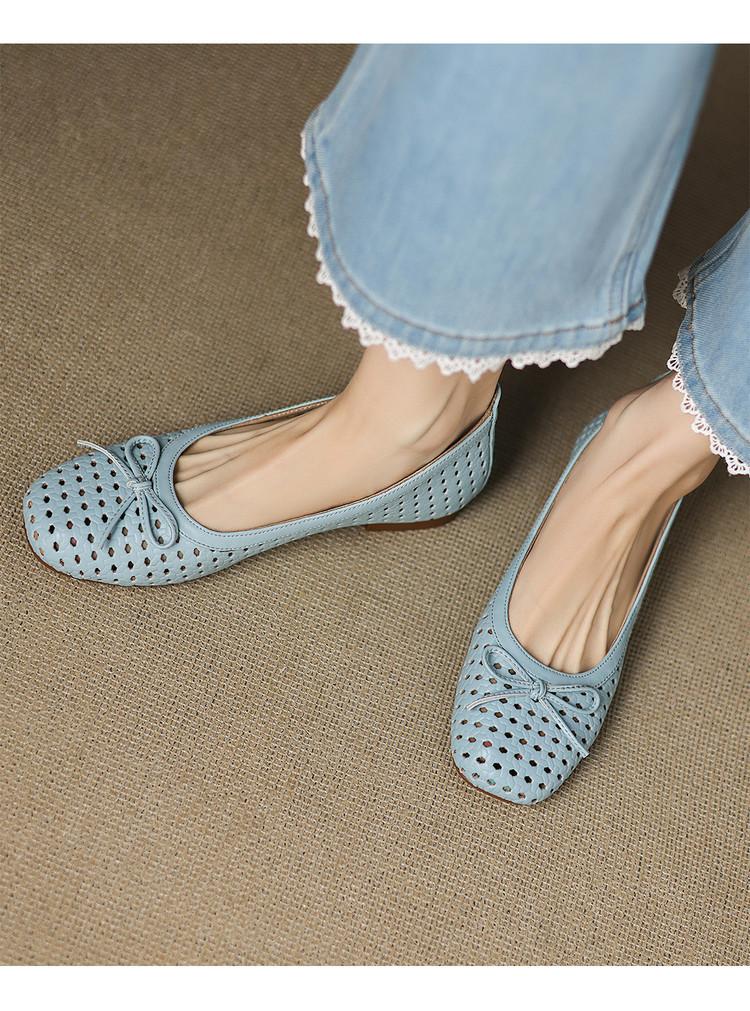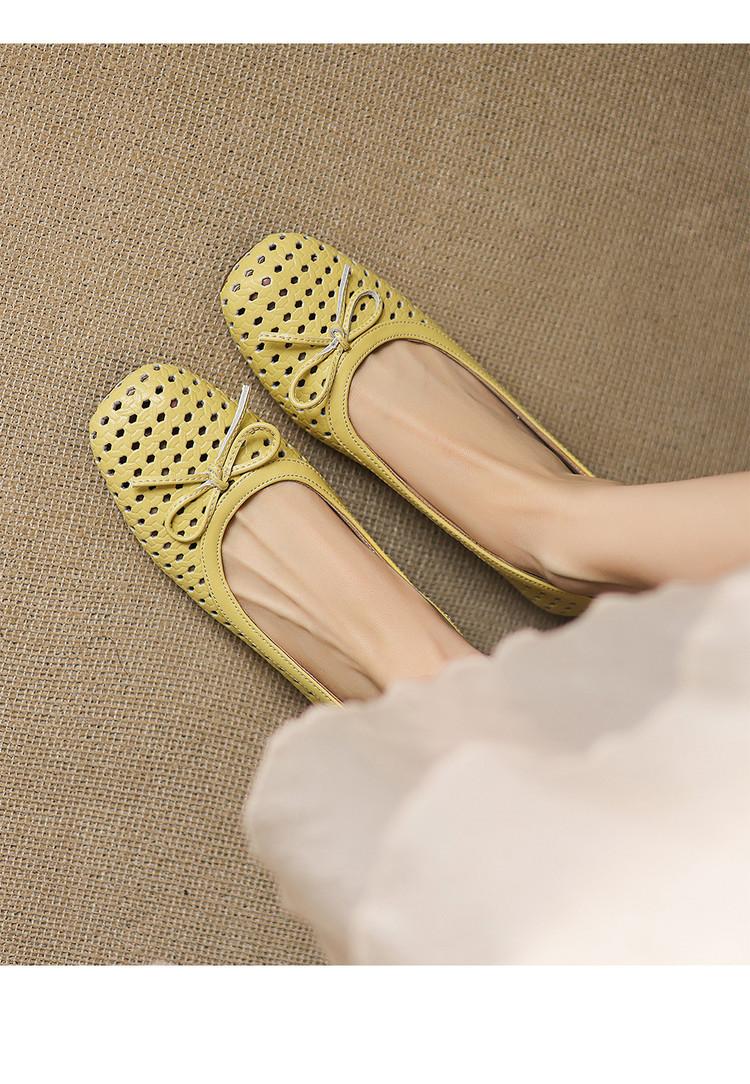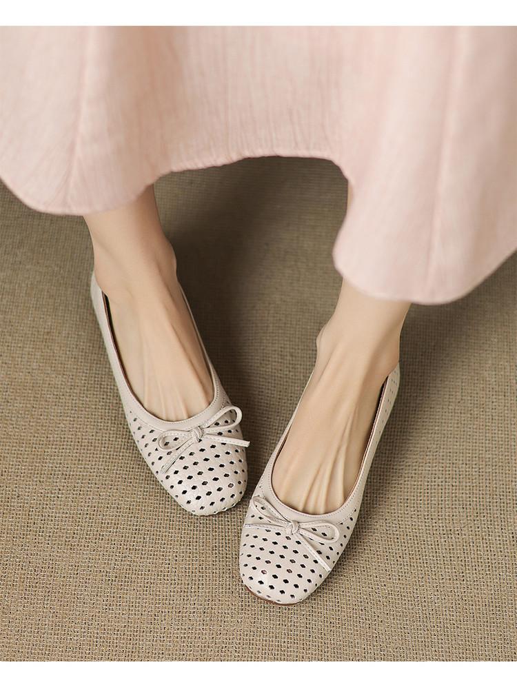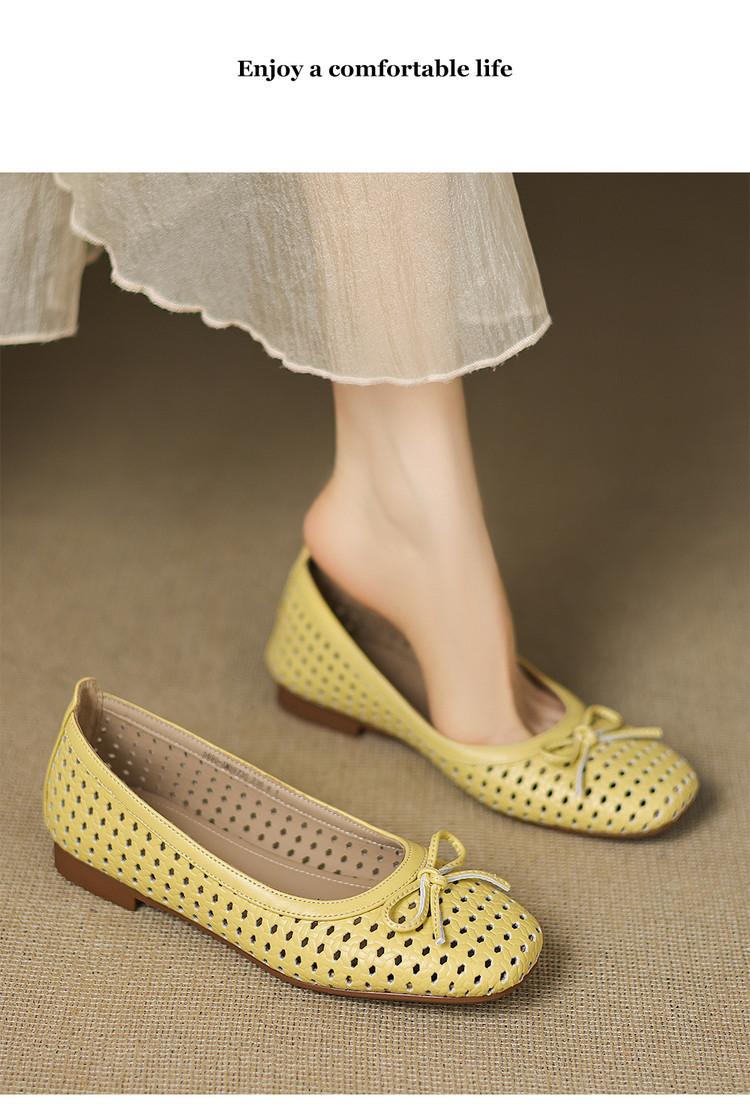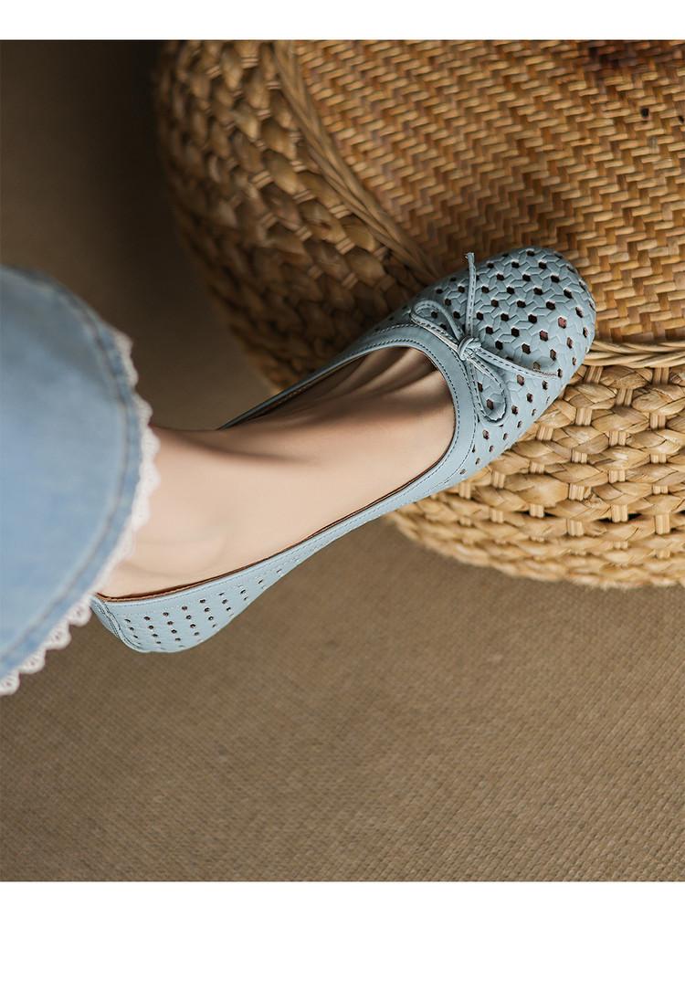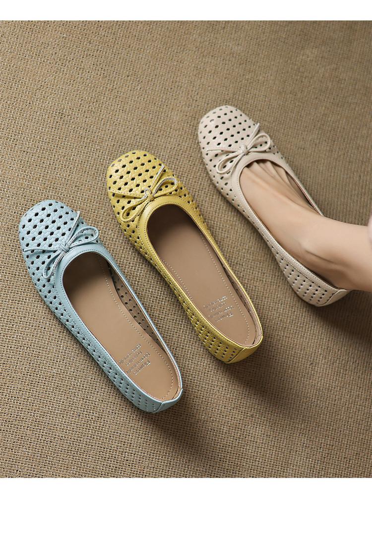Zapatos Four Seasons Transpirables Dama Dulce Elegante Moda Ins Suave Boca Baja Hueco Cuero Genuino Zapatos Planos Mujer