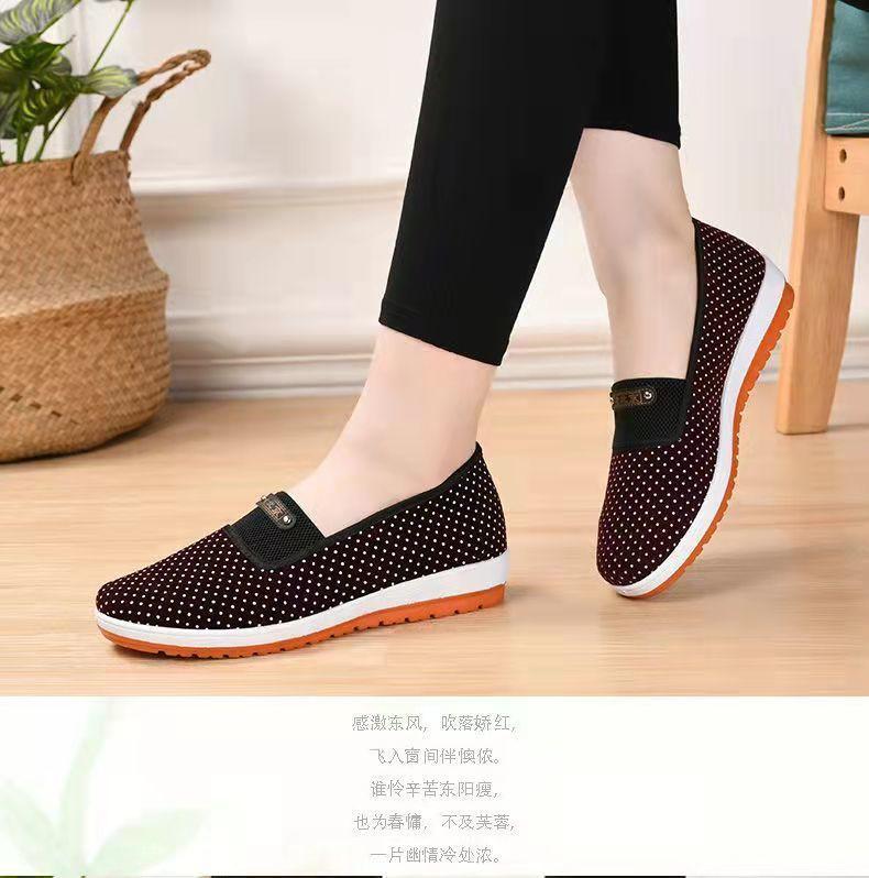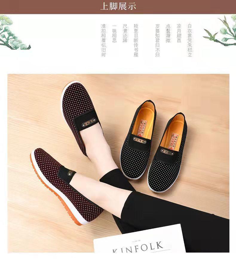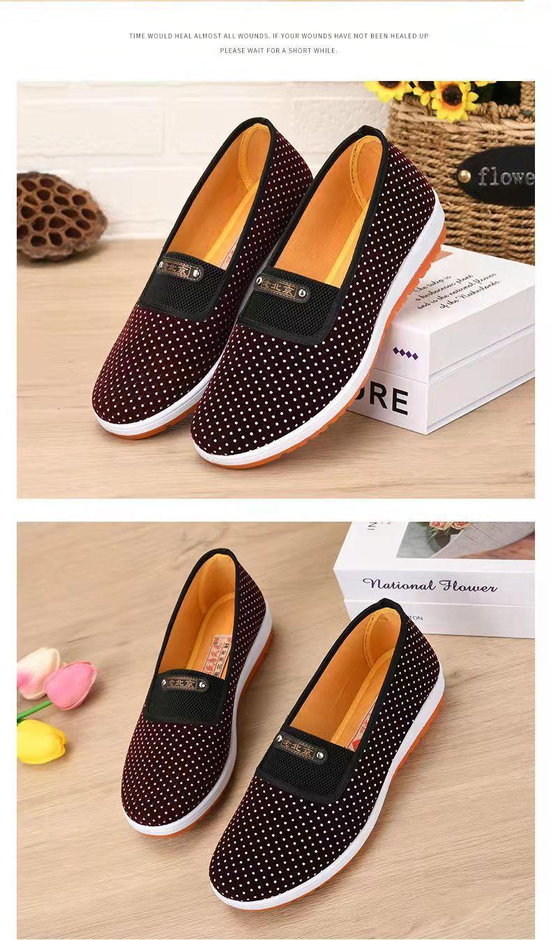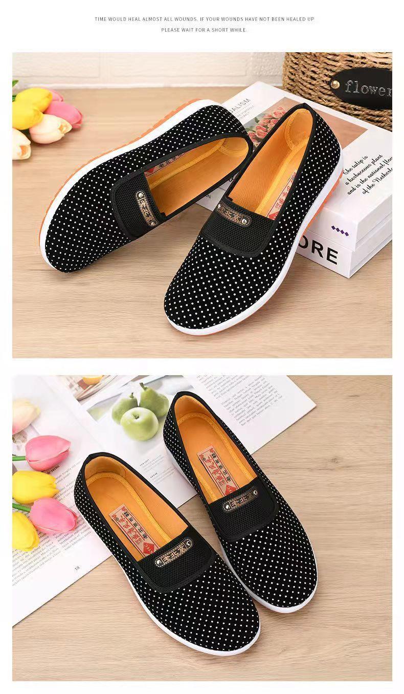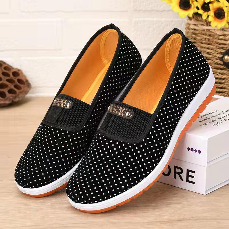 Zapatos de Tela de Pekín Antiguos Primavera y Otoño Zapatos Nuevos para Mujer Suela Suave Antideslizantes Mediana Edad y Adultos Mayores Zapatos Planos Slip-On Zapatos de Trabajo para Madres