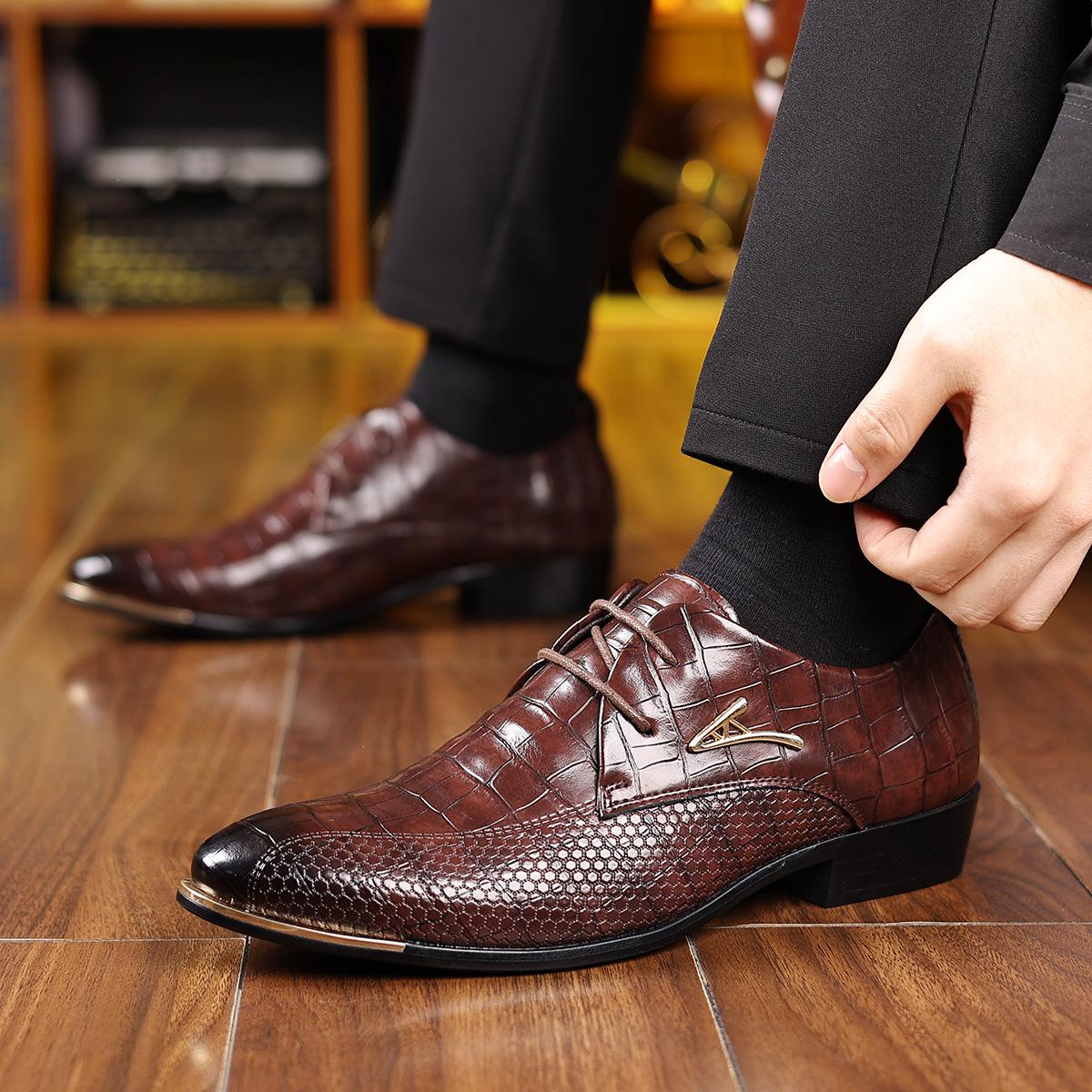 Zapatos de Vestir Formales de Cuero para Hombre Populares Transfronterizos Punta Afilada Estilo Británico Modernos Casuales Zapatos de Hombre Versátiles para el Día a Día Zapatos de Cuero
