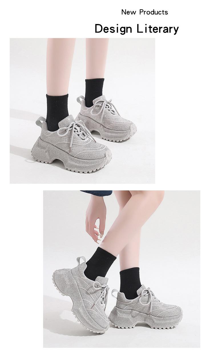 Compra Zapatos Torre para Mujer de Suela Gruesa Aumentada 2025 Primavera Nuevo Malla Combinable Transpirable Ligero Tenis Casual al por mayor en Joom.pro