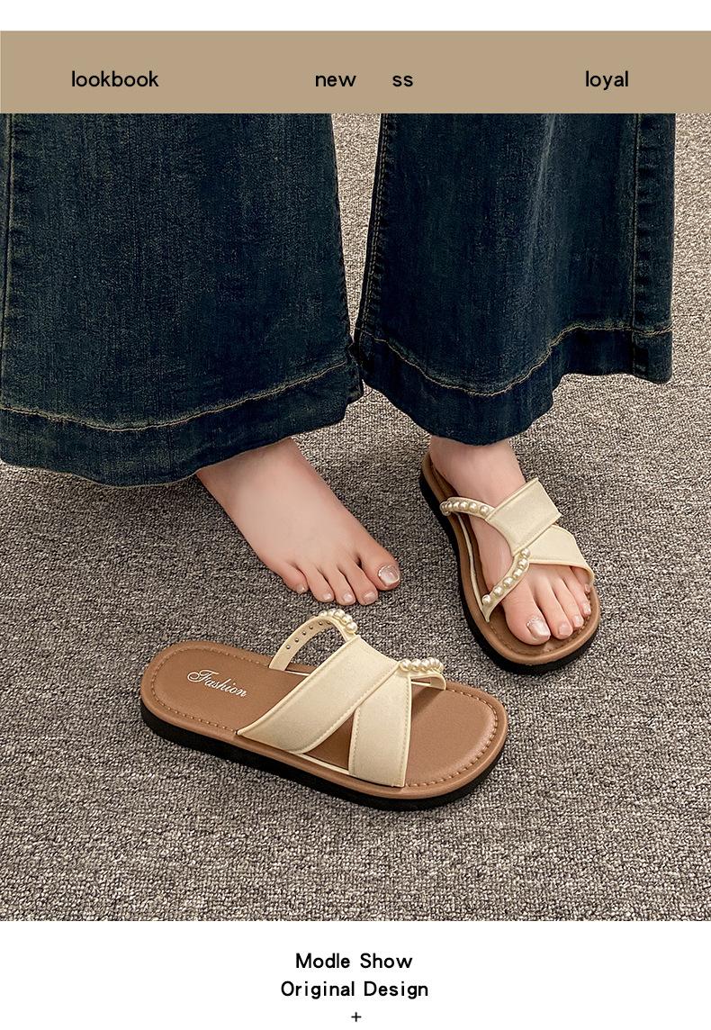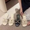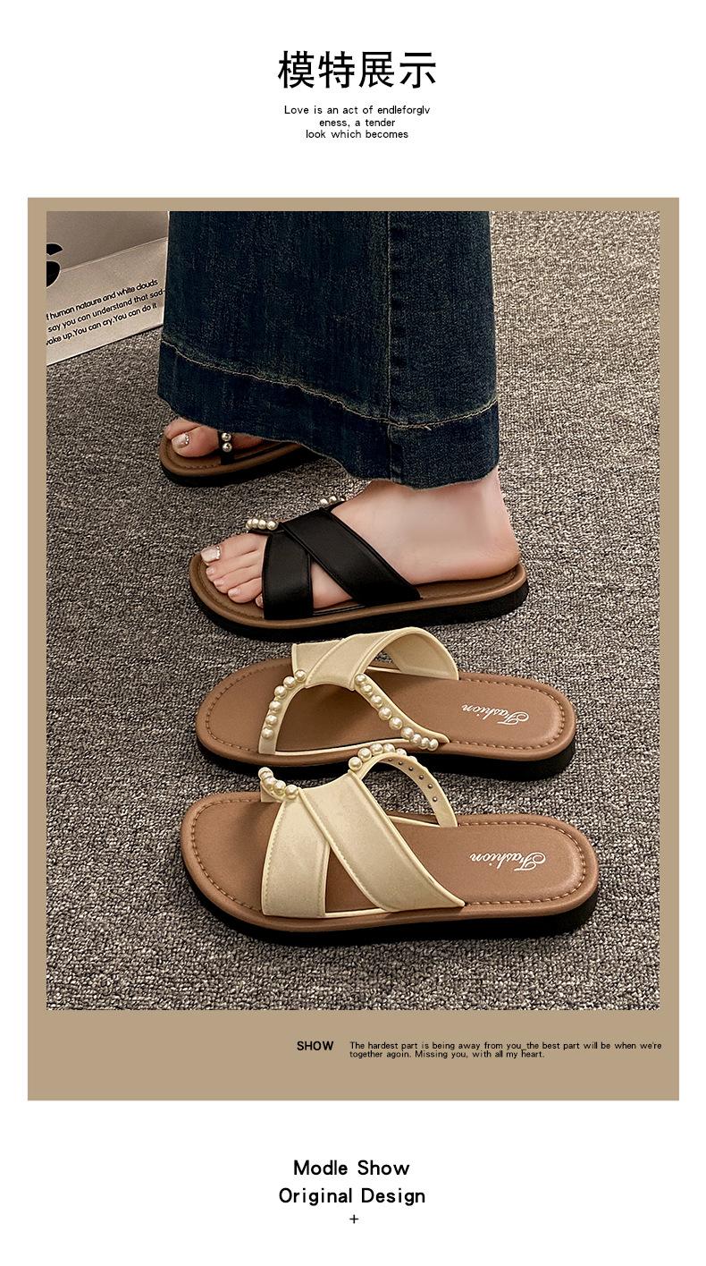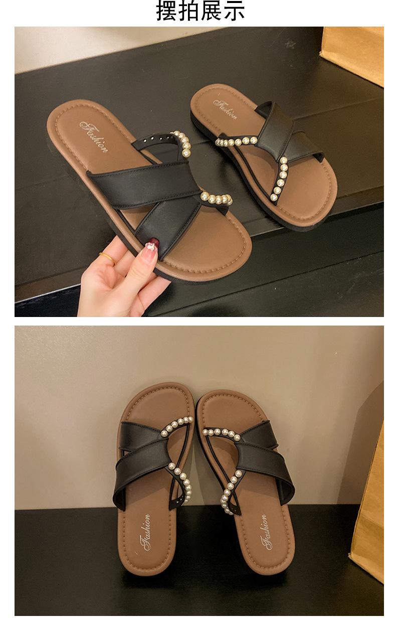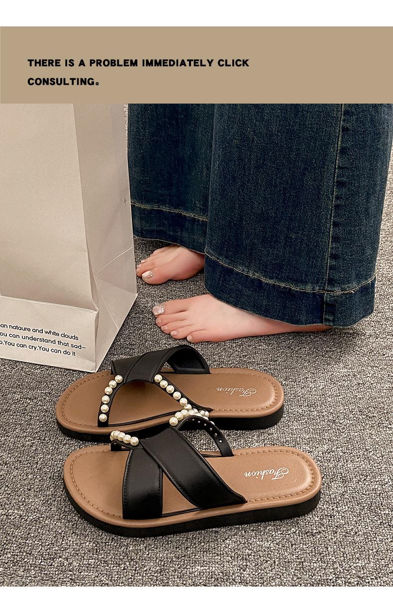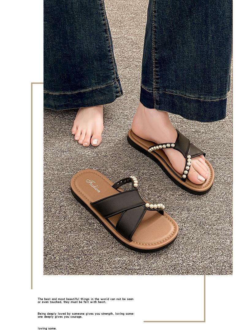 Zapatillas Chanel Estilo Bicolor para Mujer Verano para Exterior Nuevo Estilo Perla Moda Zapatos de Playa Sandalias de Diapositivas Planas y Cómodas