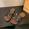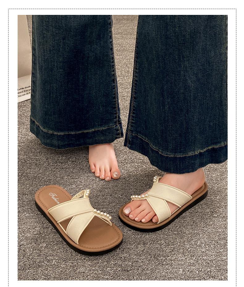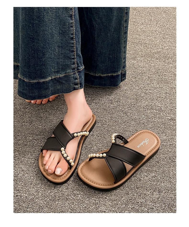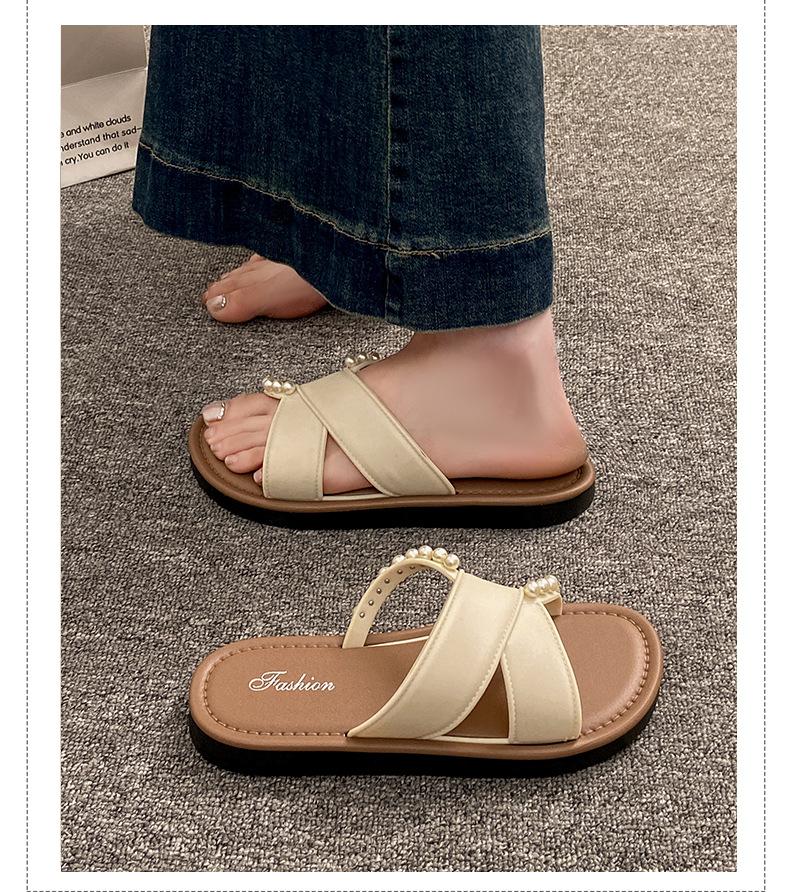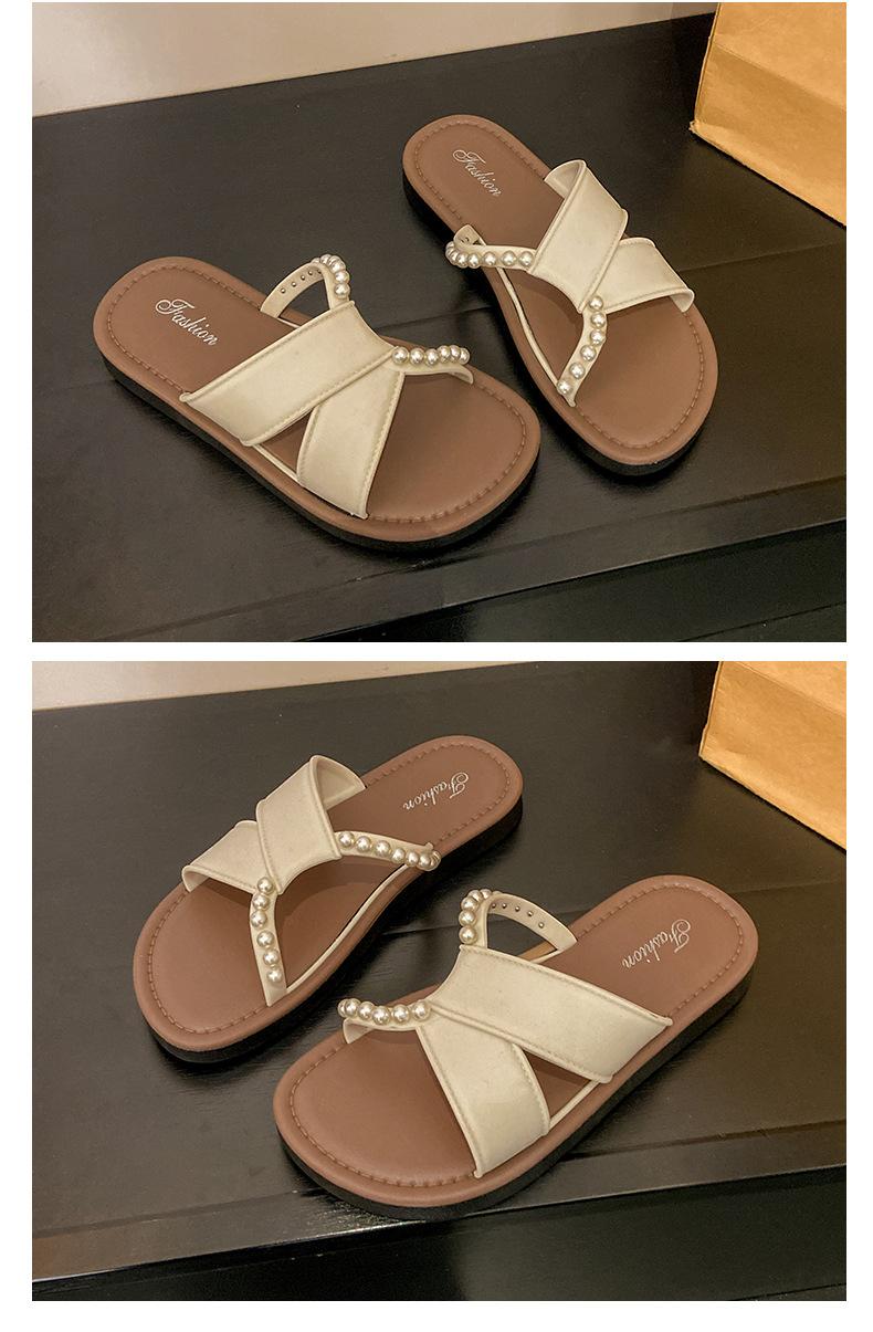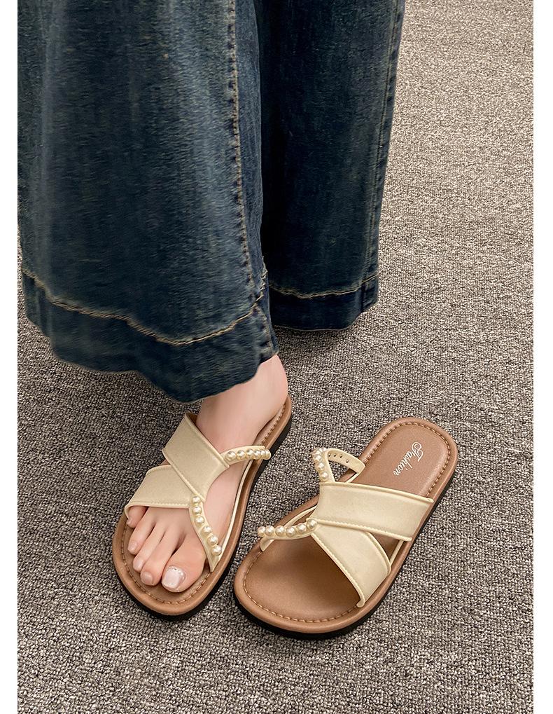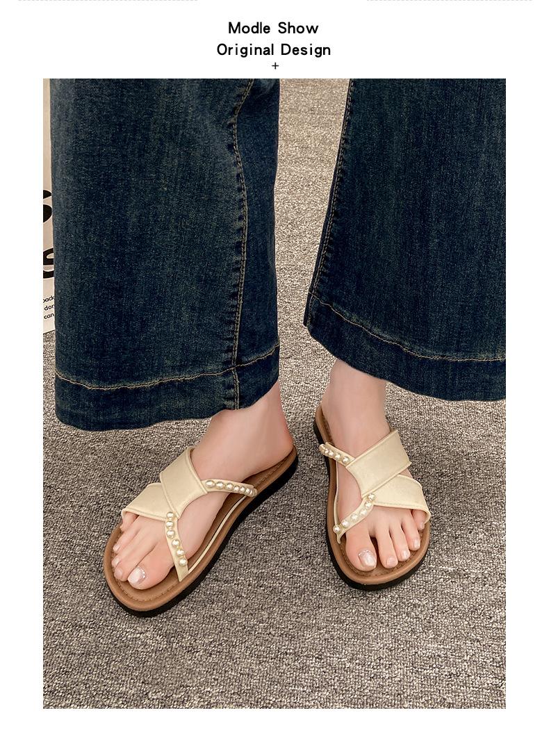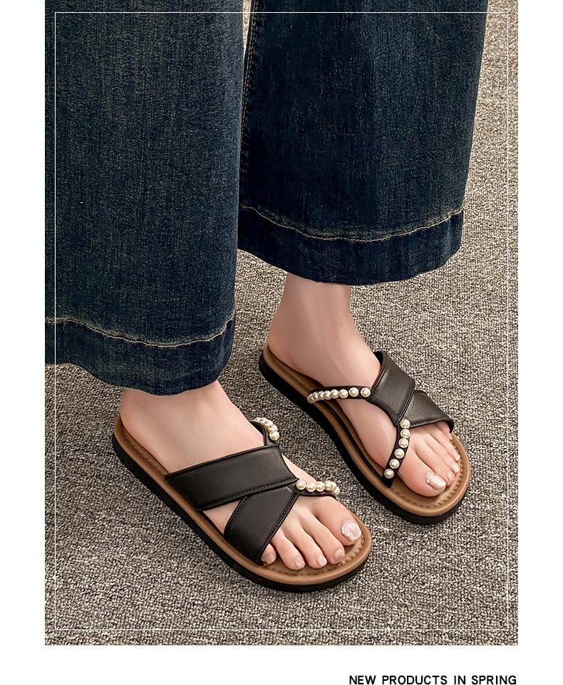 Zapatillas Chanel Estilo Bicolor para Mujer Verano para Exterior Nuevo Estilo Perla Moda Zapatos de Playa Sandalias de Diapositivas Planas y Cómodas