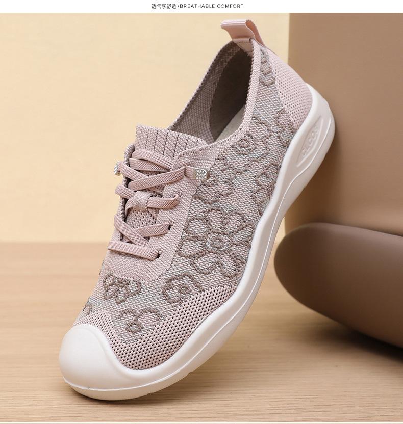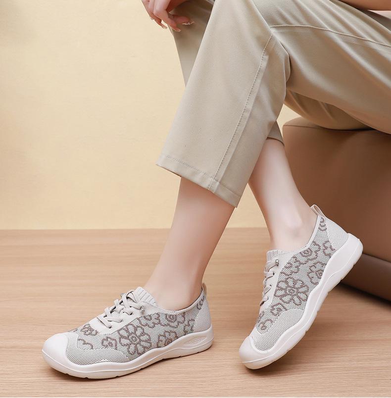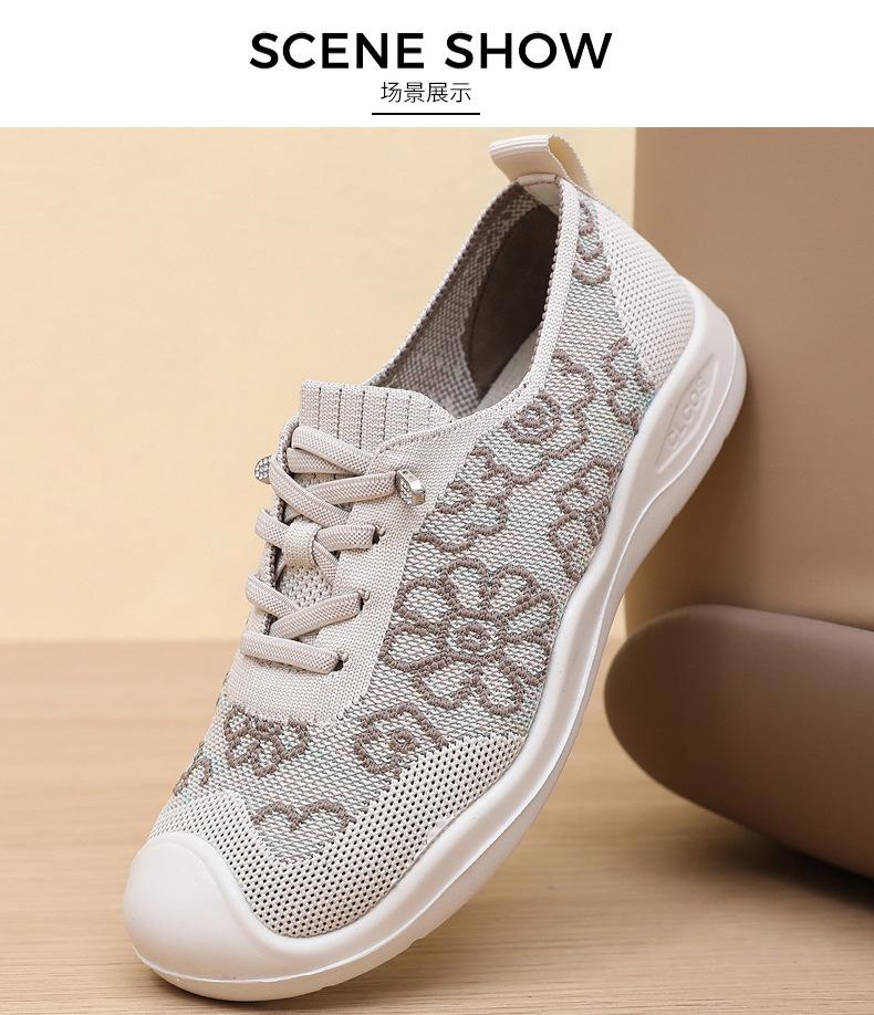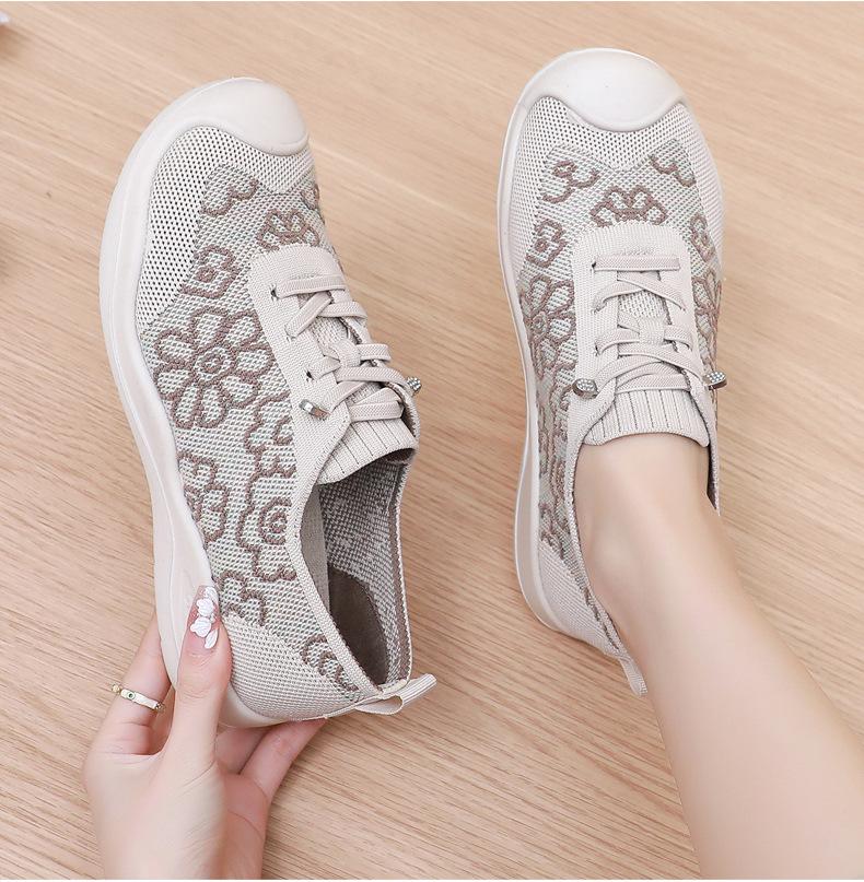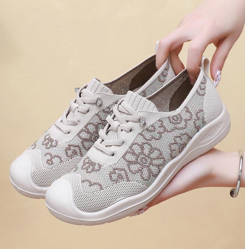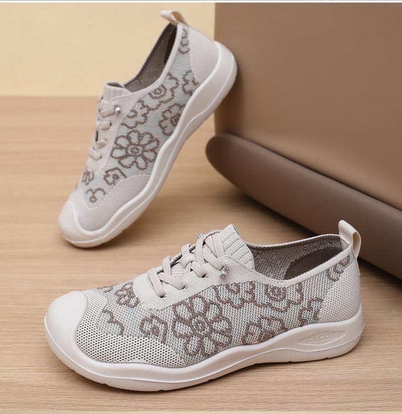 Primavera y Verano 2025 Nuevos Zapatos de Tela Old Beijing para Mujer Cómodos Transpirables Zapatos Tejidos Voladores Ligeros Slip-on Casual Zapatos para Mamás