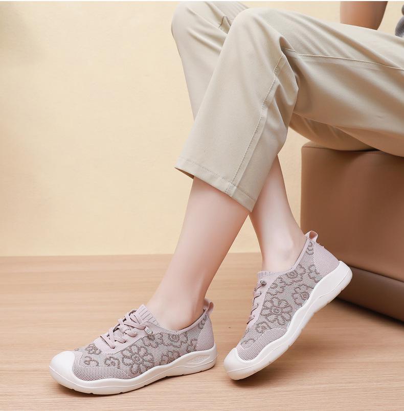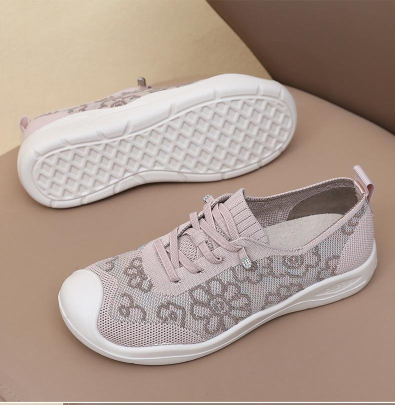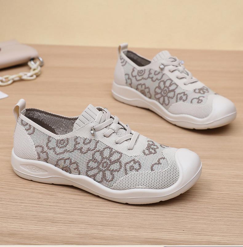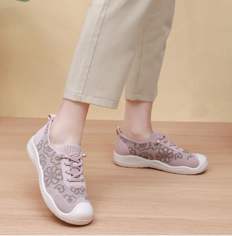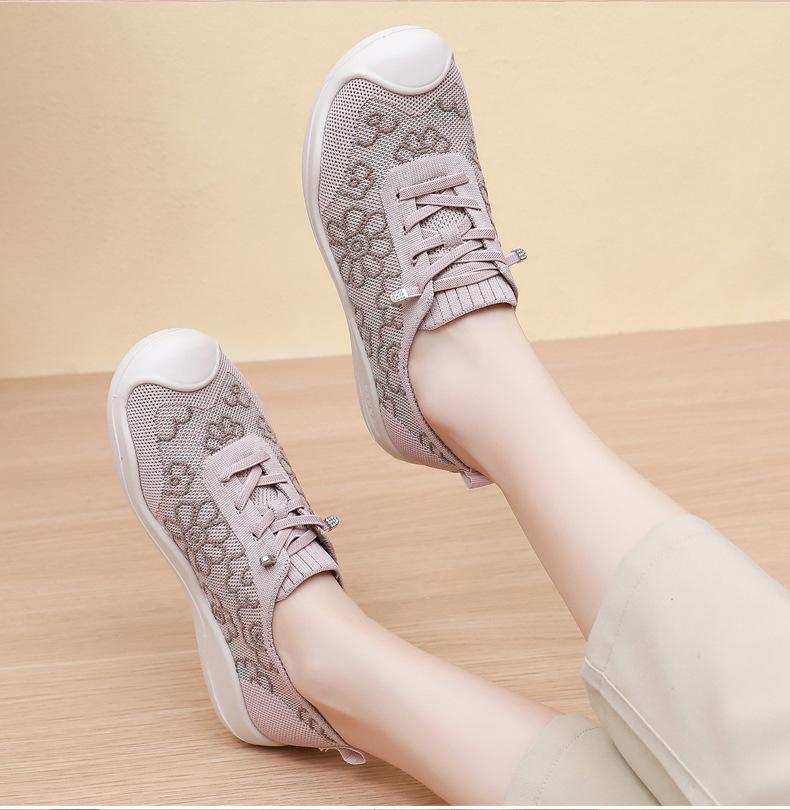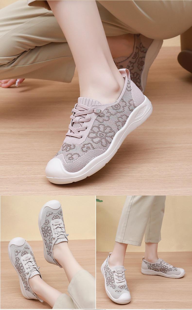 Primavera y Verano 2025 Nuevos Zapatos de Tela Old Beijing para Mujer Cómodos Transpirables Zapatos Tejidos Voladores Ligeros Slip-on Casual Zapatos para Mamás