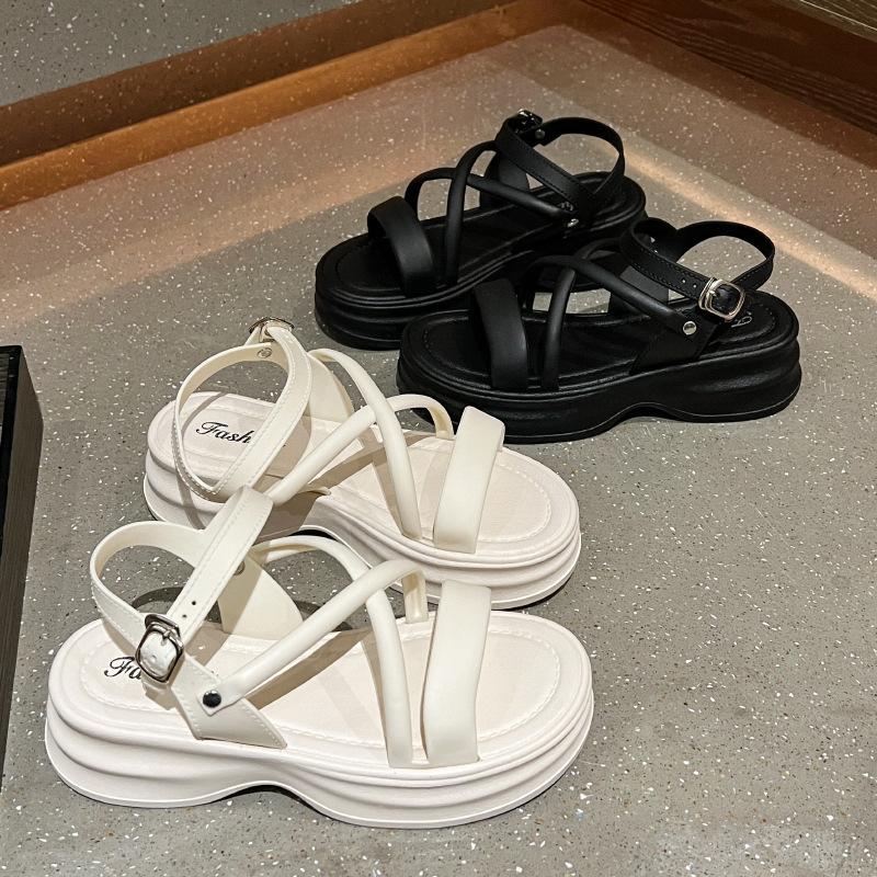 Sandalias de Tacón Alto para Mujer con Suela Gruesa para Verano 2024 Nuevo Estilo Moderno Elegante Zapatos de una Tira con Sandalias Romanas de Playa con Suela Gruesa para Mujer