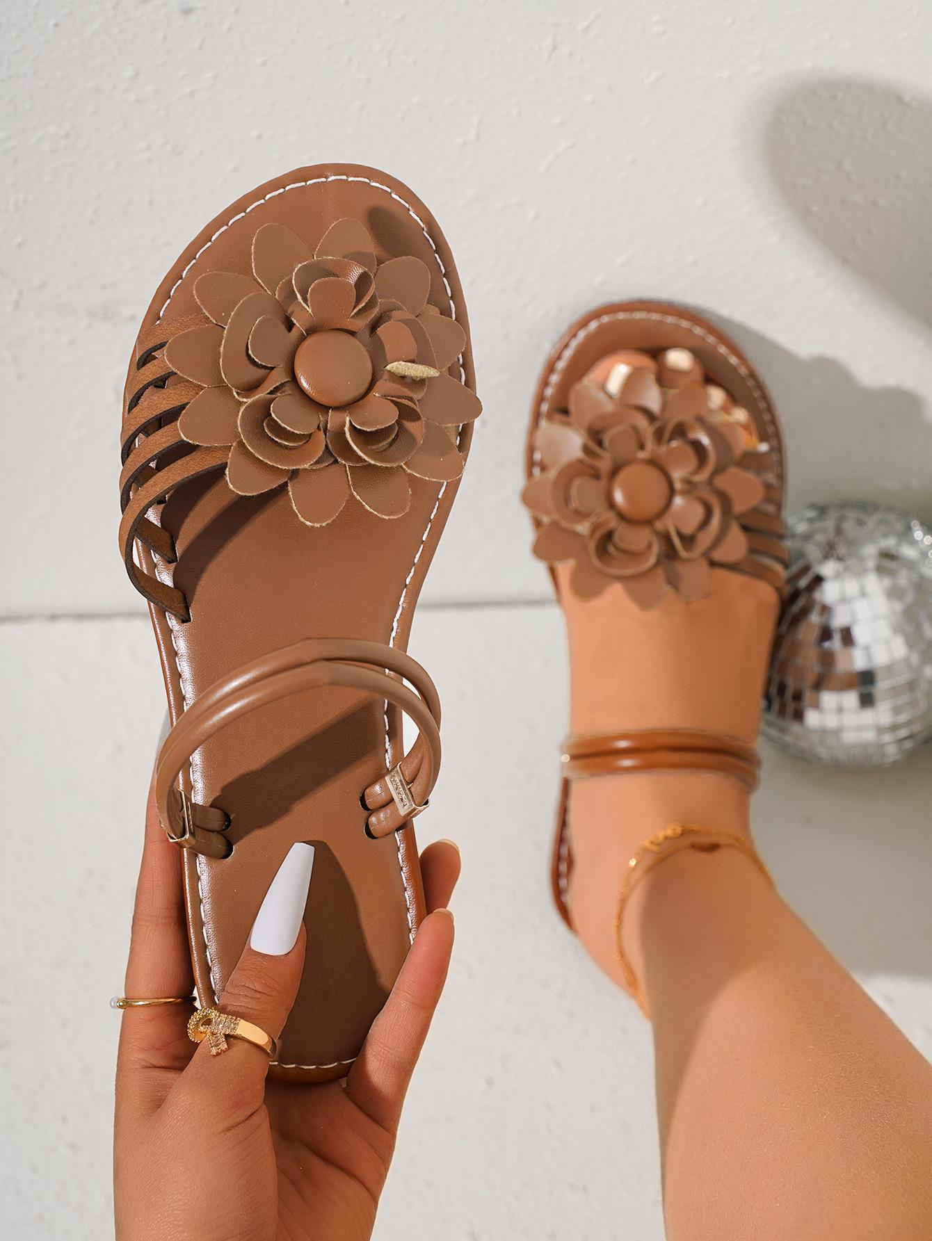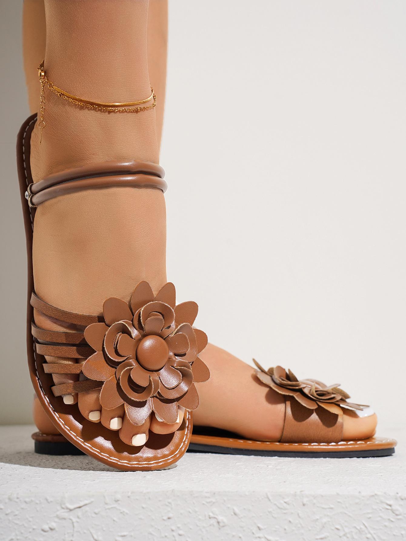 Flor Verano Nuevo Estilo 2024 Exportación Damas Estilo Europeo y Americano Doble Uso Talla Grande Sandalias Planas Decorativas