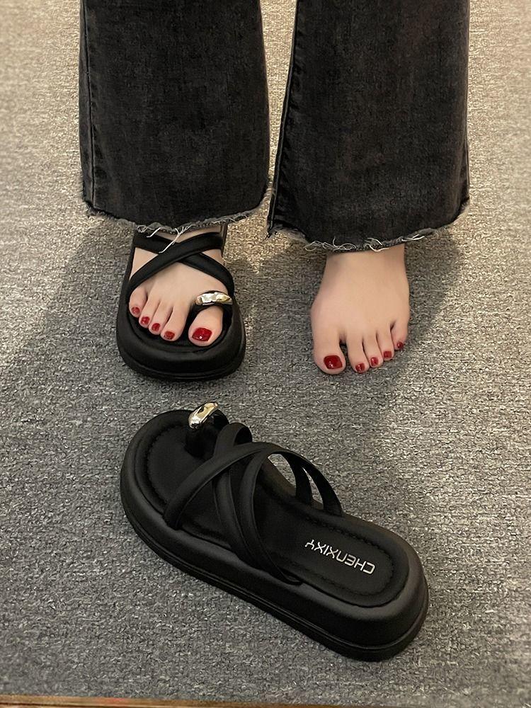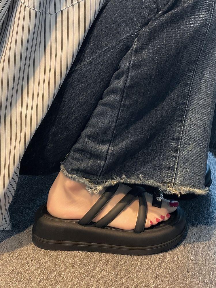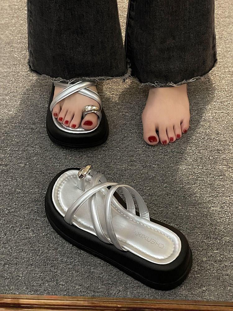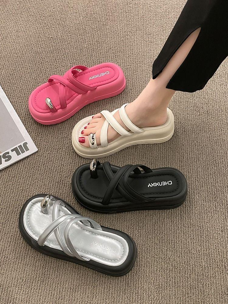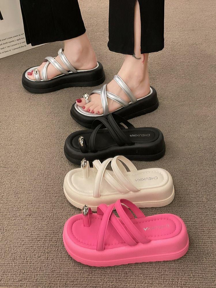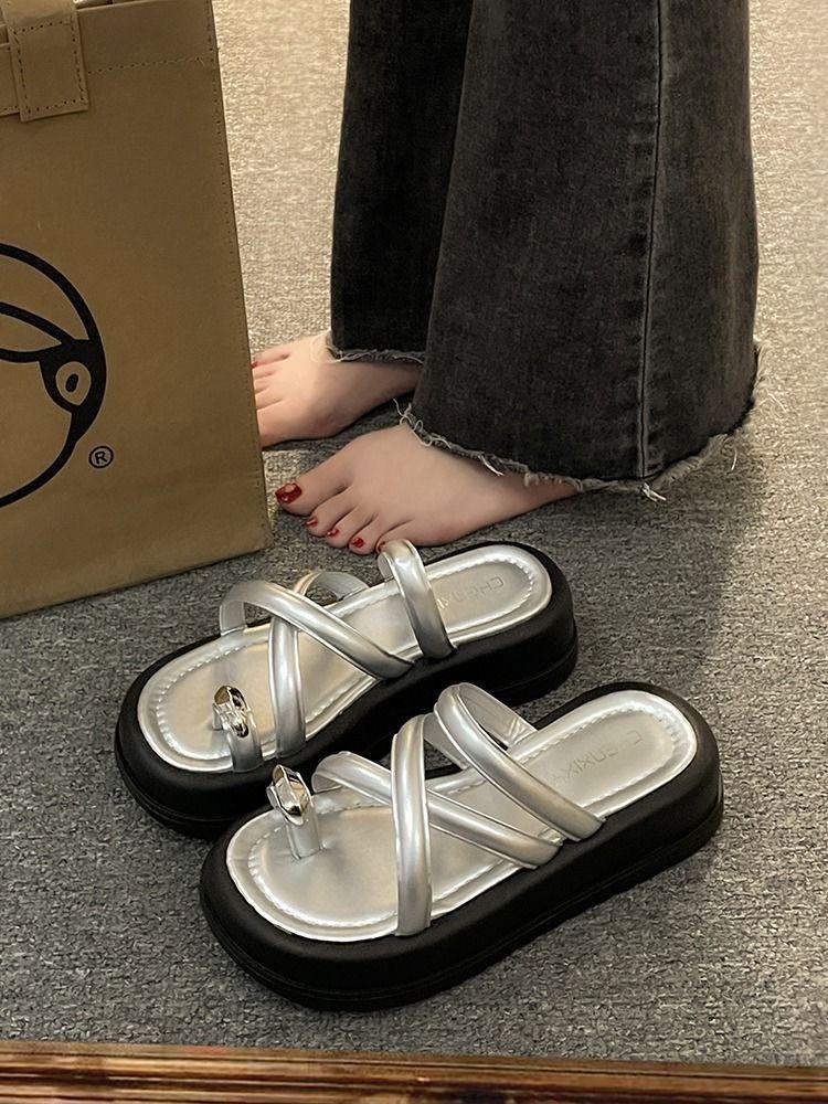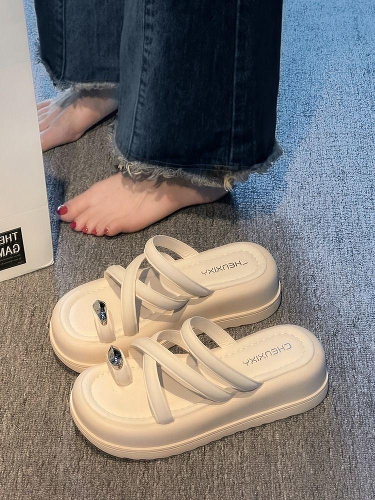 Atuendo de Estilo de Alta Gama Sandalias de Plataforma con Punta de Plataforma 2024 Verano Nuevo Estilo Estilo Chanel Zapatillas de Oficina Zapatos de Mujer