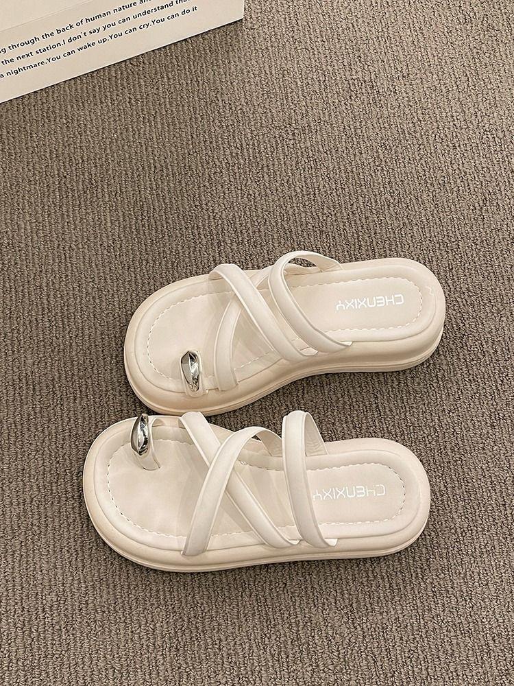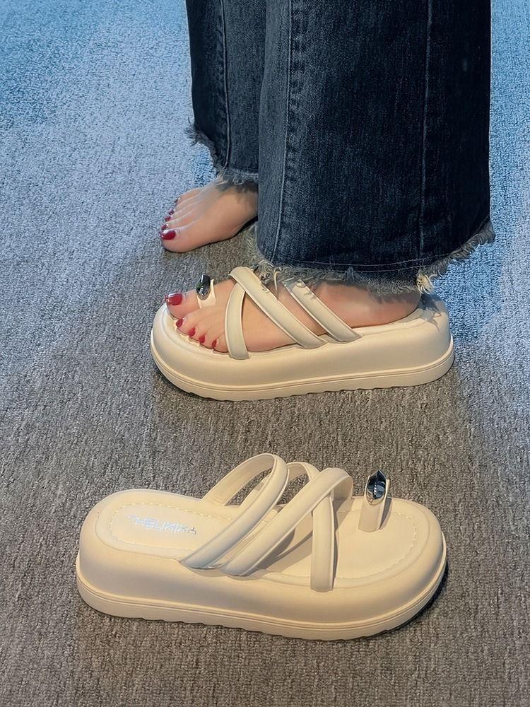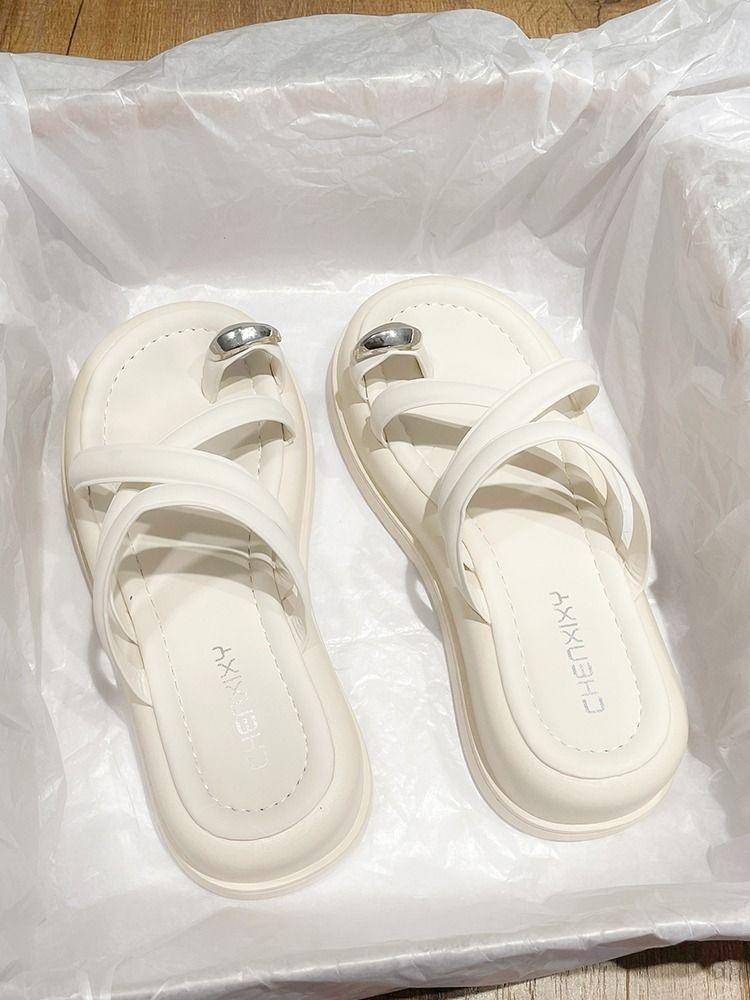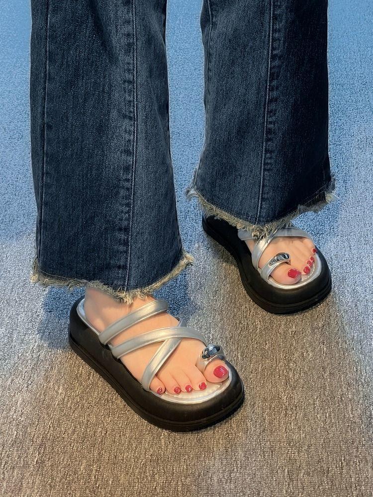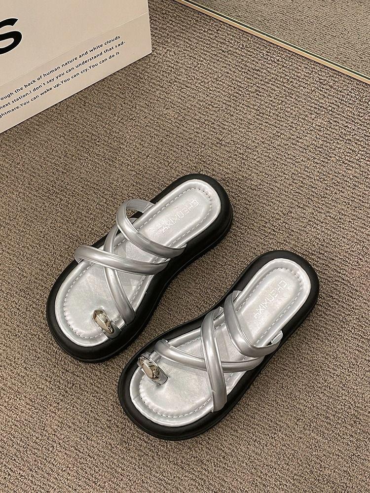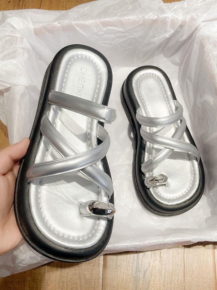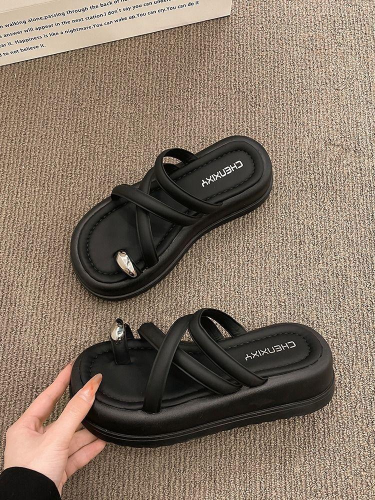 Atuendo de Estilo de Alta Gama Sandalias de Plataforma con Punta de Plataforma 2024 Verano Nuevo Estilo Estilo Chanel Zapatillas de Oficina Zapatos de Mujer