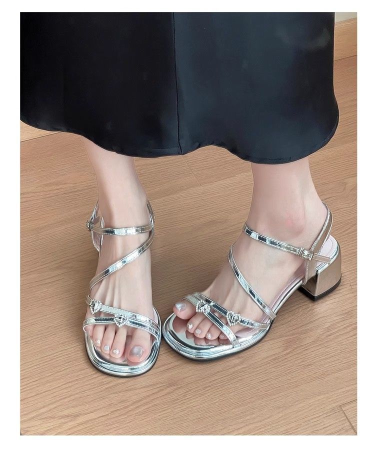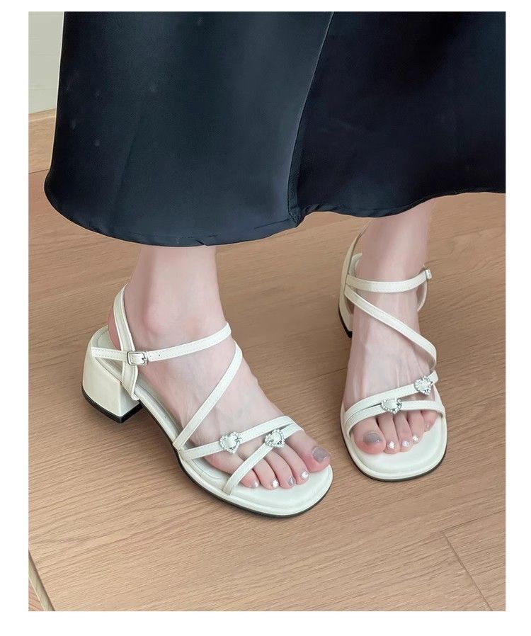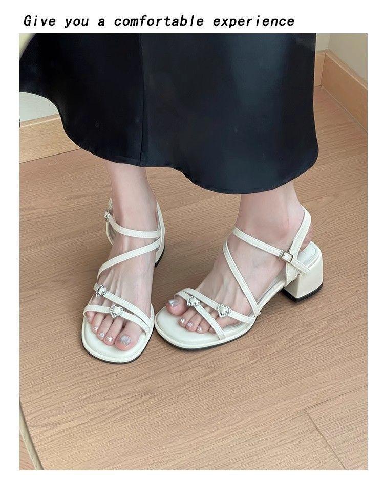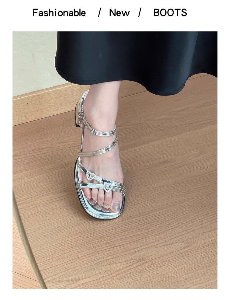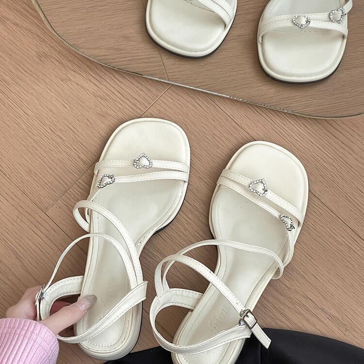 Estilo Resort Casual con Falda, Zapatos de Punta Redonda de Línea Única, Diseño de Tendencia de Moda de Verano, Sandalias Love