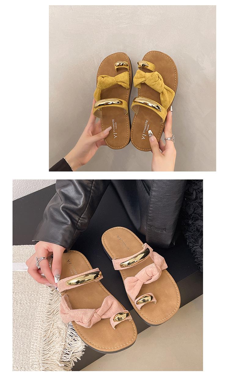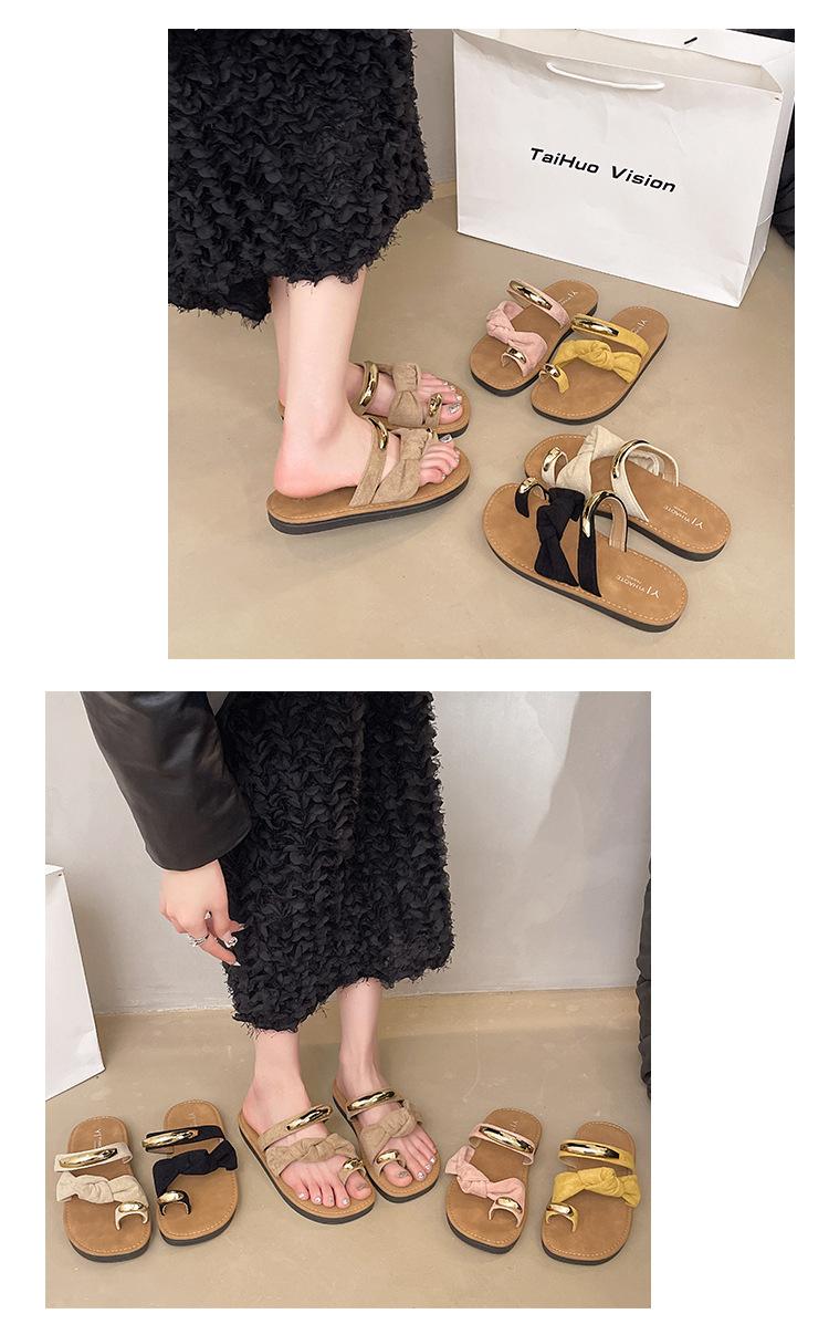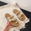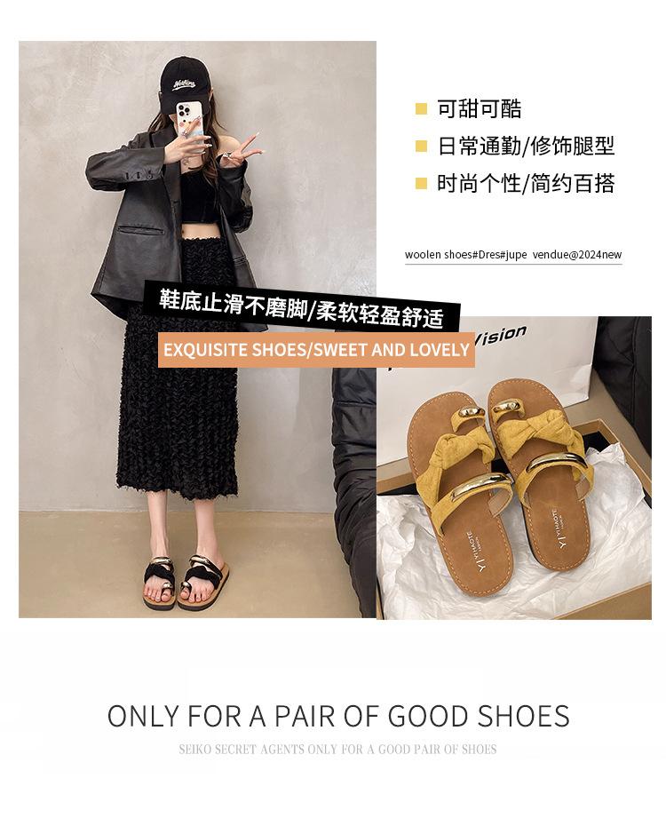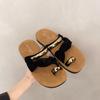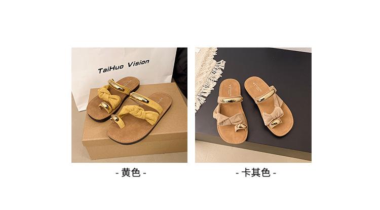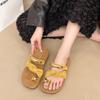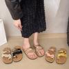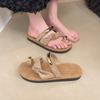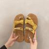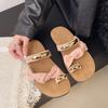Sandalias de Dedo con Perlas Verano 2024 Color Sólido Combinables Pantuflas Casuales Punta Redonda Ajustadas al Pie Zapatos Antideslizantes Pantuflas de Moda