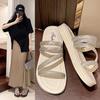 Zapatillas de Tacón Alto Plisadas Cyber Celebrous para Mujer Verano 2025 Nuevo Suela Gruesa Moda Casual Sandalias de Un Trapo