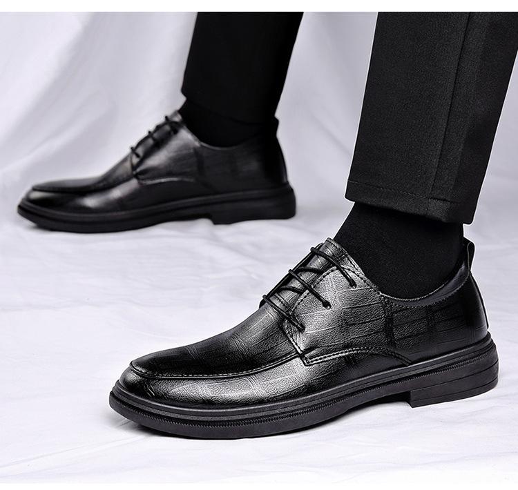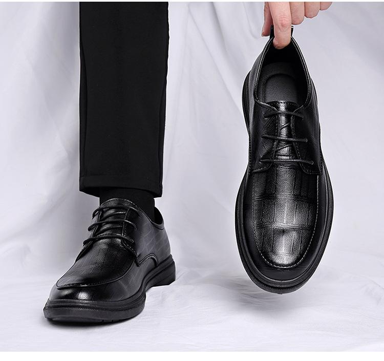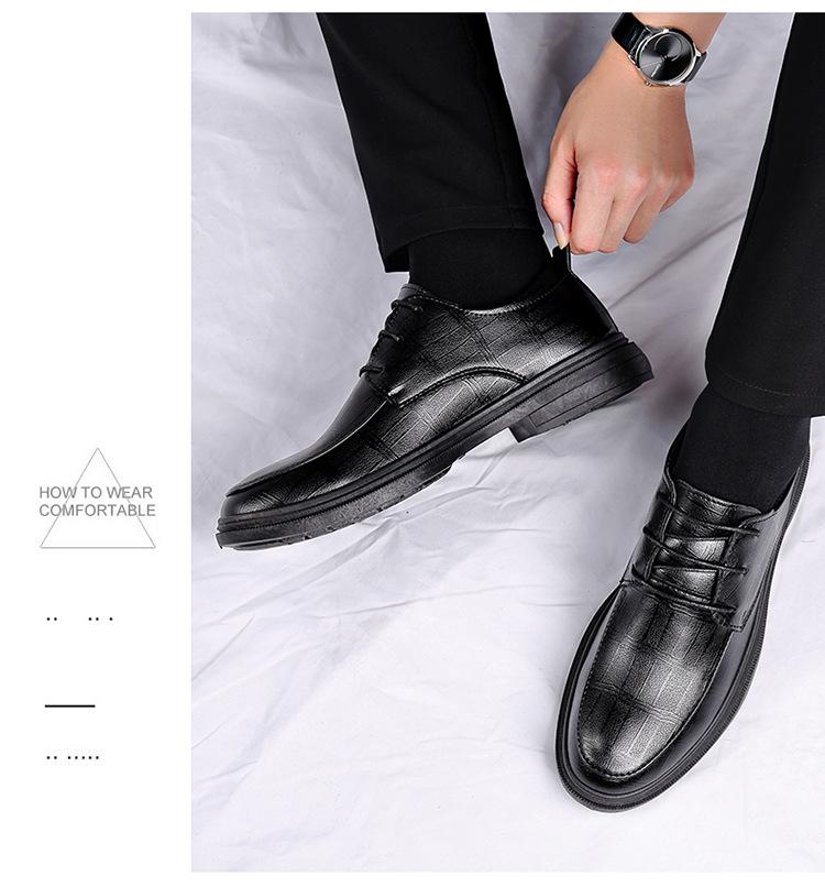 Zapatos de Cuero para Hombre, Ropa Formal de Negocios para las Cuatro Estaciones, Estilo Casual Británico para Desplazarse, Zapatos Negros con Altura para Boda y Novio, Zapatos de Hombre