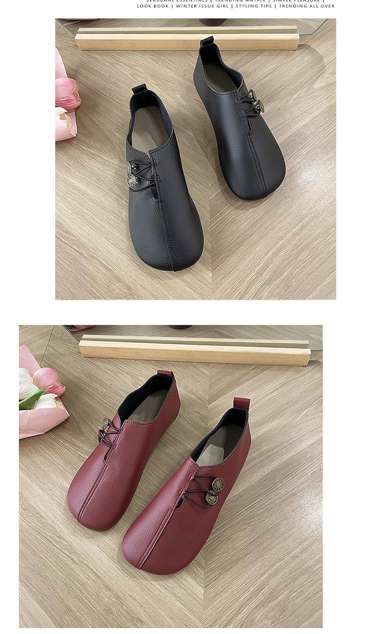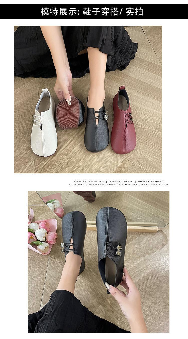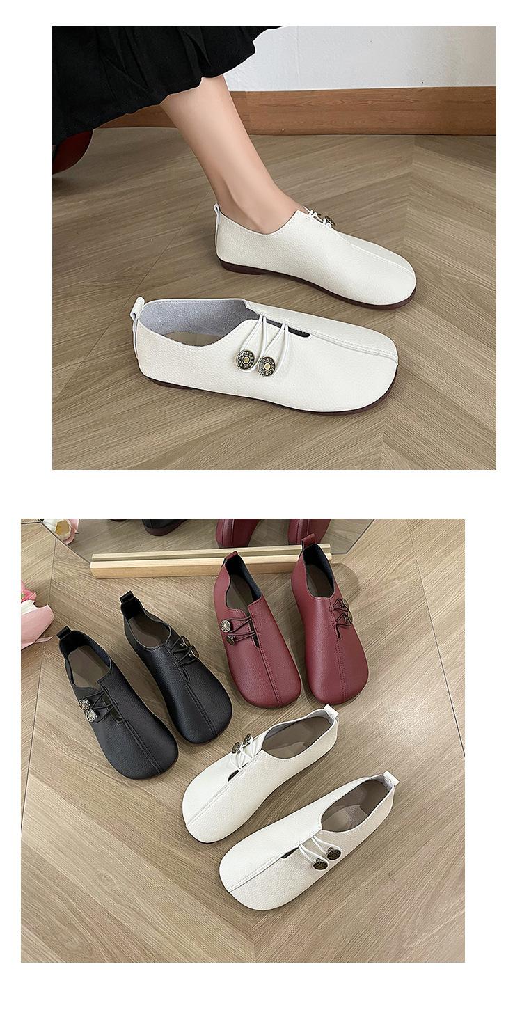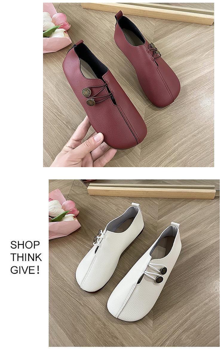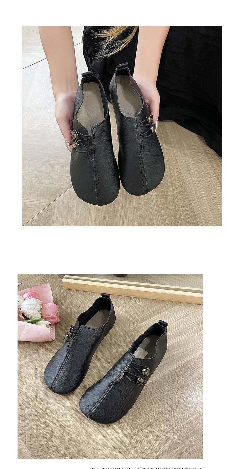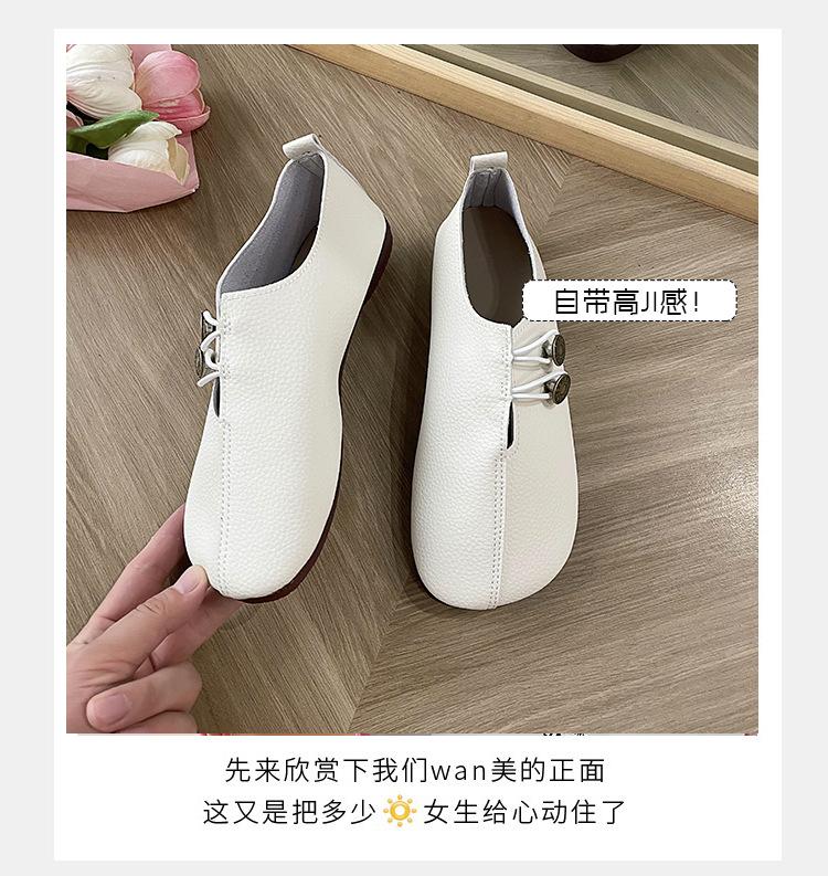 Comercio Exterior Nuevos Zapatos Bajos Planos de Cuero Suave con Cordones para Mujer Verano Botón Simple Talla Grande Cuatro Estaciones Zapatos de Trabajo Wish