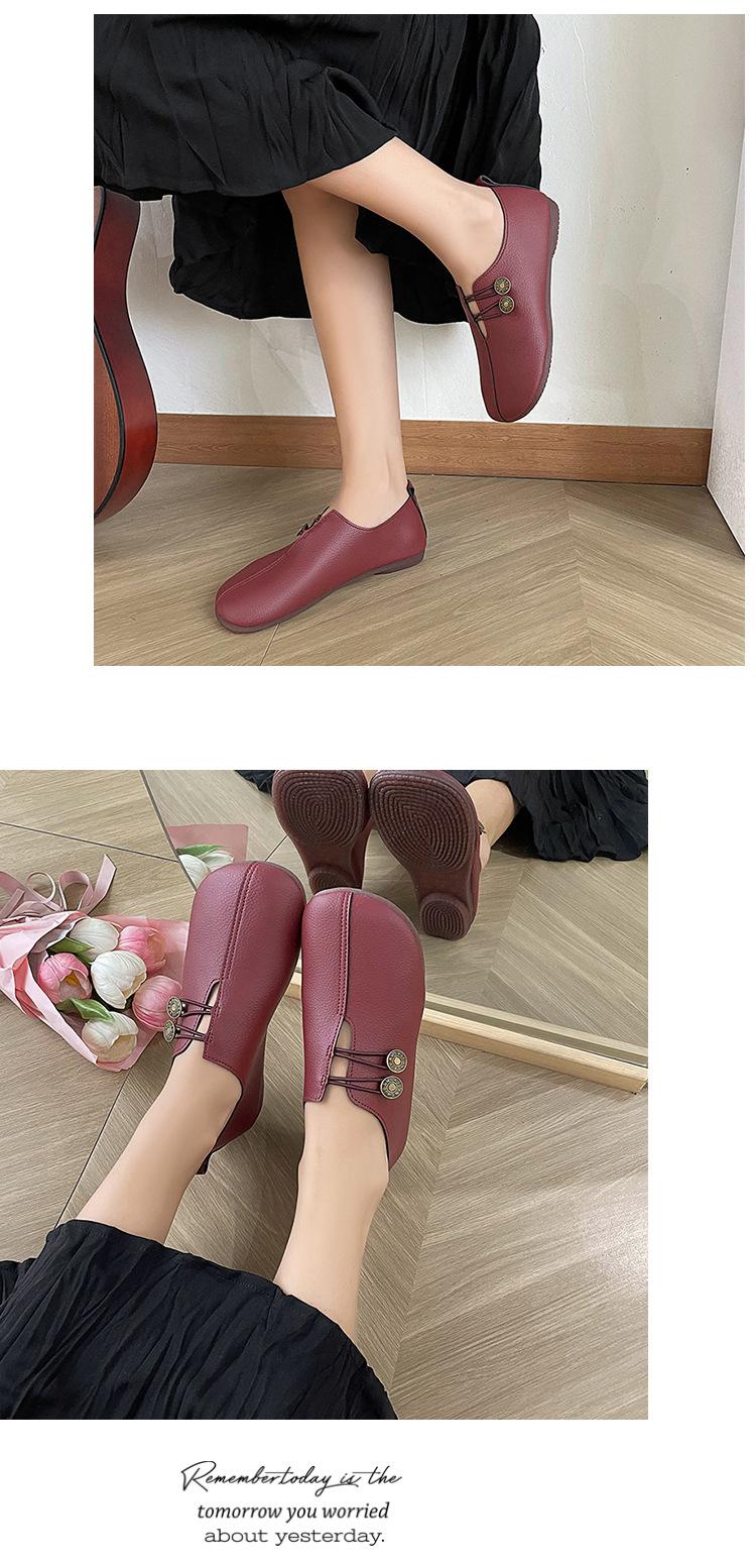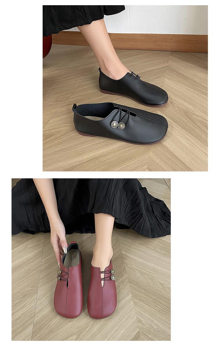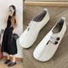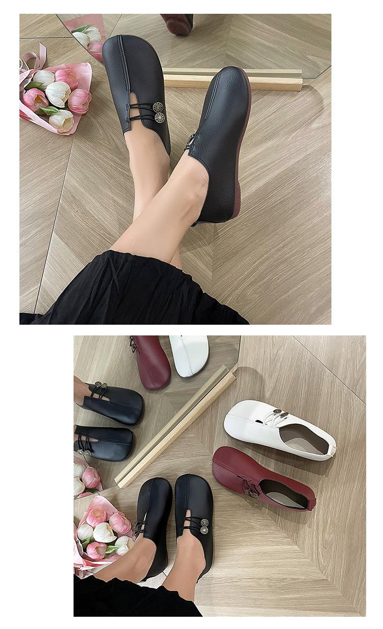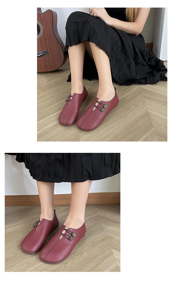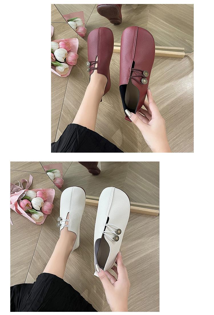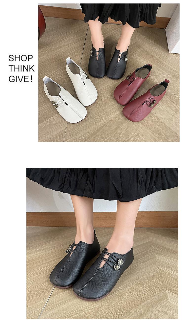 Comercio Exterior Nuevos Zapatos Bajos Planos de Cuero Suave con Cordones para Mujer Verano Botón Simple Talla Grande Cuatro Estaciones Zapatos de Trabajo Wish