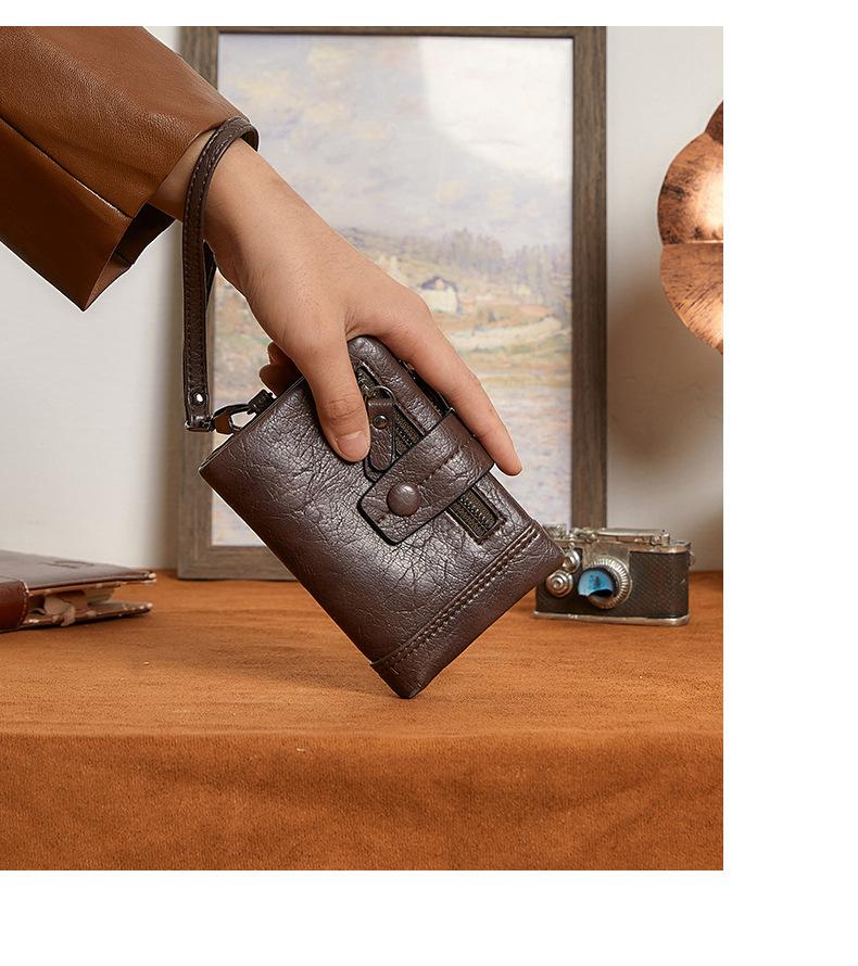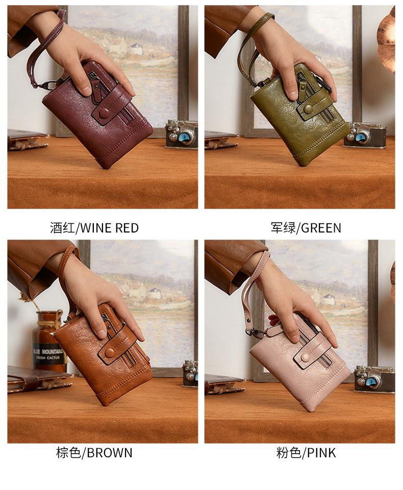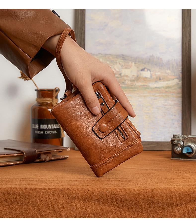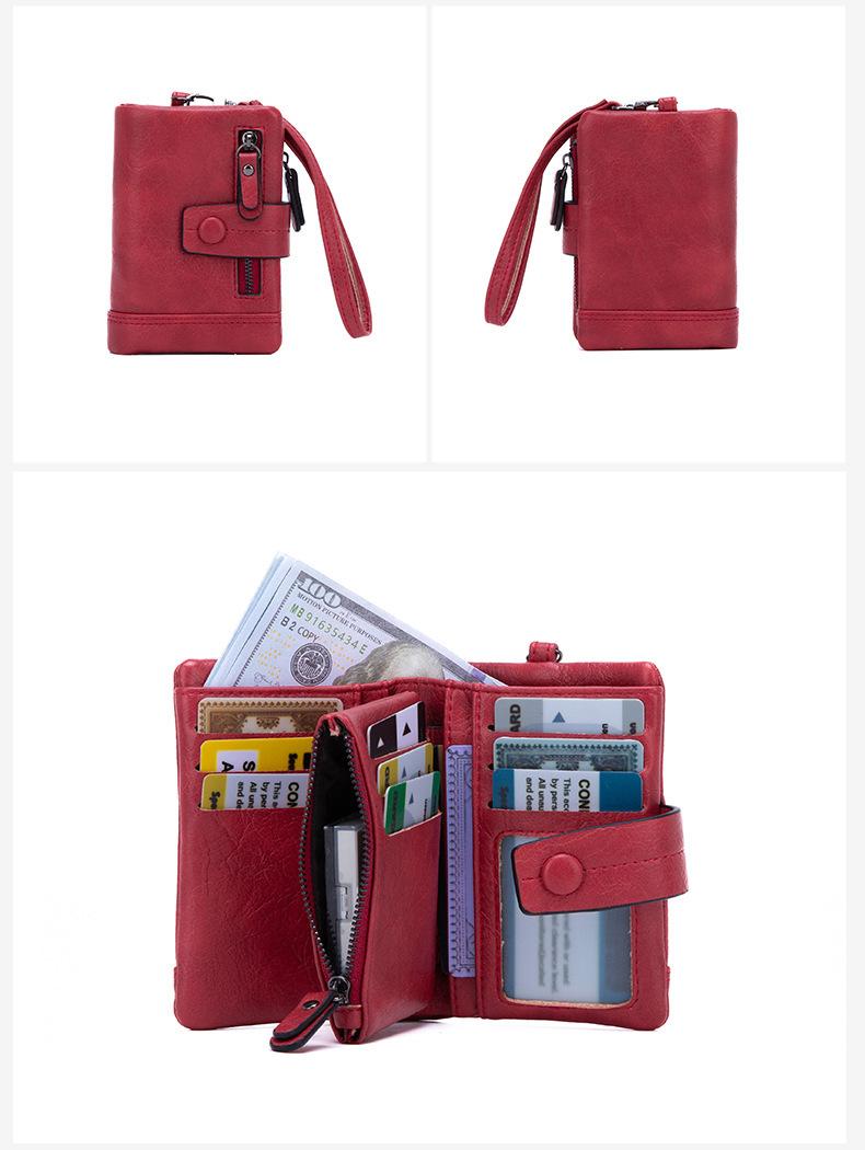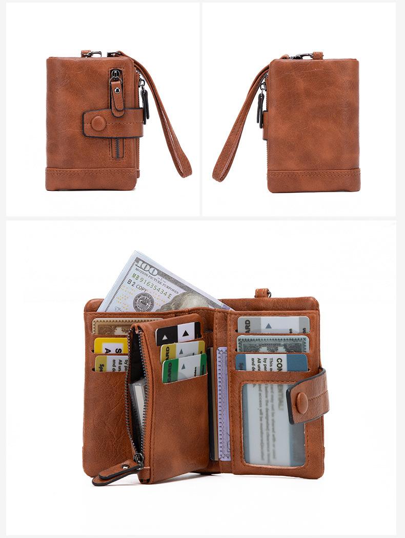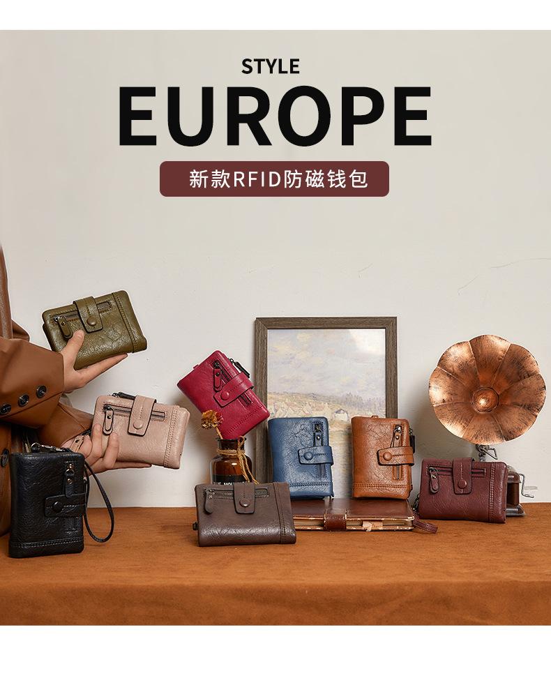Cartera antimagnética RFID para mujer, nueva cartera de cuero encerado 2023, monedero con ranura para múltiples tarjetas, cartera corta para damas europeas y americanas.