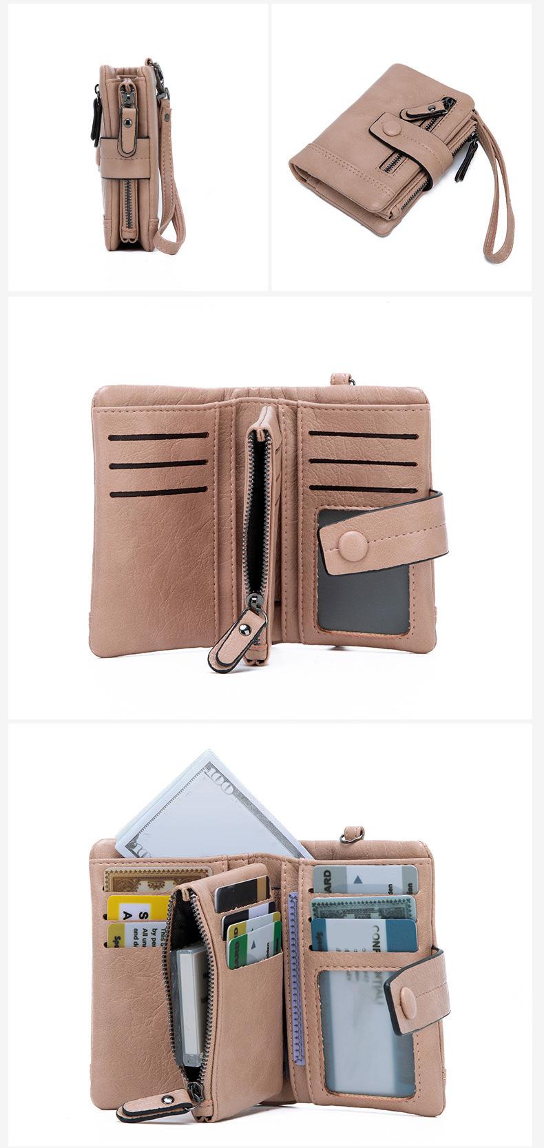 Billetera de Mujer Antirrobo RFID Nueva Transfronteriza 70% de Descuento Monedero Corto Multifuncional Moda Cierre Cremallera Bolso Clutch