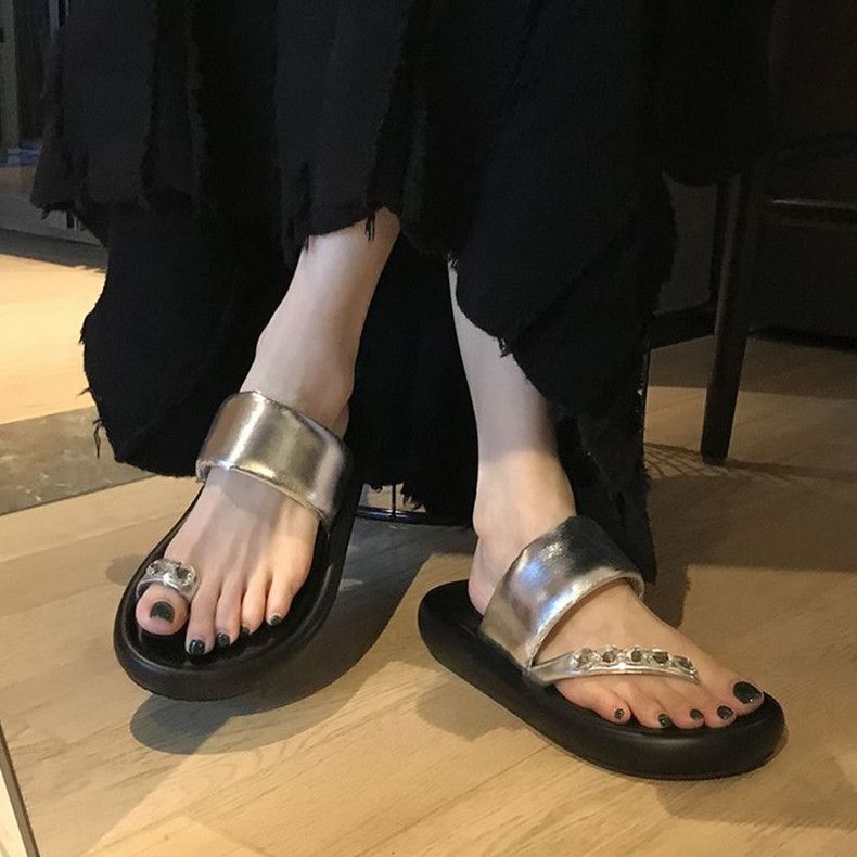 Compra Chanclas de Verano 2025 Nuevo Estilo de Hada Francés de Suela Gruesa Antideslizantes de una Línea para Vacaciones de Playa Zapatillas de Pedrería para Mujer al por mayor en Joom.pro