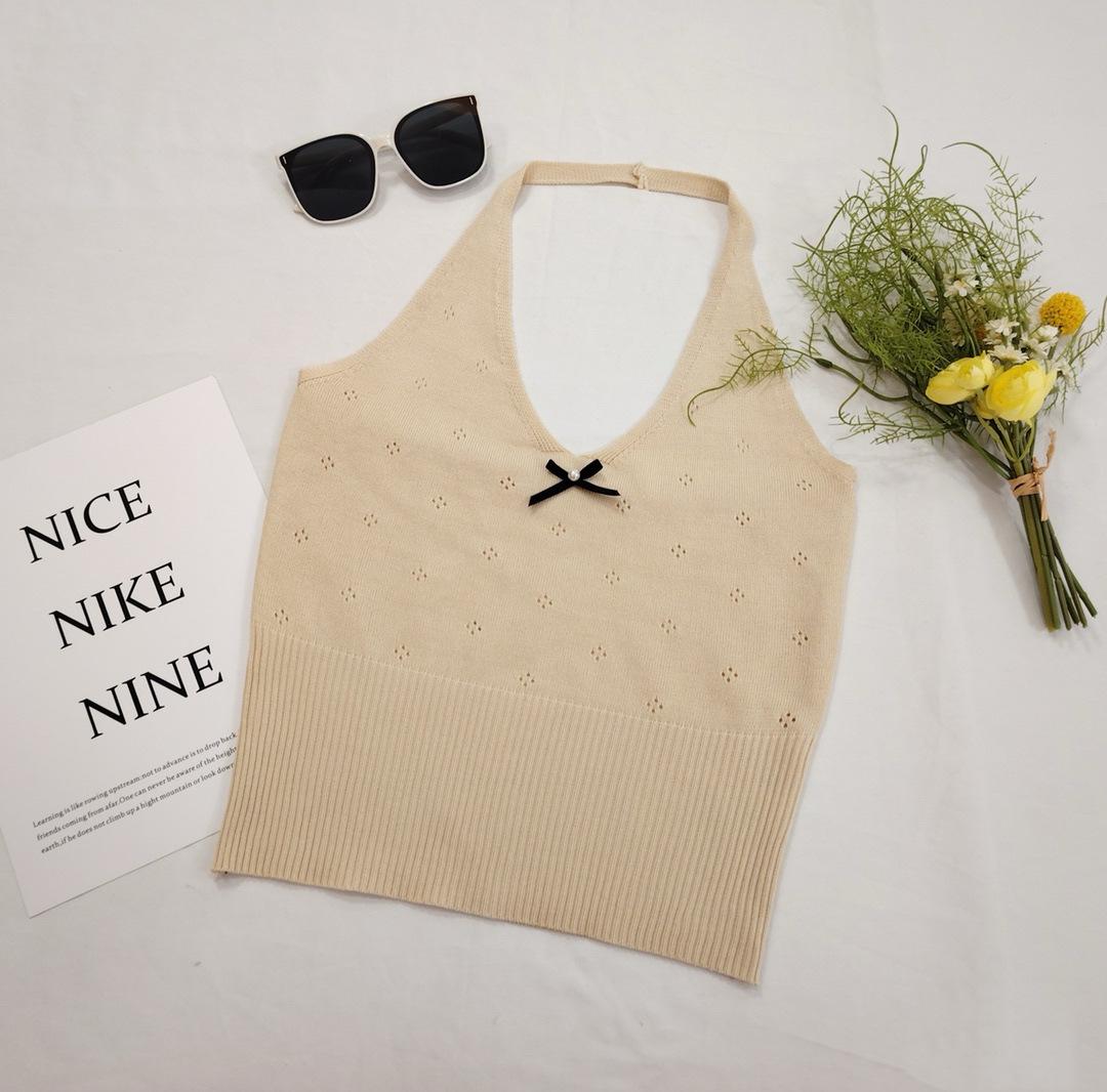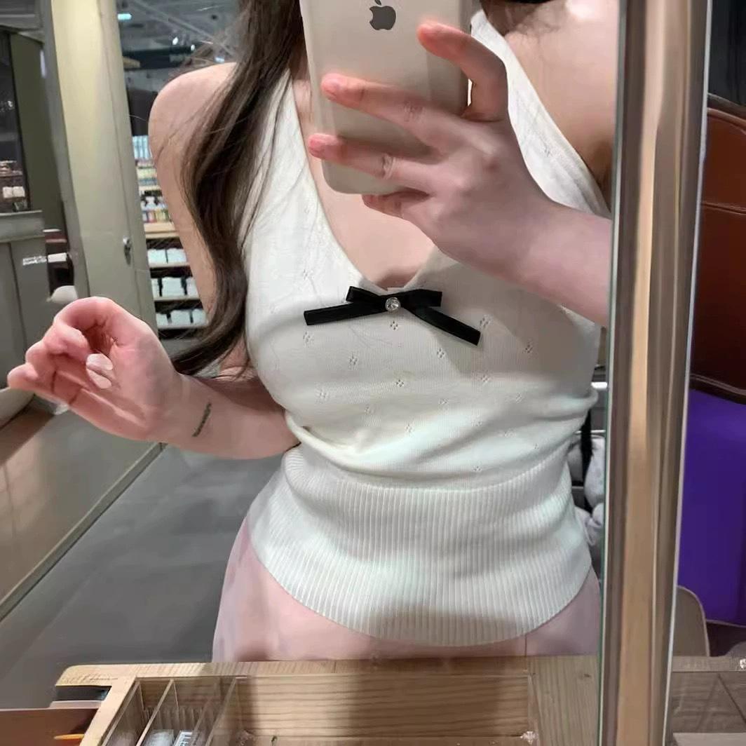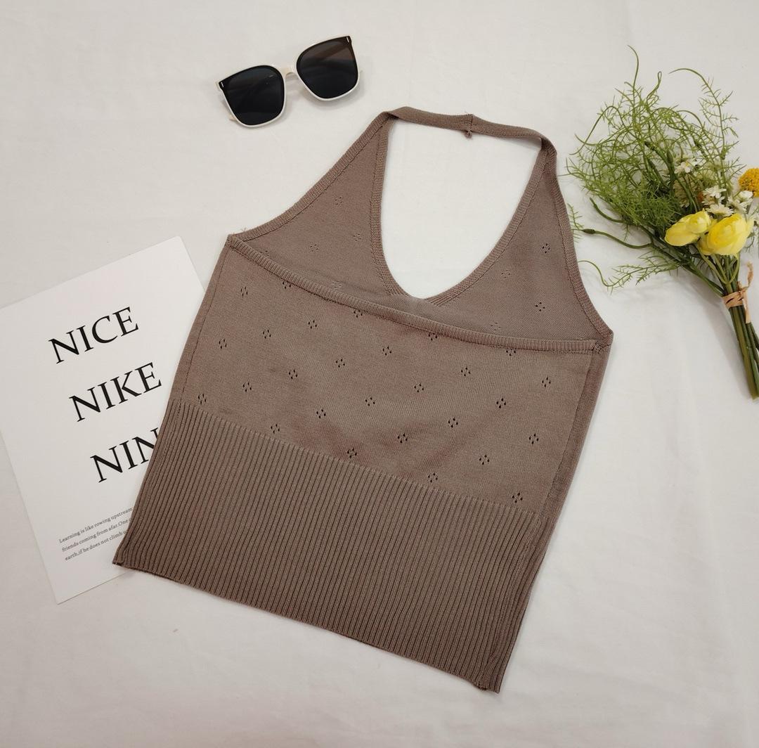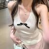 Nuevo 2024 Sexy Cuello en V Tirante Halter Chaleco de Verano Tailandés para Mujer Blanco Ajustado Top Corto