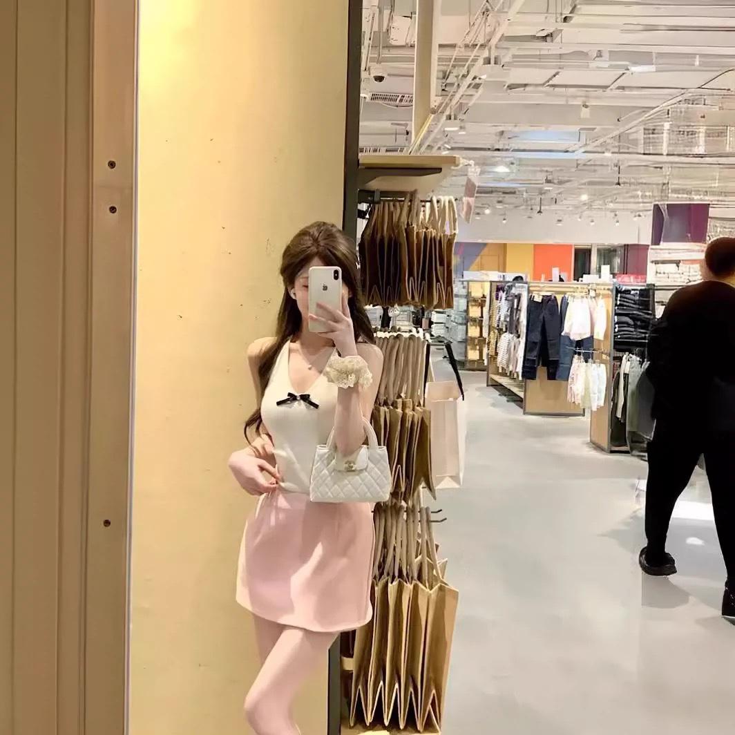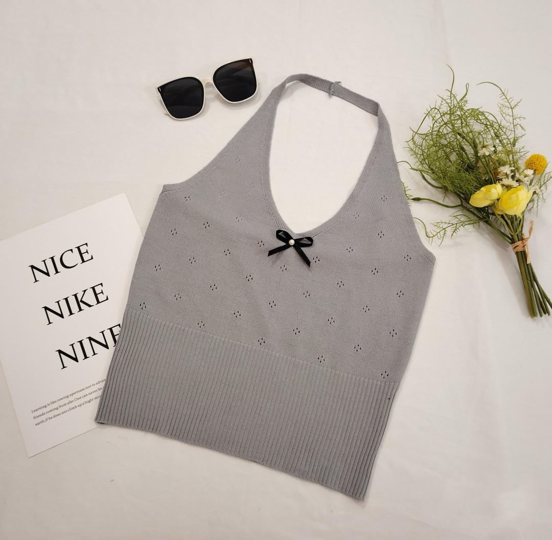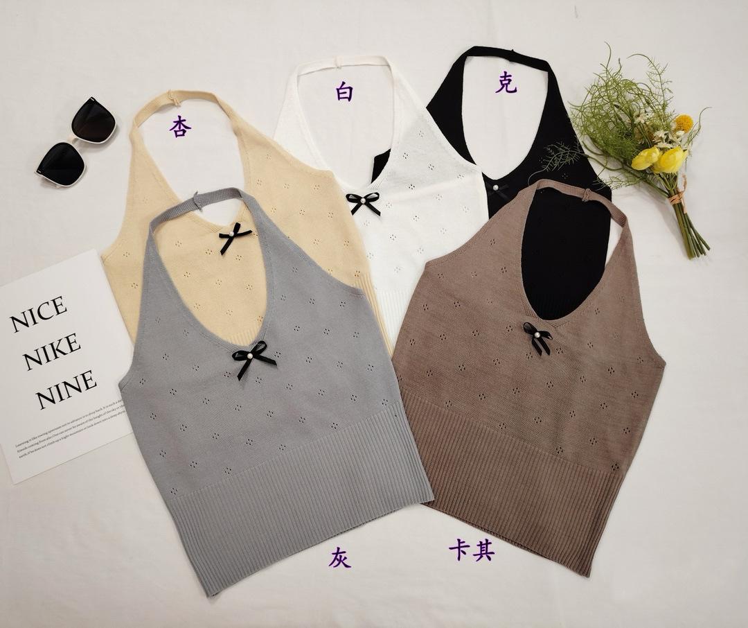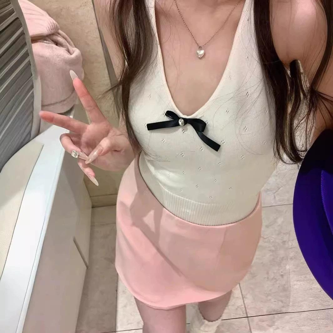 Nuevo 2024 Sexy Cuello en V Tirante Halter Chaleco de Verano Tailandés para Mujer Blanco Ajustado Top Corto