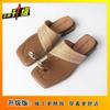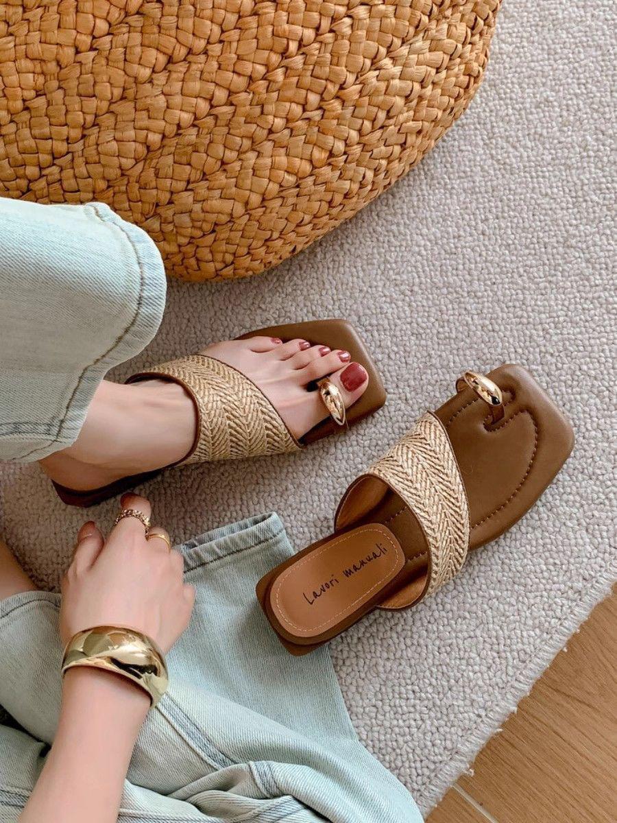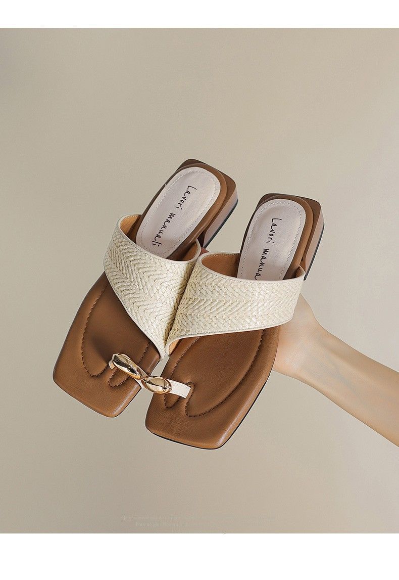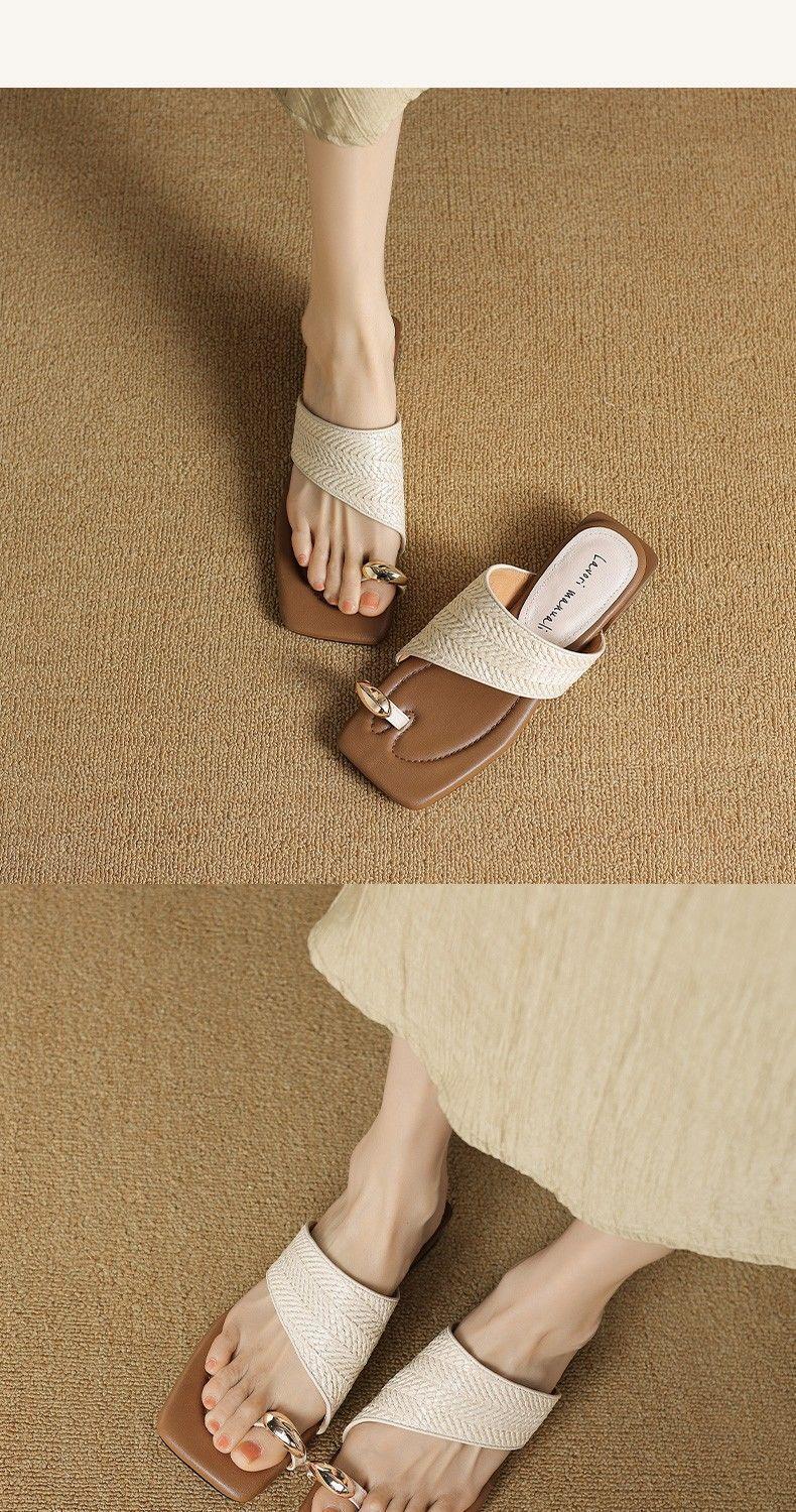 Verano Nuevo Francés Nicho Out Sandalias Alto Valor de Color Clip Dedo Fresco 2025 Vacaciones Retro Tejidas Zapatillas para Mujer