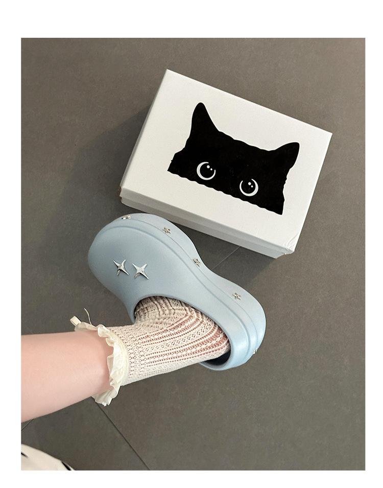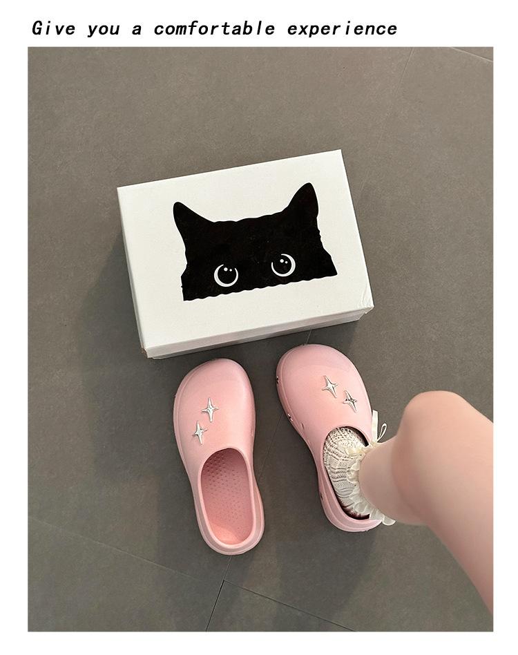 Sandalias de Moda Retro Nicho con Estoperoles para Mujer 2025 Verano Tacón Grueso Moda Petite Metal Punta Cerrada Zapatillas