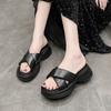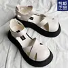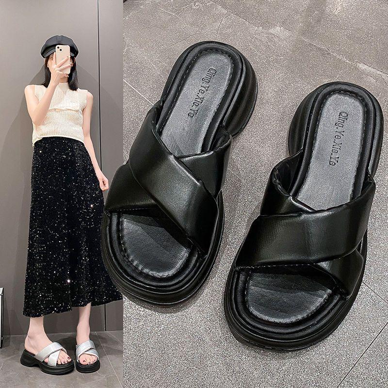 2025 Nuevas Sandalias de Plataforma de Verano de Suela Gruesa para Exterior Color Puro a la Moda Playa Plateadas Versátiles Sandalias de Tiras Cruzadas