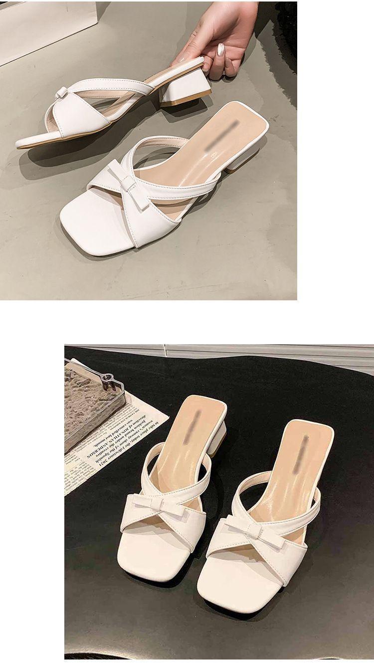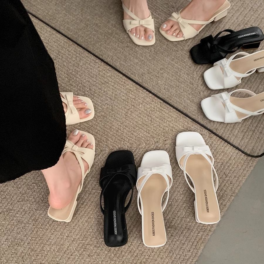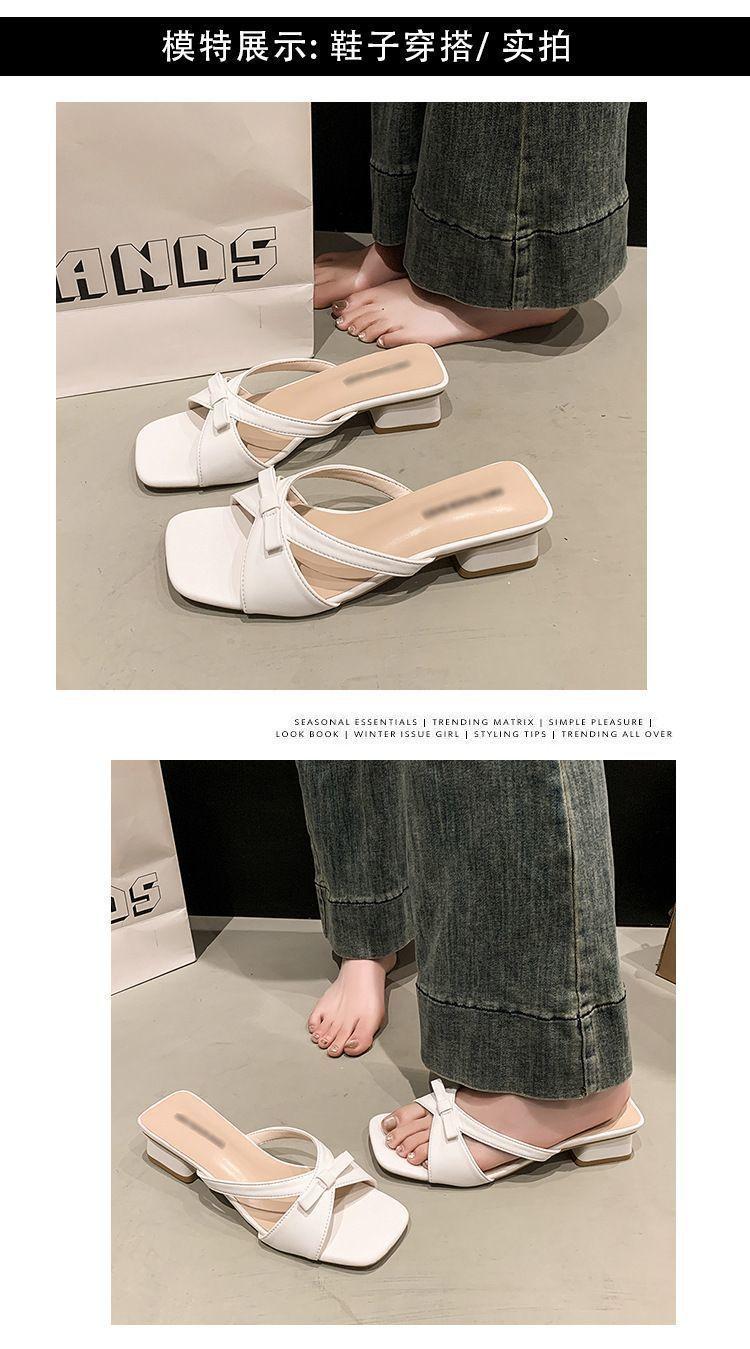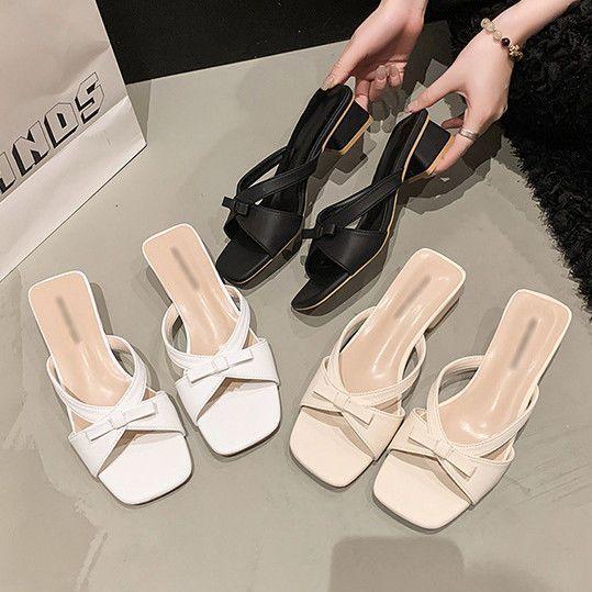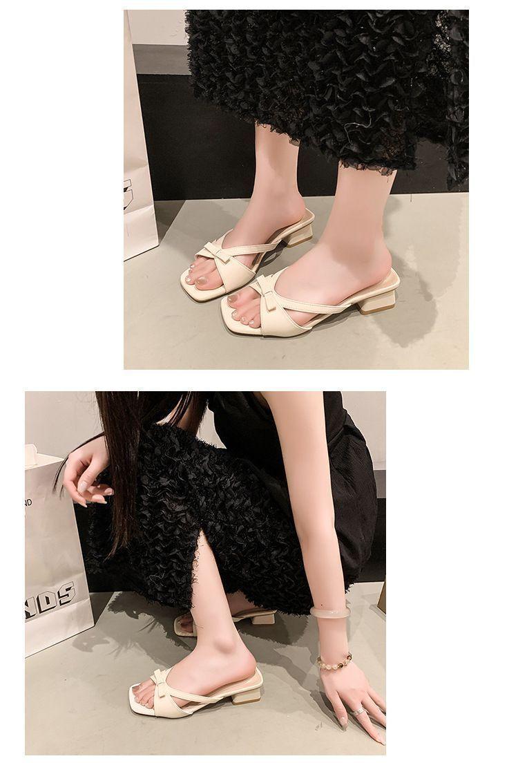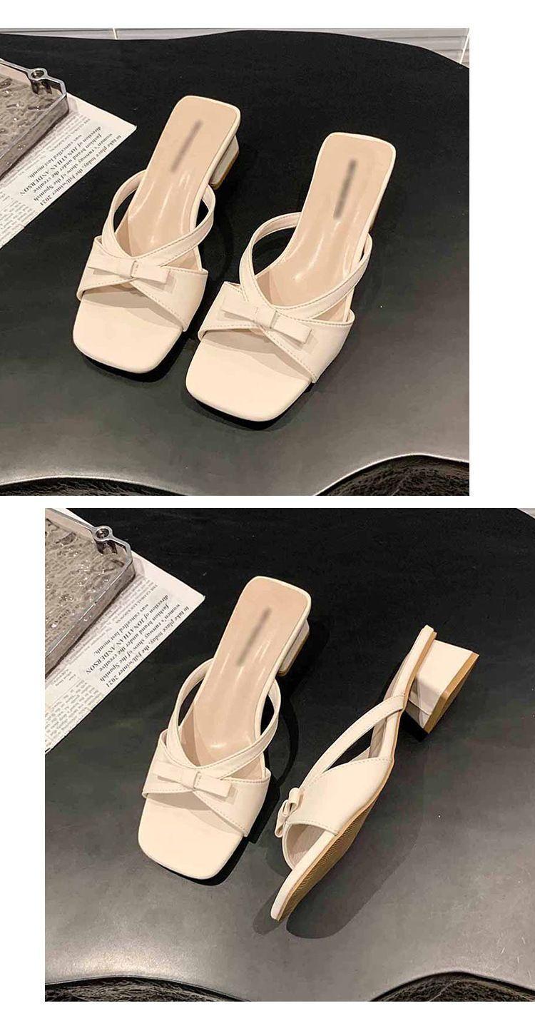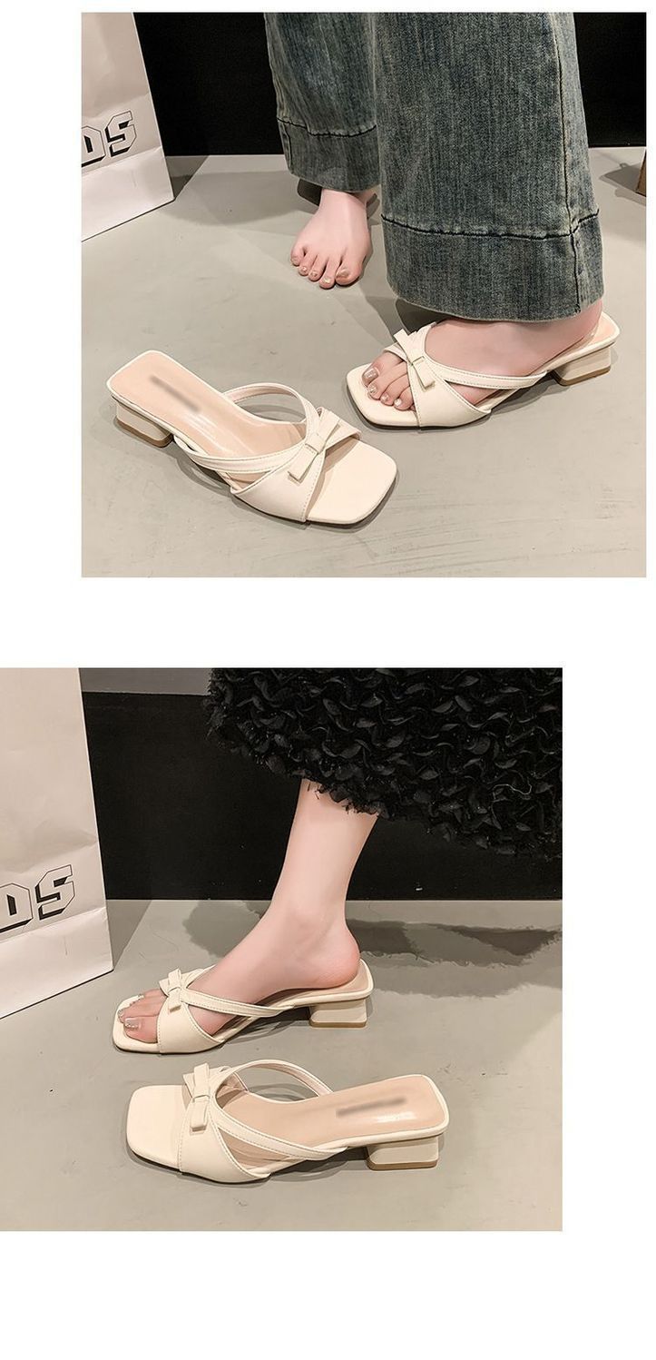 Sandalias de Moda de Hada de Estilo Francés de Punta Cuadrada Verano 2025 Lazo Nuevo Estilo Hermosas Pantuflas de Punta Abierta para Mujer para Usar en el Exterior