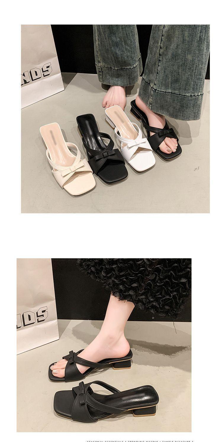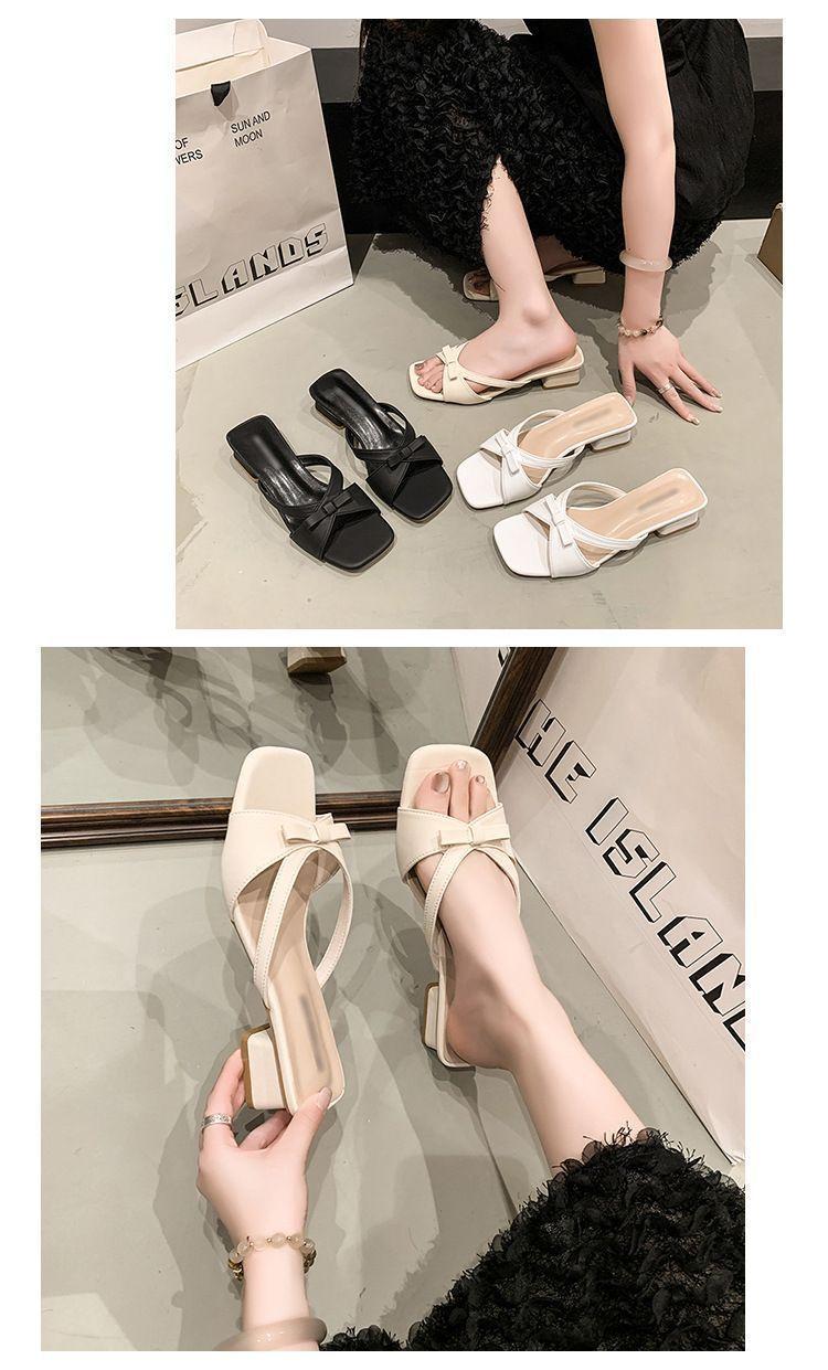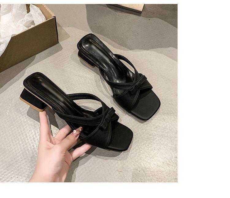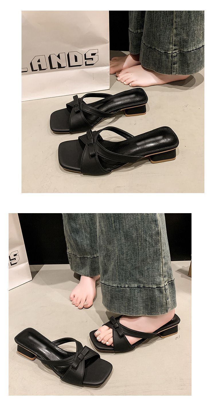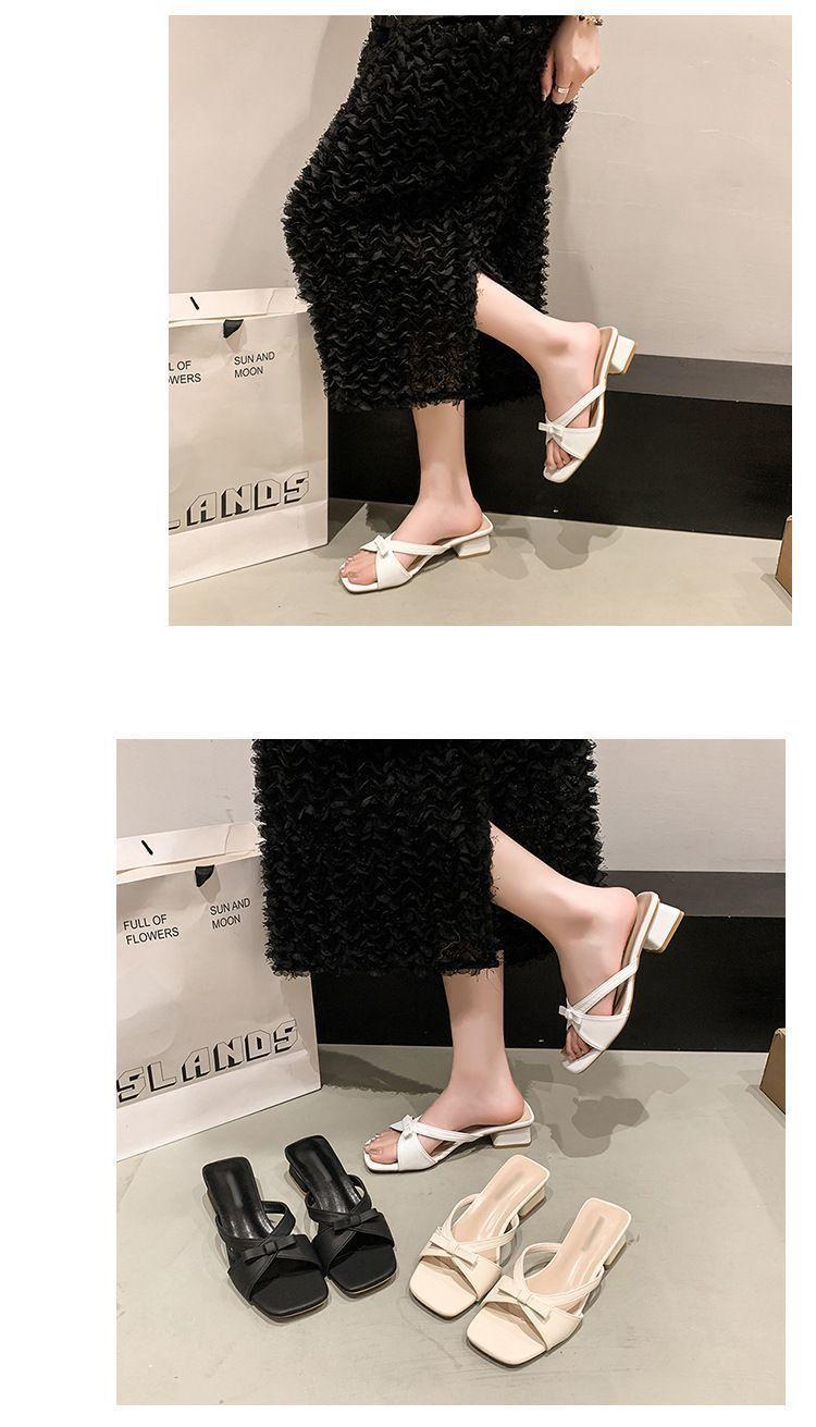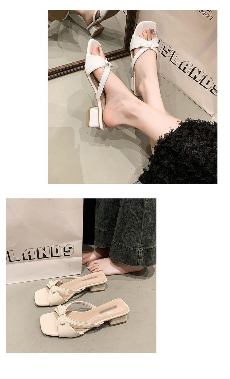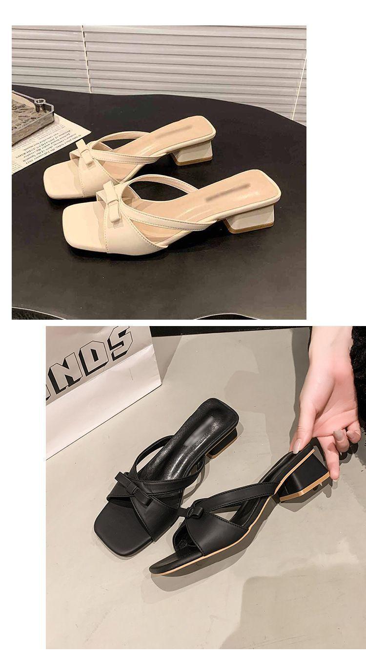 Sandalias de Moda de Hada de Estilo Francés de Punta Cuadrada Verano 2025 Lazo Nuevo Estilo Hermosas Pantuflas de Punta Abierta para Mujer para Usar en el Exterior
