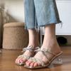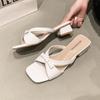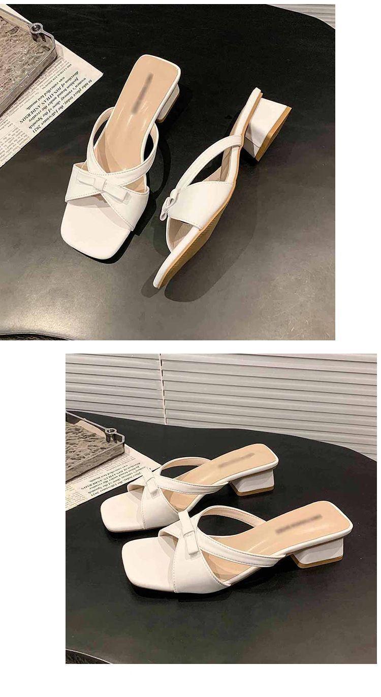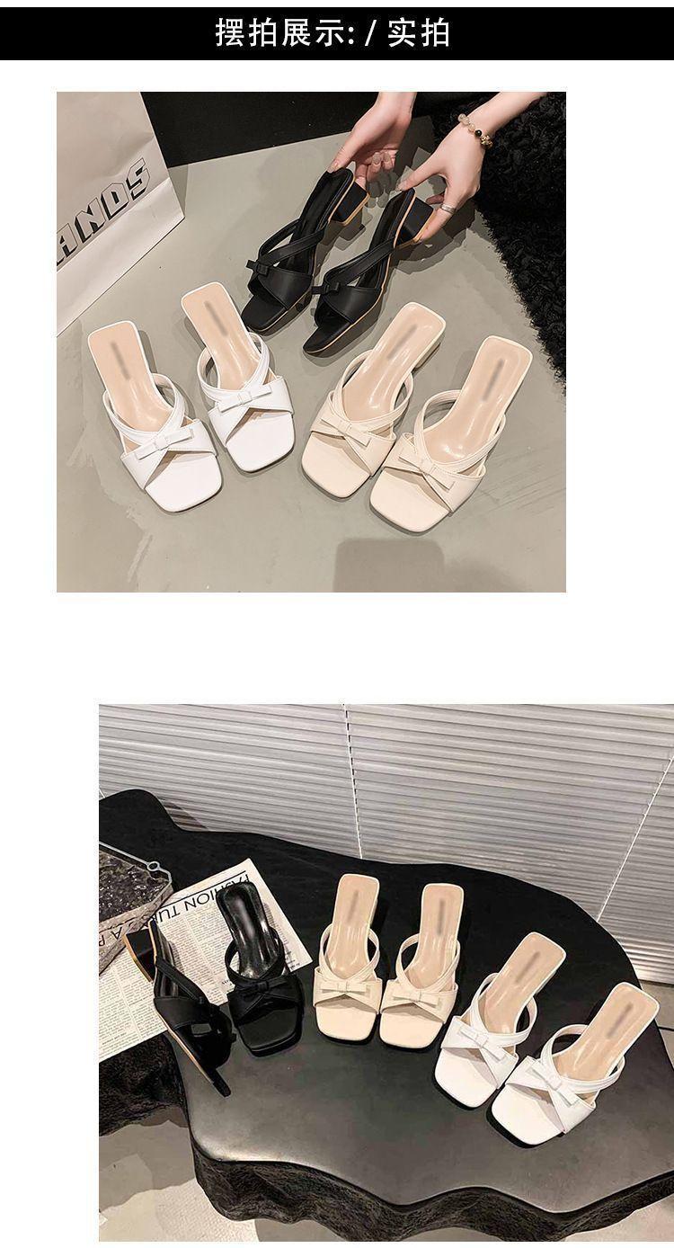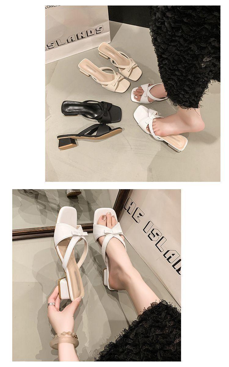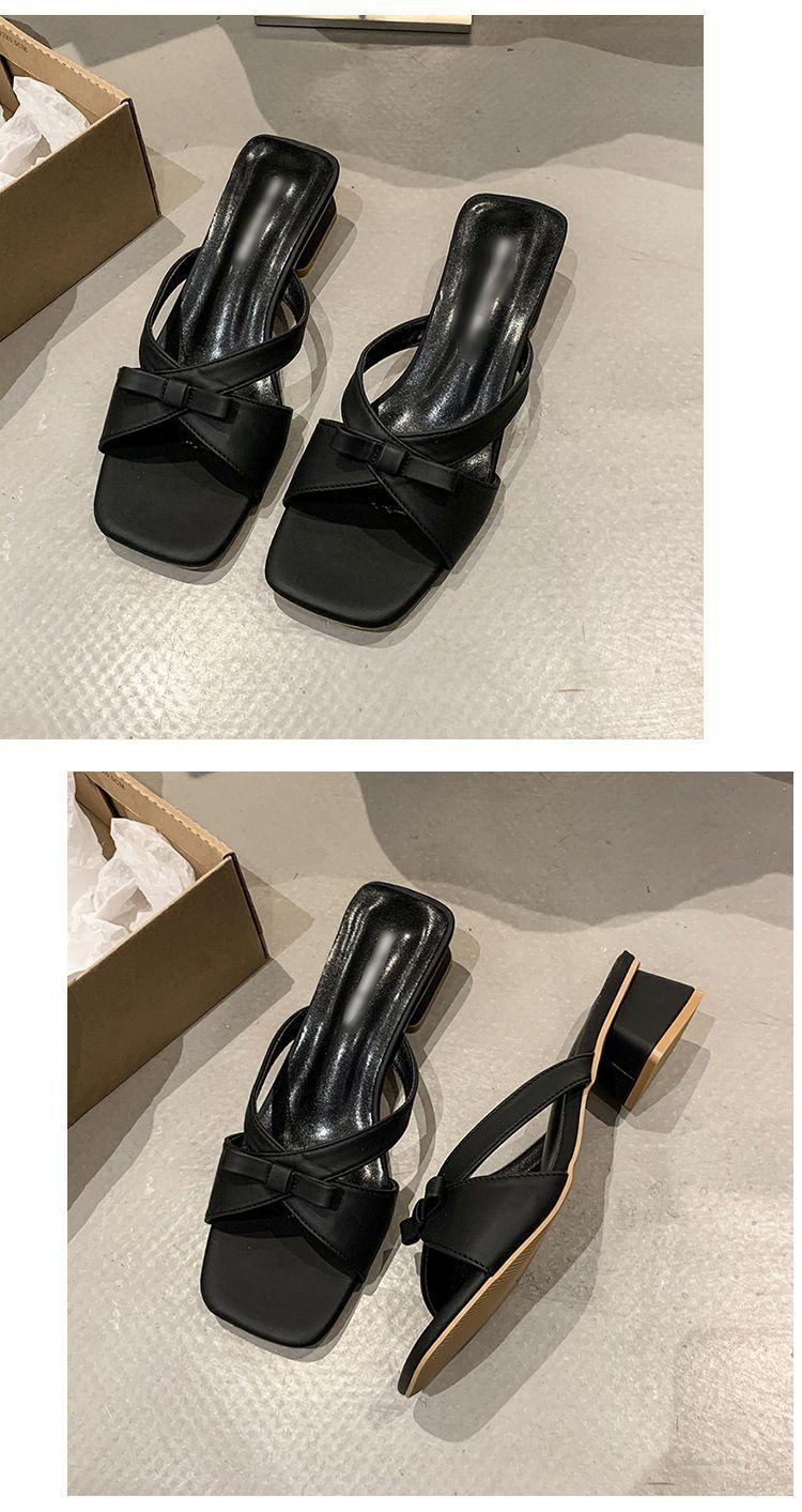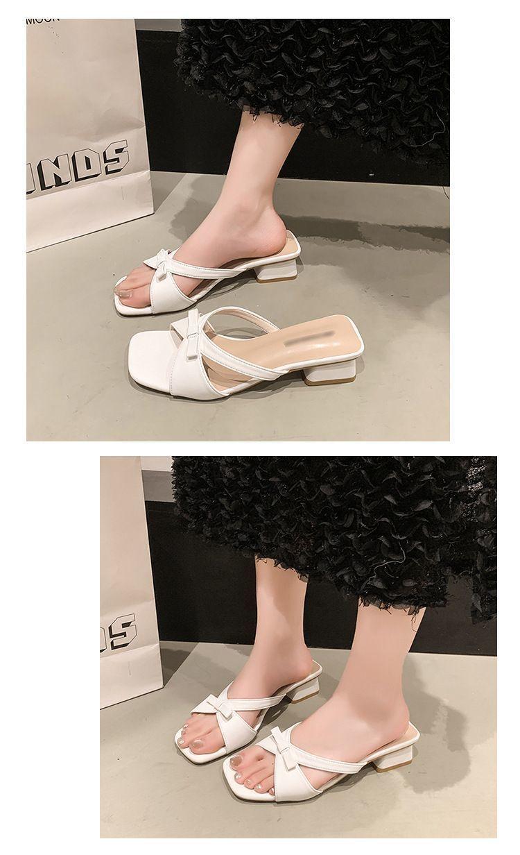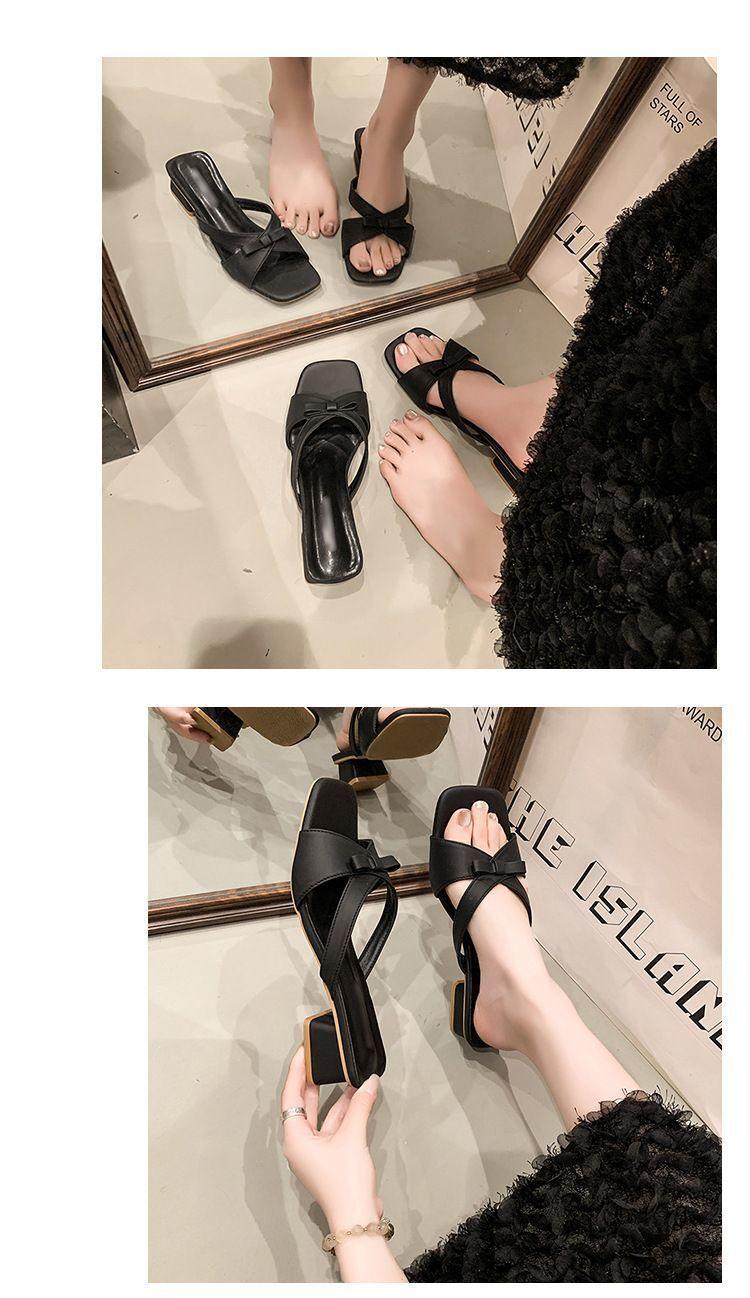 Sandalias de Moda de Hada de Estilo Francés de Punta Cuadrada Verano 2025 Lazo Nuevo Estilo Hermosas Pantuflas de Punta Abierta para Mujer para Usar en el Exterior
