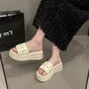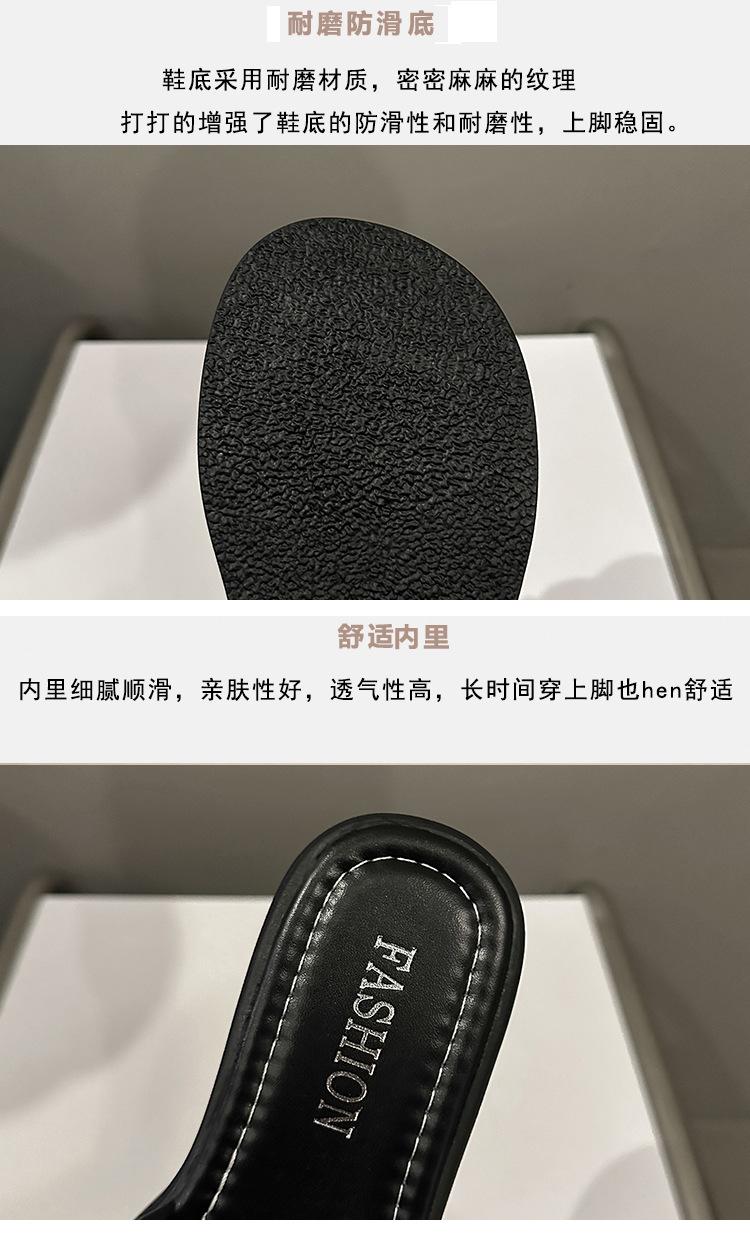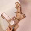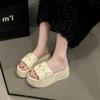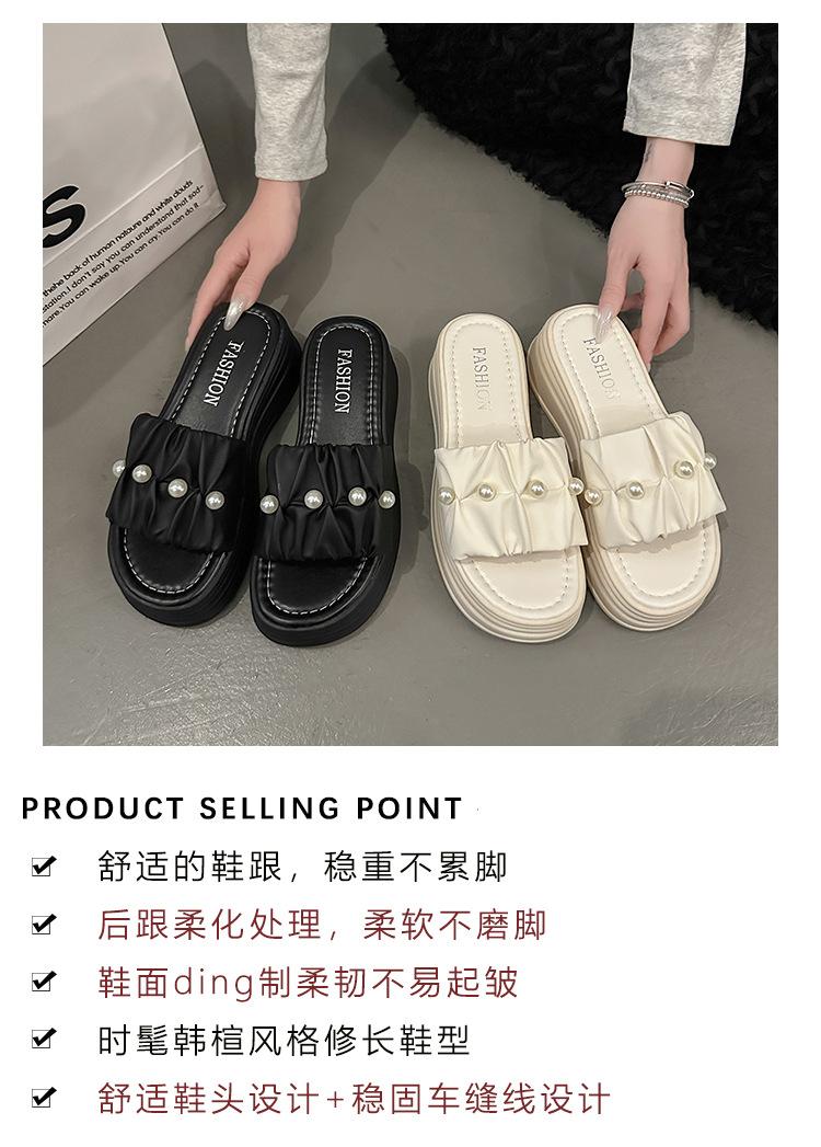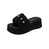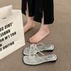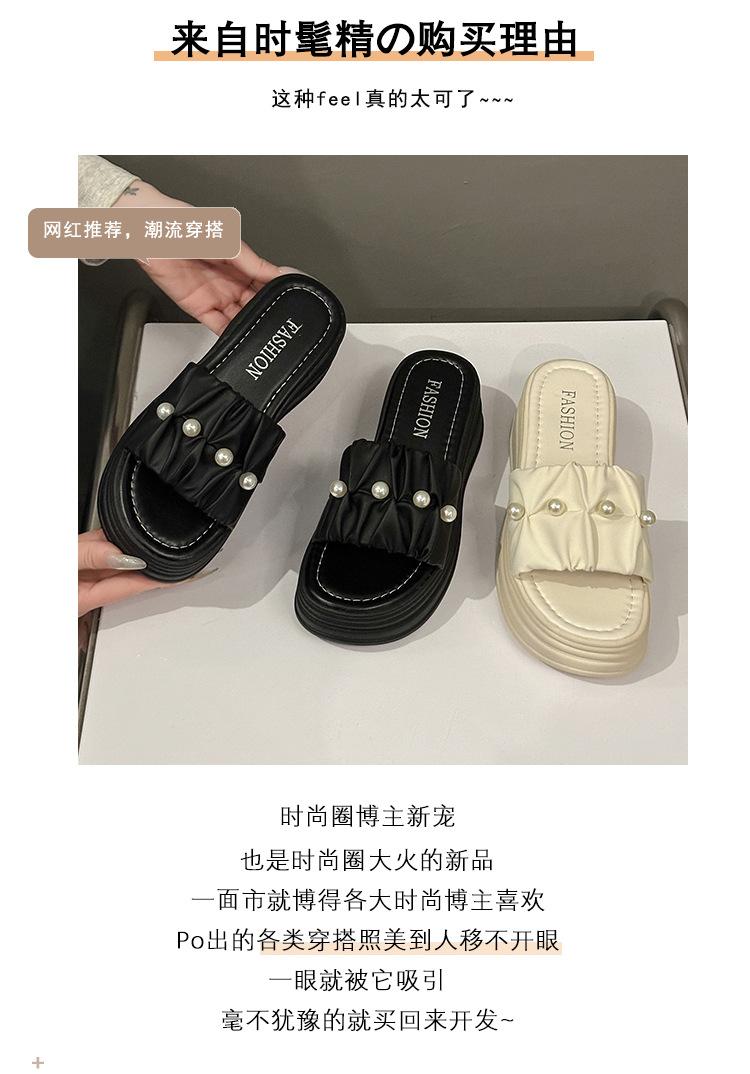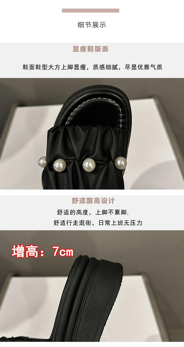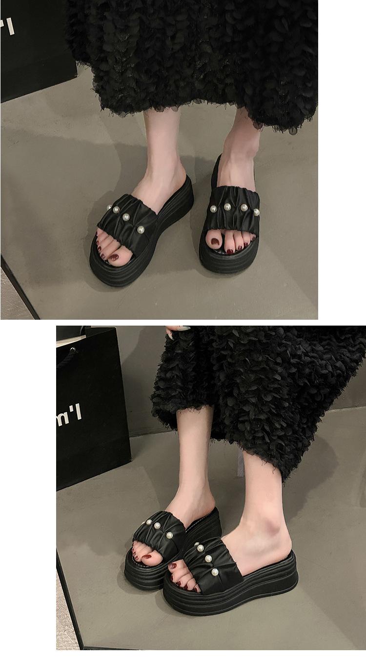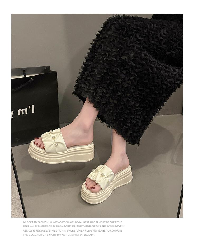Sandalias de Talla Grande Transfronterizas para Mujer 2025 Verano Nuevo Punta Cuadrada Tacón Bajo Perla Plisada Una Línea Pantuflas de Suela Gruesa