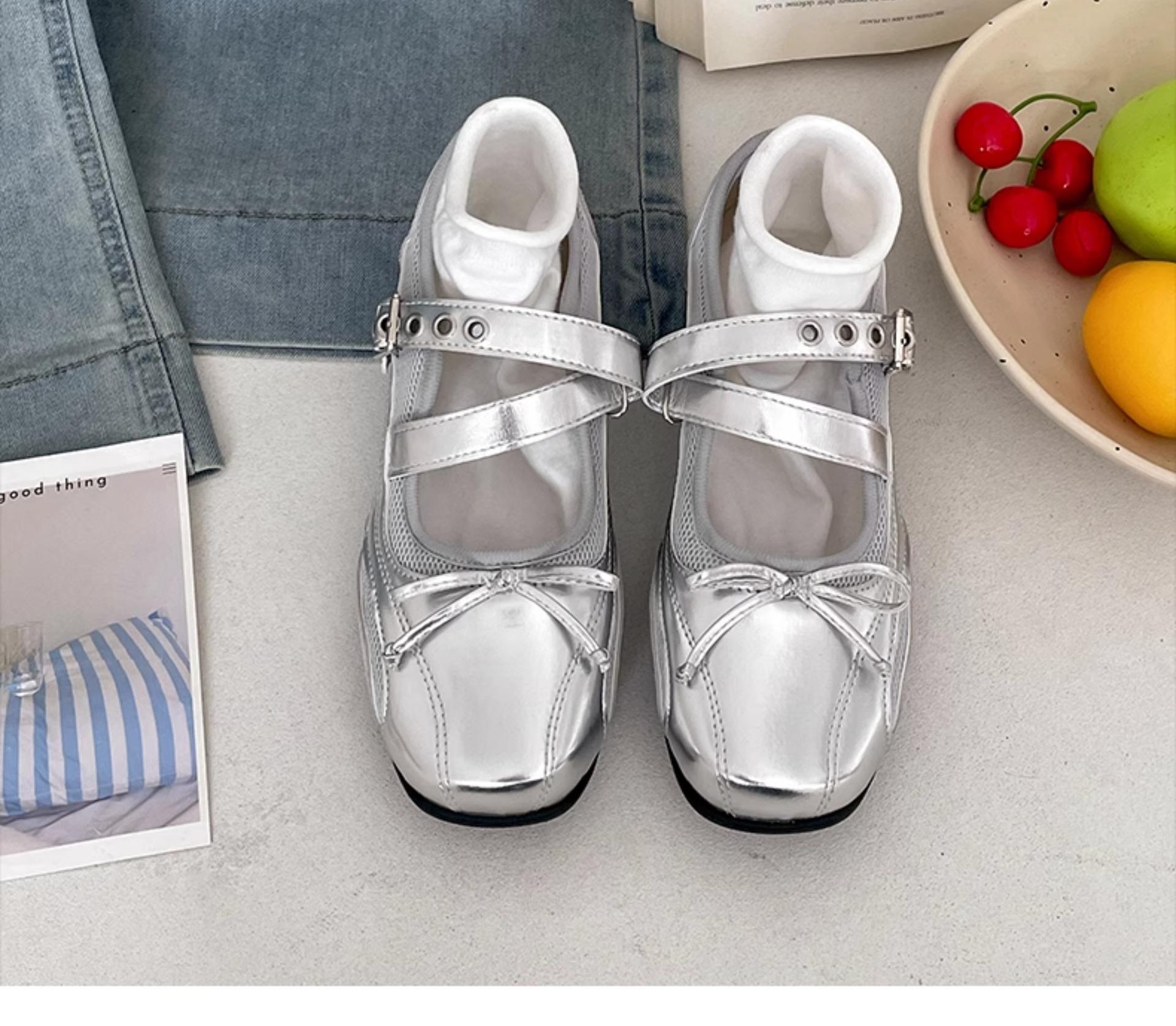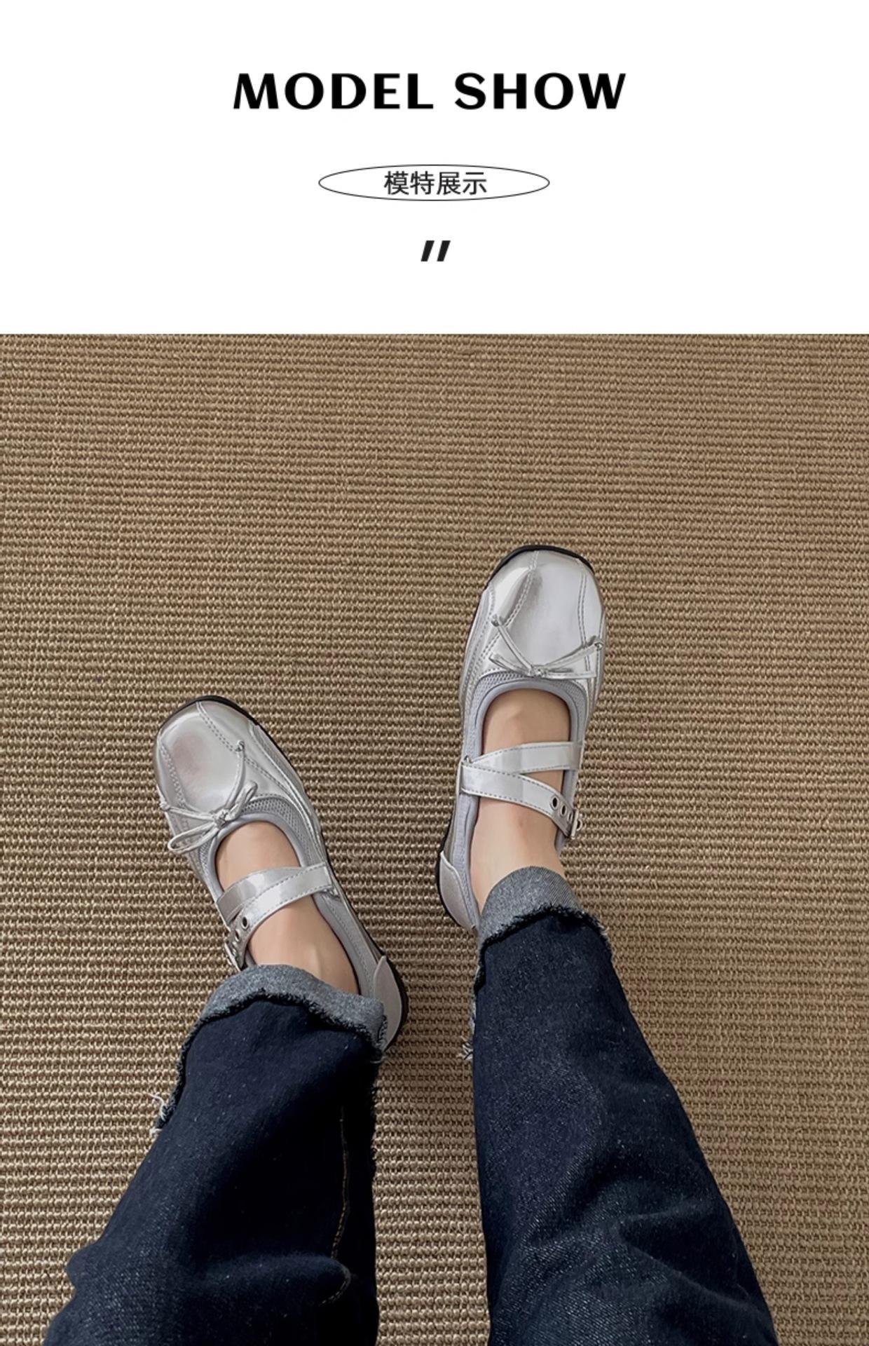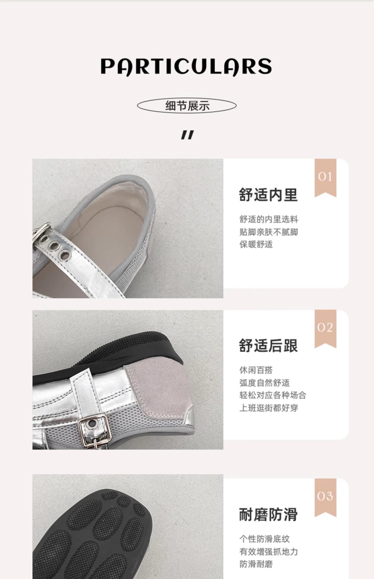 Zapatos de Salón Retro Plateados Franceses de Punta Redonda y Suela Gruesa para Mujer Verano 2025 Nuevo Estilo con Falda Versátiles Zapatos Mary Jane para Mujer
