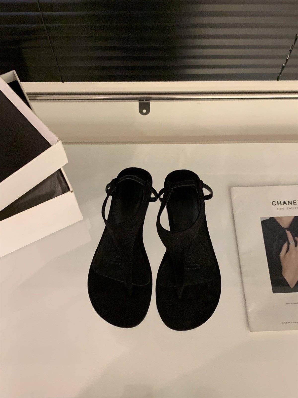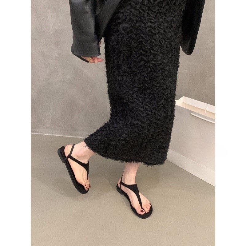 Sandalias planas retro estilo festivo de clip Zapatos de hada 2025 Nuevo verano Negro Combinación con todo Playa Romanas