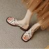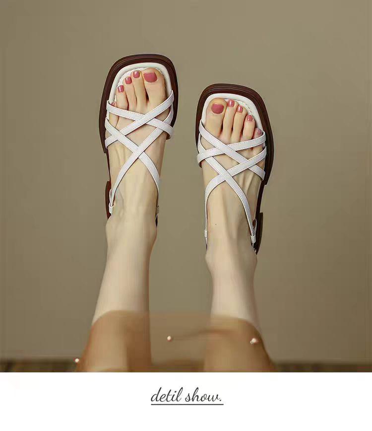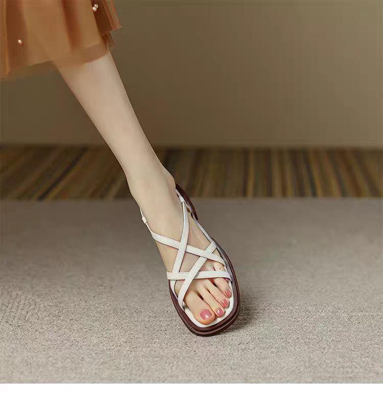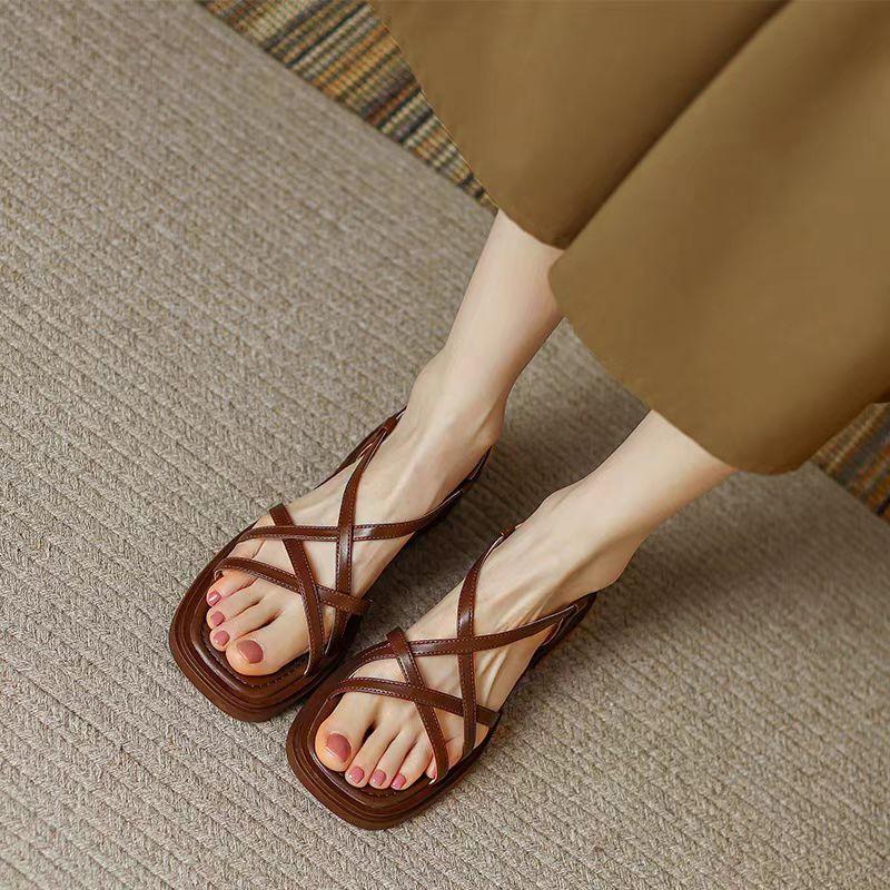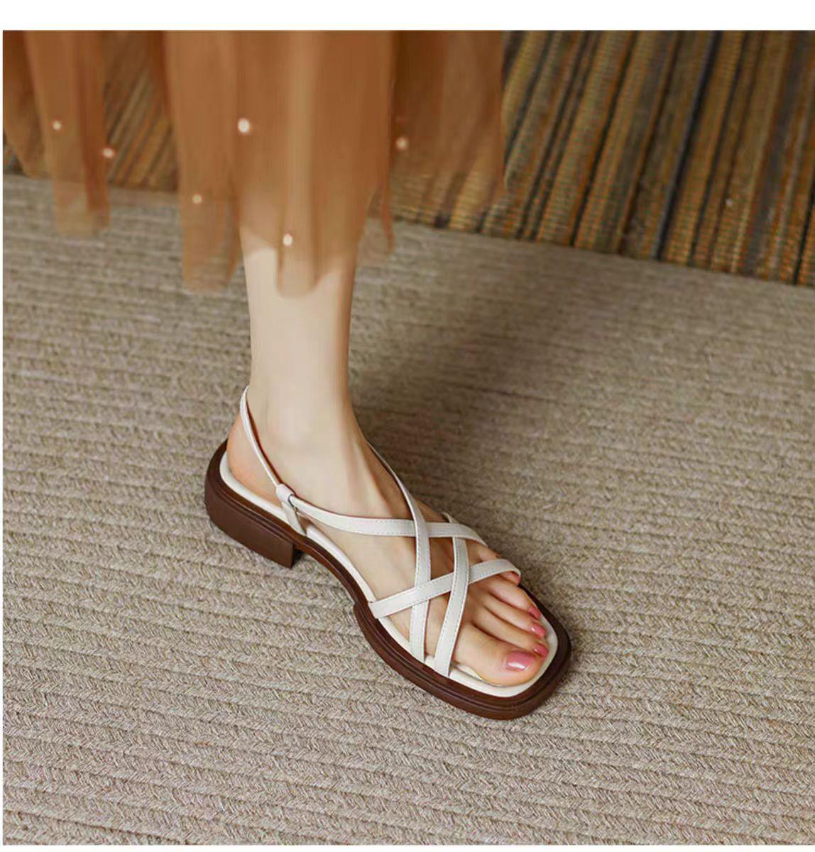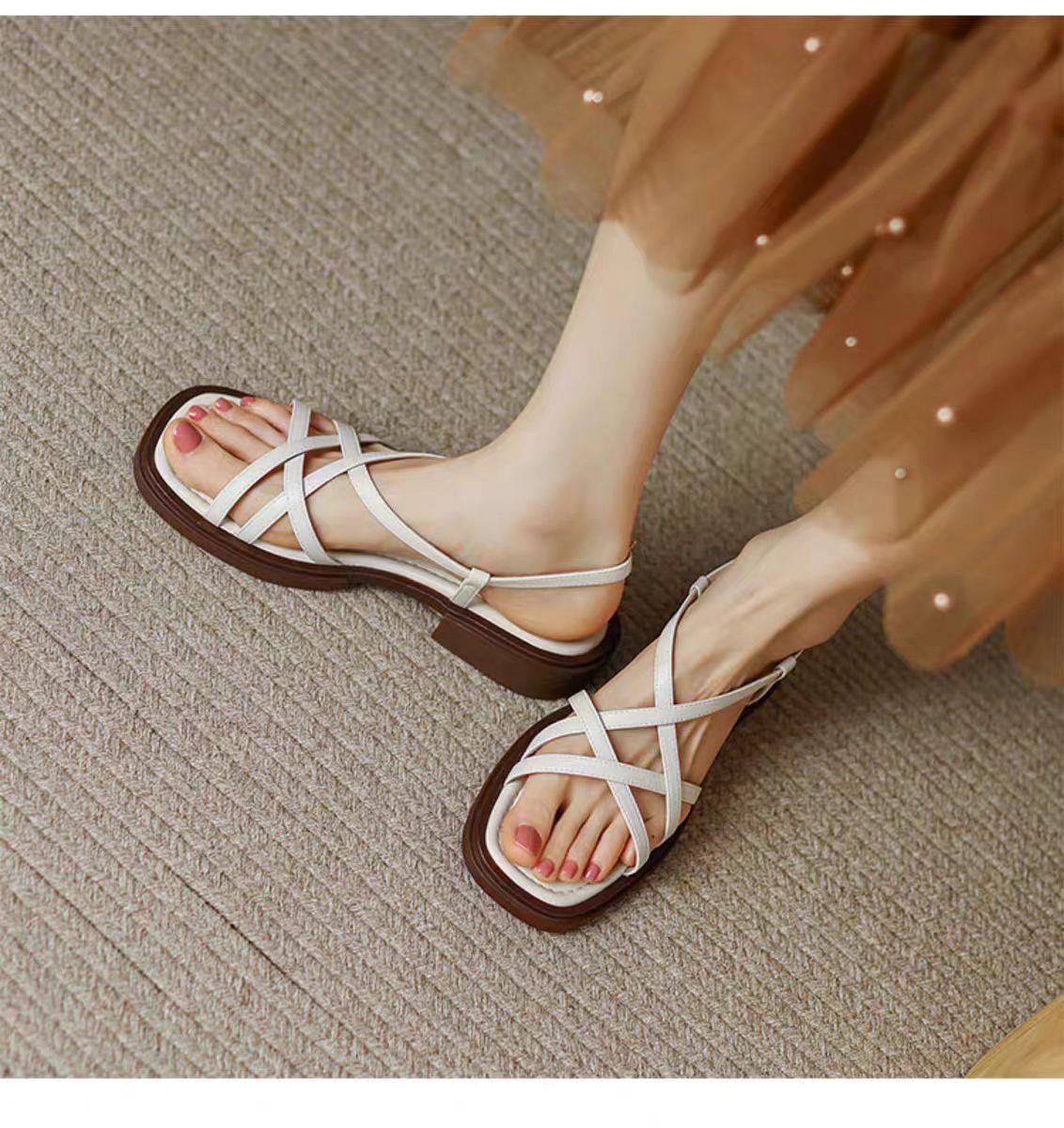 Sandalias de Playa de Verano 2025 con Tiras Cruzadas y Punta Abierta, Planas, de Punta Cuadrada, Suela Suave, Estilo de Hada, Sandalias de Hebilla de Una Línea para Mujer