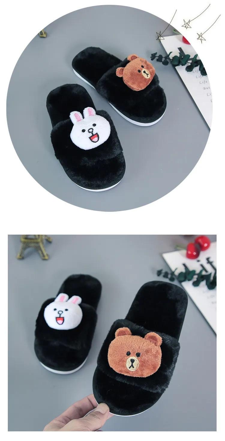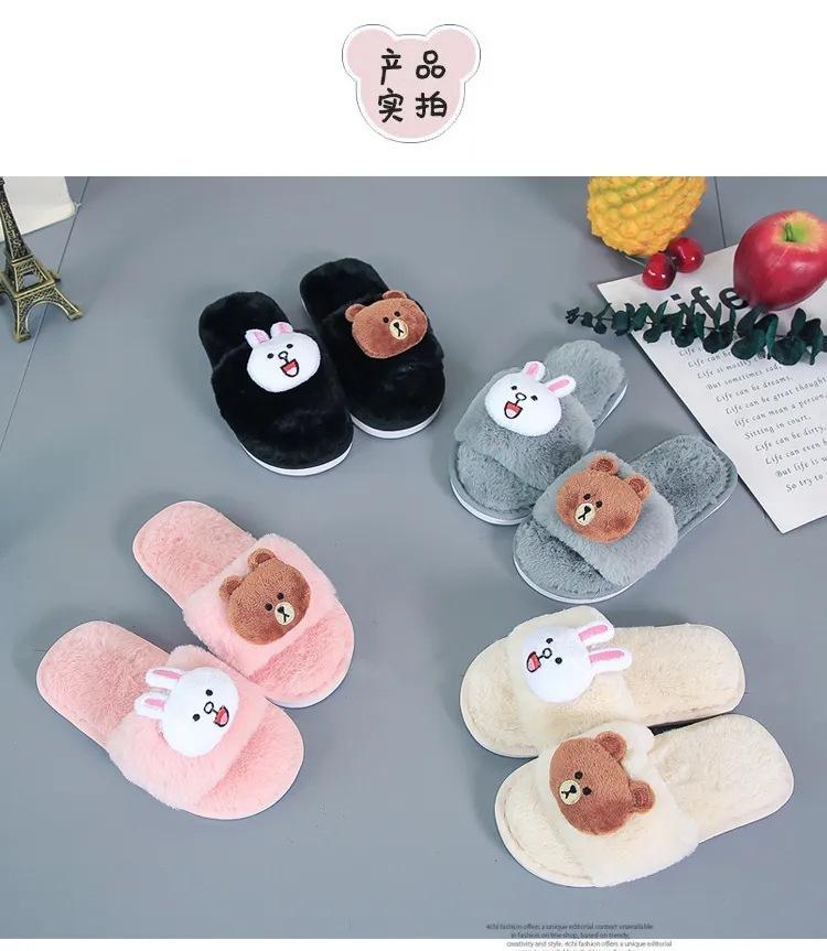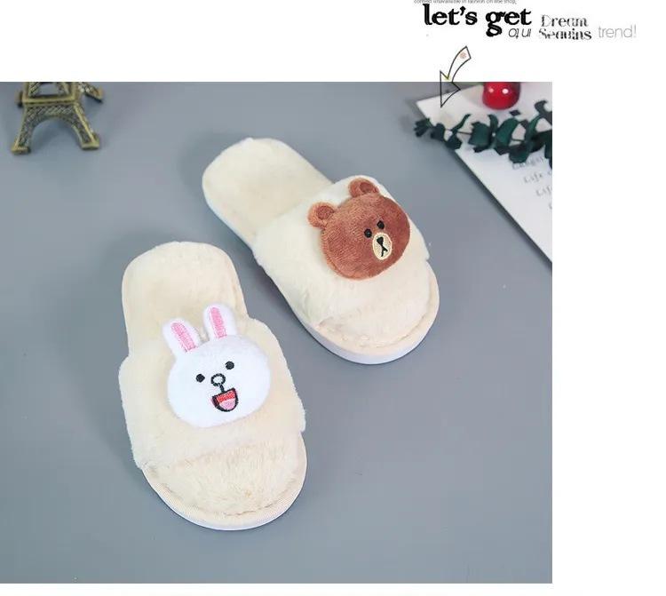 Pantuflas de Algodón Rellenas de Oso de Dibujos Animados Personalizadas y Conejo Blanco Cálidas Antideslizantes de Punta Abierta Planas Fabricante Venta al por Mayor