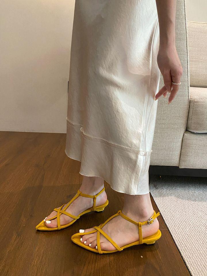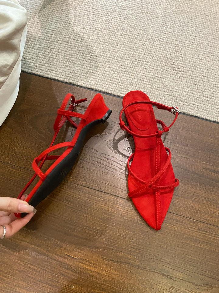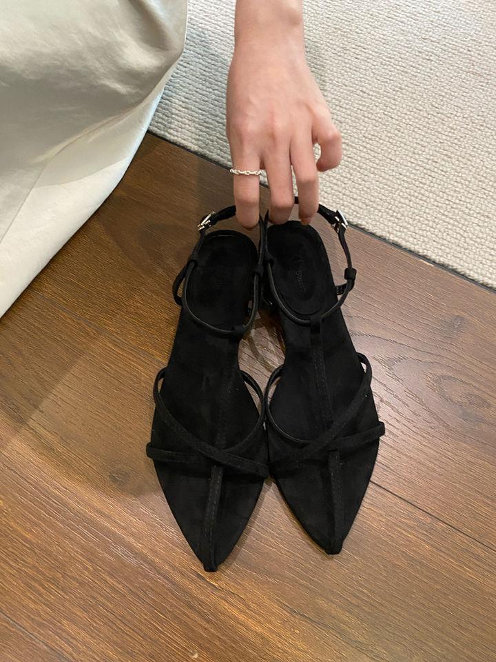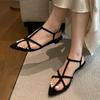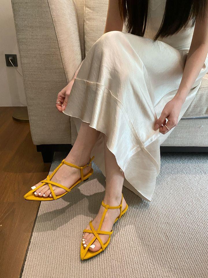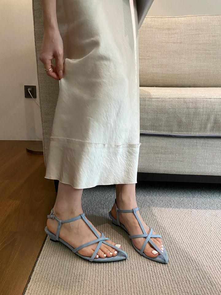 Sandalias planas de playa con hebilla de punta para mujer 2025 Coreanas Extremadamente Simples de Tiras Cruzadas con Punta Abierta Zapatos Sexy de Mujer