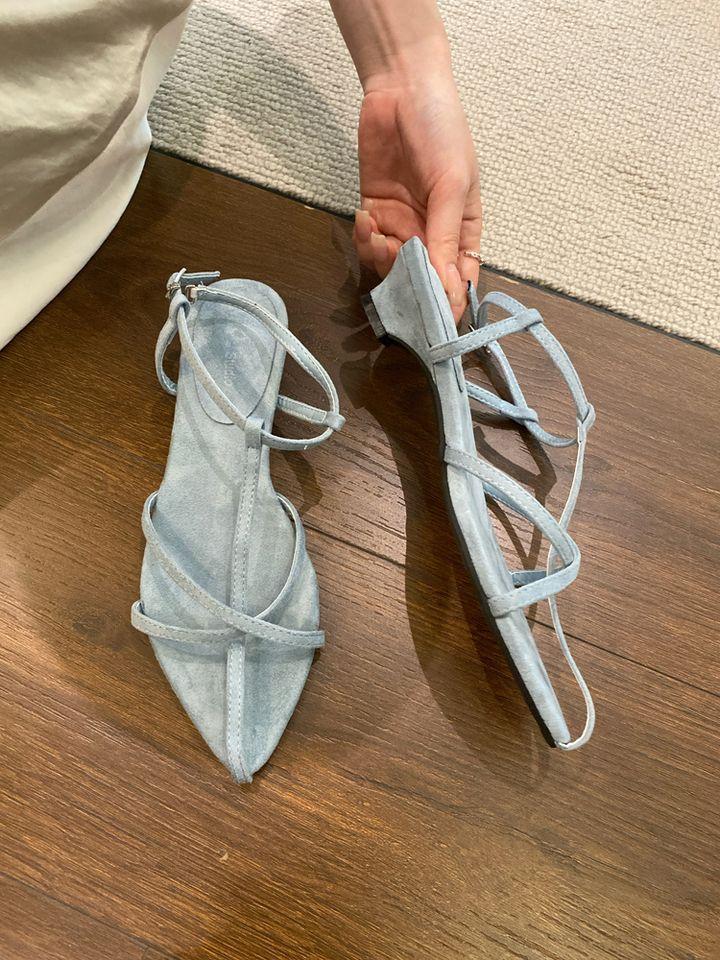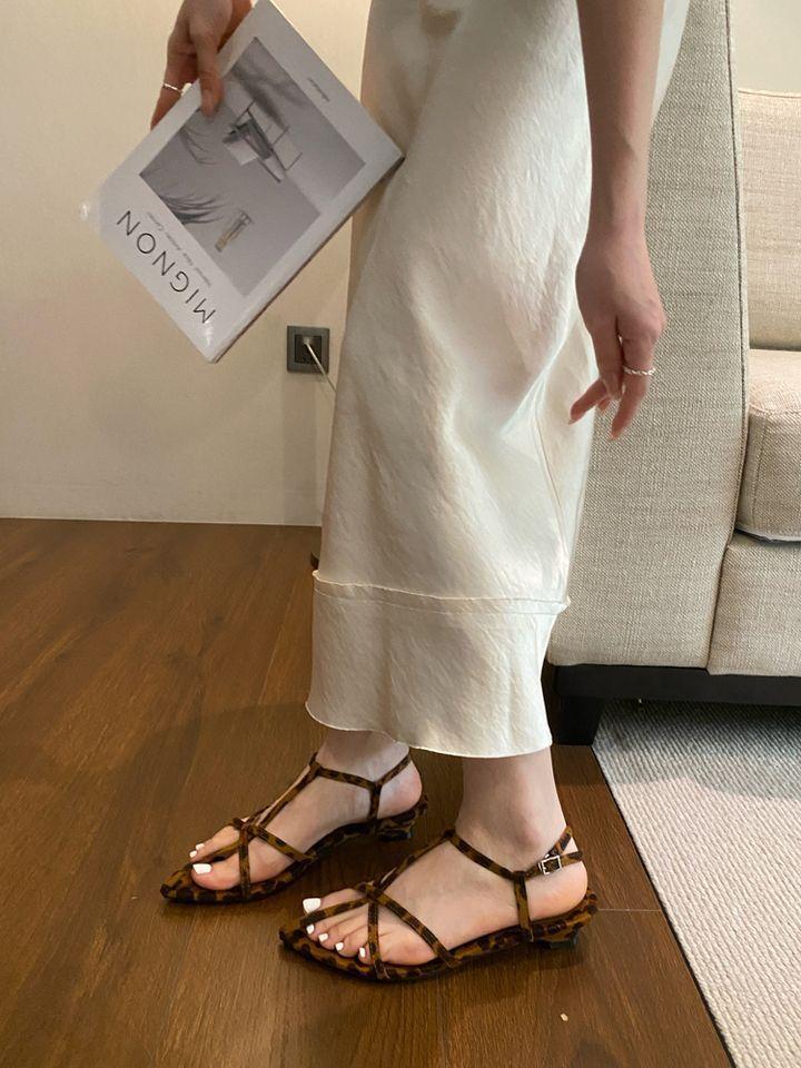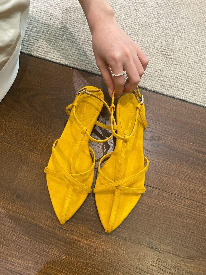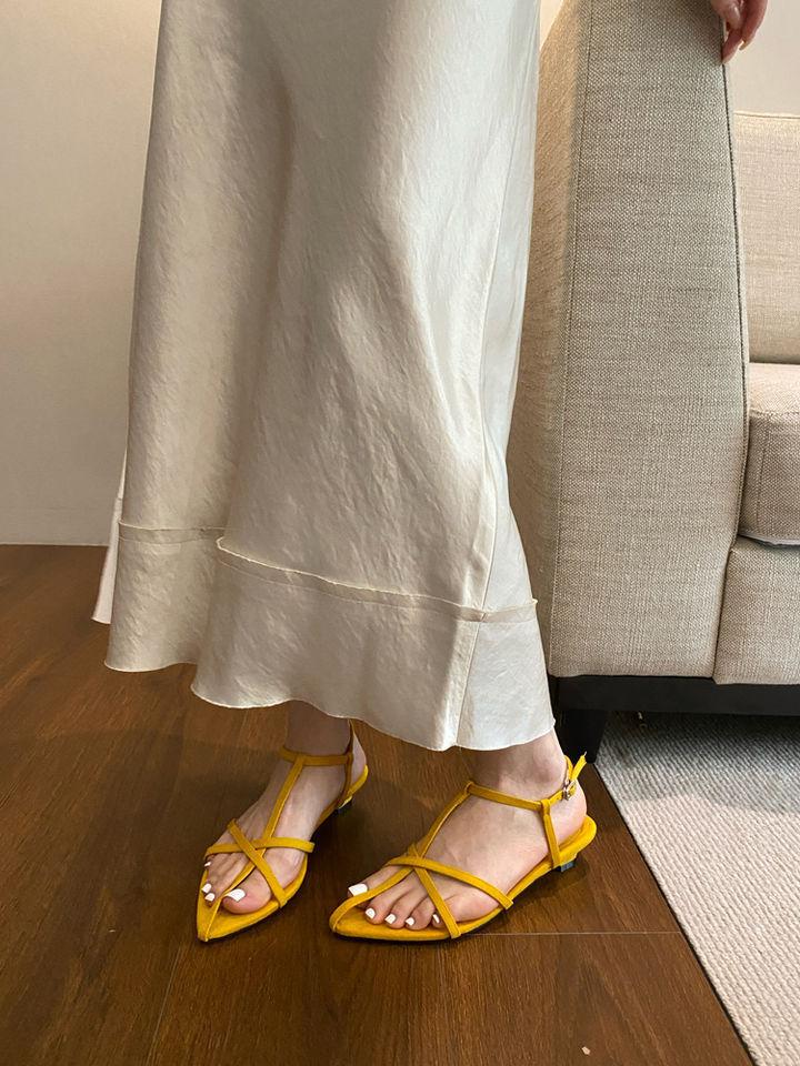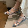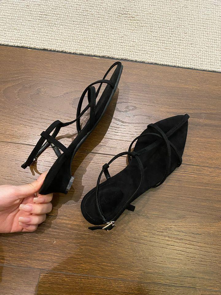 Sandalias planas de playa con hebilla de punta para mujer 2025 Coreanas Extremadamente Simples de Tiras Cruzadas con Punta Abierta Zapatos Sexy de Mujer