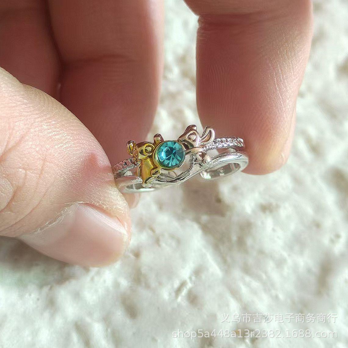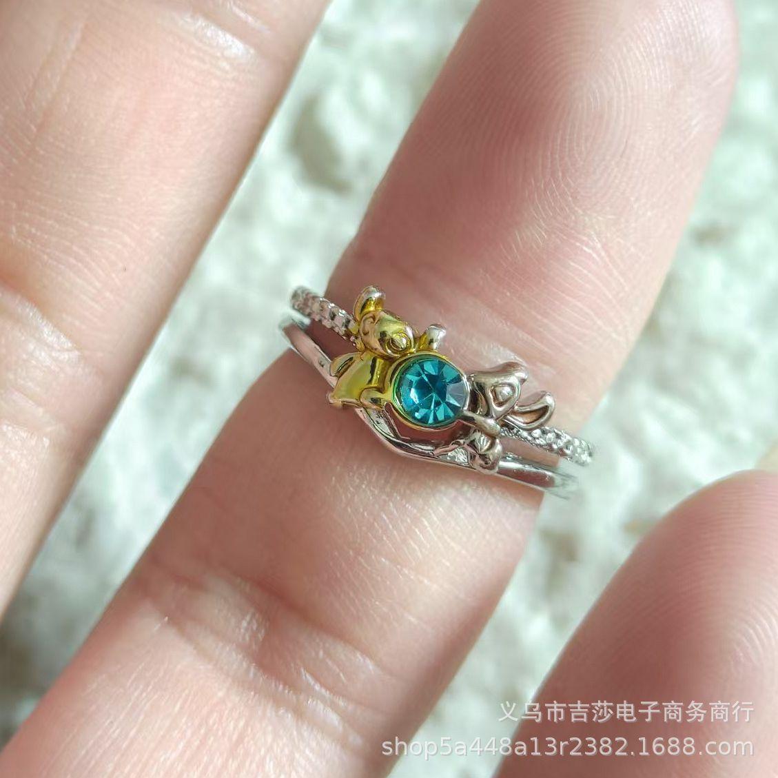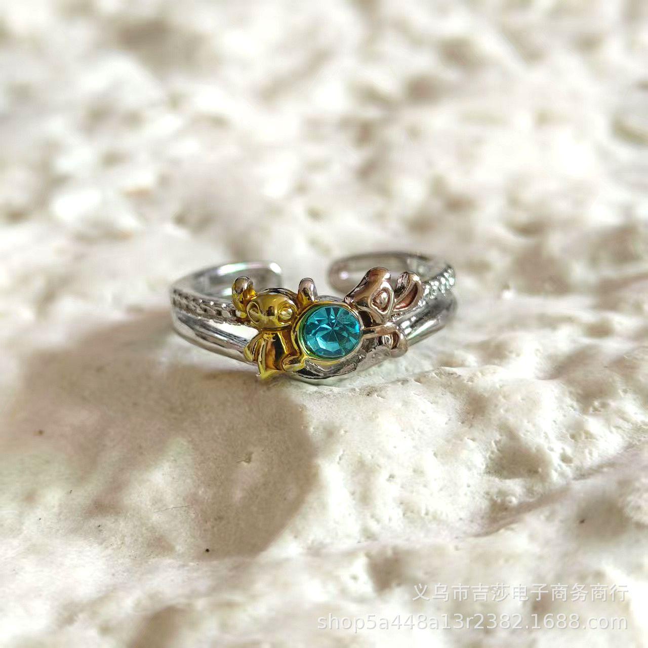 Lindo Anillo de Stitch para Mujer Diseño de Lujo Ligero Hueco de Dibujos Animados Anillo de Pareja de Stitch y Ángel