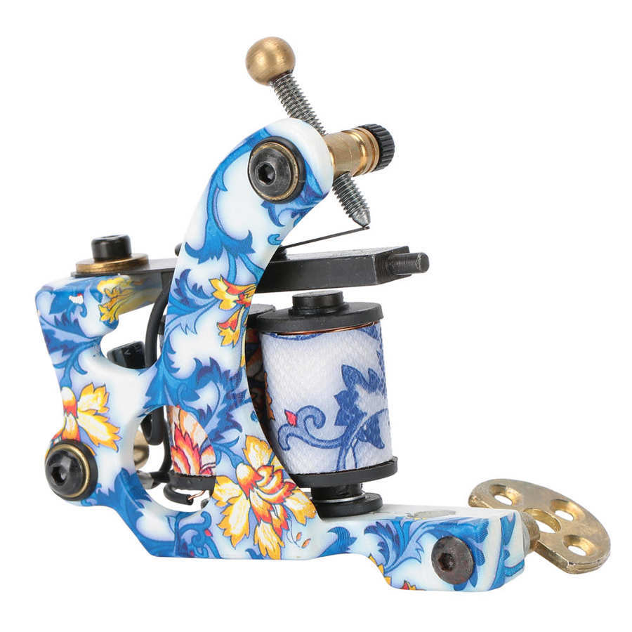 Máquina de Tatuar Imitación Cerámica Azul y Blanco Porcelana Fundición Máquina de Bobina para Tatuar Máquina Tradicional de Tatuar Equipo de Máquina de Bobina para Tatuar