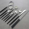 Compra Juego de Cubiertos Portugués Internet Rojo Negro Cuchillo para Bistec y Tenedor Cuchara Cuchara de Café Tenedor para Fruta Mango Redondo Grueso Mate Cuchillo y Tenedor Juego de Vajilla al por mayor en Joom.pro