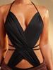 Estilo Europeo y Americano Nuevo Sexy Halterneck Casual Hueco Tirante Delgado Espalda Descubierta Cruzado Monos de Mujer Color Sólido Transfronterizo