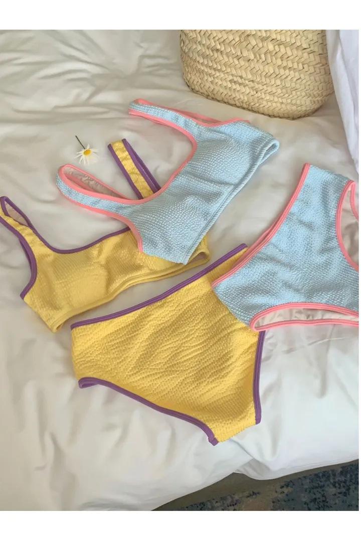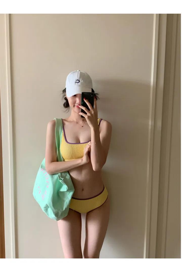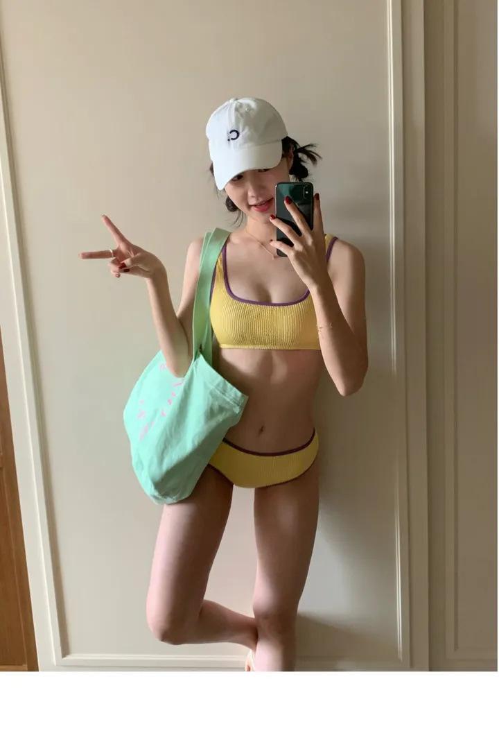 Compra Fábrica de Origen Ins Chaleco Retro Traje de Baño Simple con Abertura para Mujer Macaron Vacaciones de Verano Spa Bikini al por mayor en Joom.pro
