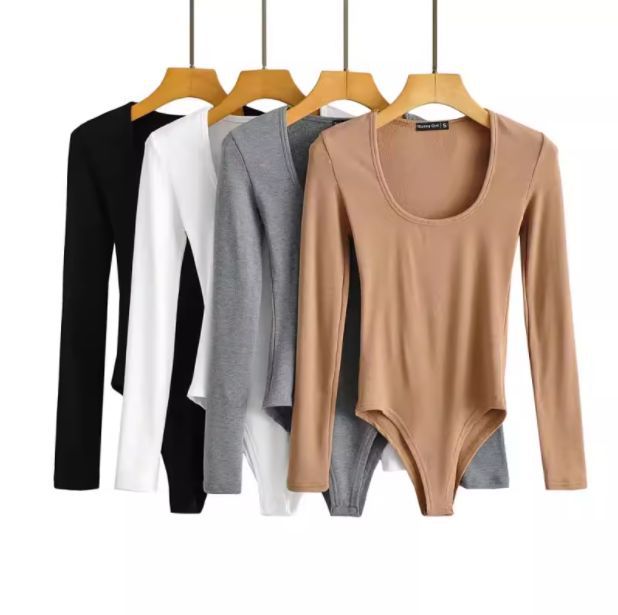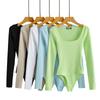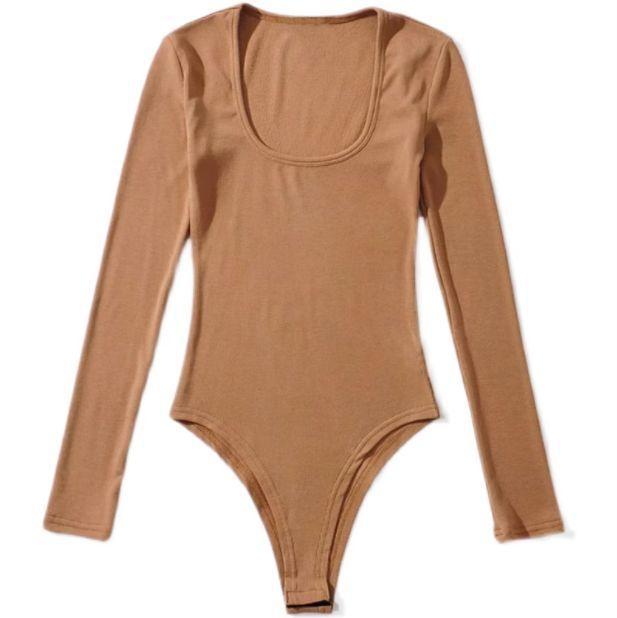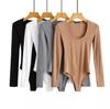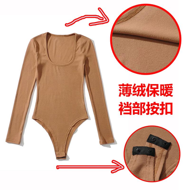 Otoño e invierno, nueva camiseta de manga larga de terciopelo cálido de una pieza, mono de terciopelo fino con cuello en U y entrepierna elástica, camisa ajustada europea y americana.